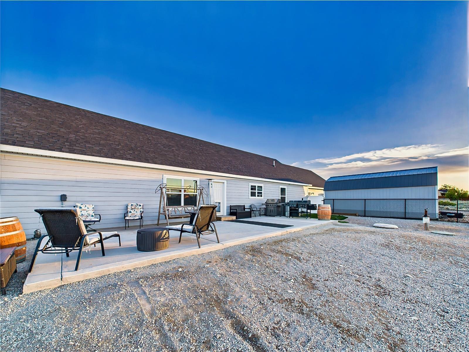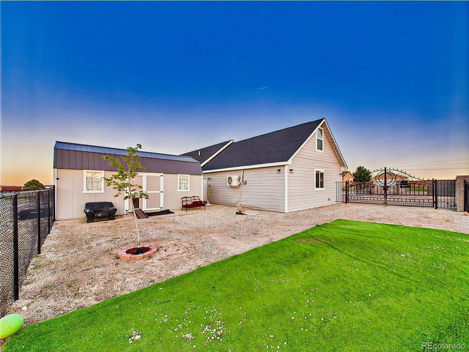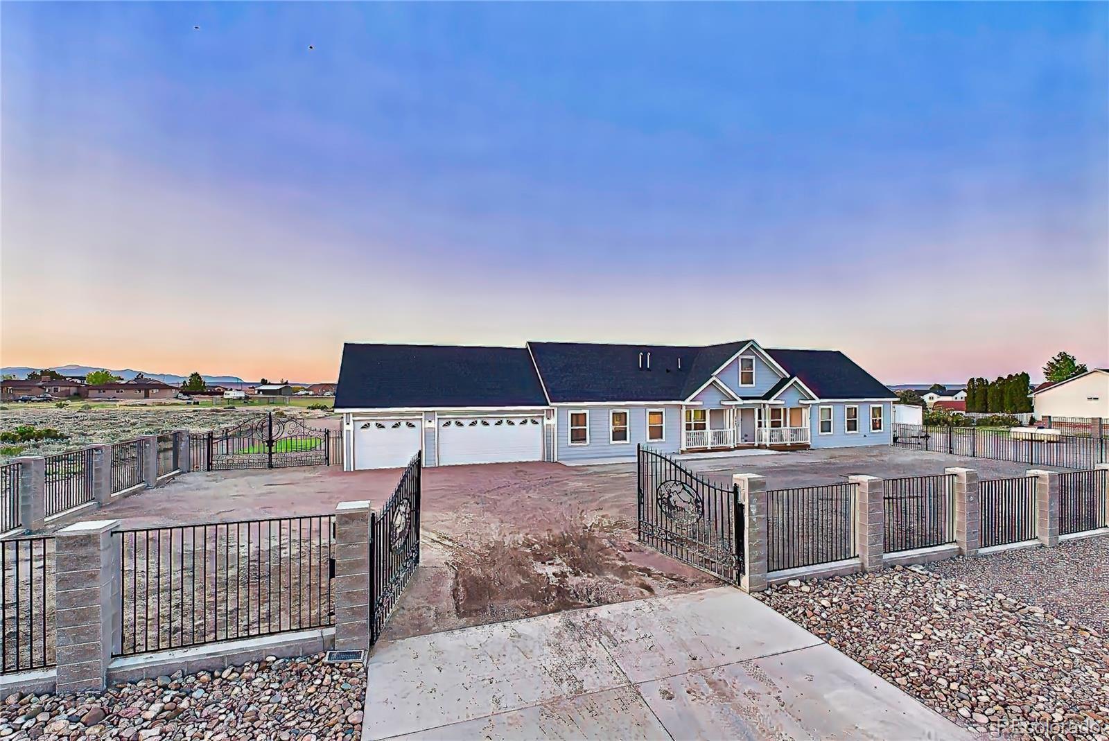 Spacious Main-Level Living with Bonus Second Story on 1.85 Acres in Pueblo West. Welcome to your Colorado retreat—offering 3,000 square feet of thoughtfully designed living space, mountain views, and room to roam. Inside, the gourmet kitchen is the centerpiece of the home, featuring a large island perfect for bar stools, 42-inch maple cabinets, solid surface counters, and stainless steel appliances—including a double oven, built-in microwave, range hood, and tile backsplash, walk-in pantry offers additional storage with extra cabinets, counters. Dining area connects the kitchen to the spacious great room, making it ideal for gatherings and everyday living. The main-level primary suite offers a relaxing retreat with a luxurious 5-piece bath that includes a soaking tub, double vanities, a spa-style walk-in shower with dual shower heads and bench, large walk-in closet. 2 additional bedrooms & full bath are located on the opposite side of the home. The mud/laundry room is conveniently located off the garage and includes a utility sink, built-in cabinetry, washer and dryer. Flexible space upstairs, you’ll find a bonus level featuring spacious 4th bedroom with an en-suite 3/4 bath, a massive 38-foot-long family / rec room, and a separate office or flex space—perfect for a home gym, theater. Two mini-split systems ensure year-round comfort on the upper level. The front entry makes a bold first impression with decorative wildlife-themed gates framed by concrete pillars and metal panel accents lead you to the covered front porch. 3-car garage, large backyard with 12x24 storage shed with electricity., baseboard heat. Out back 39' x 17' concrete patio creates the perfect space for outdoor dining, entertaining, or relaxing while enjoying the mountain views, Back & Side yard has chain link fence. 2nd driveway to the side yard provides ideal space for RV or camper parking, with room to add future outbuildings. Minutes from Pueblo Reservoir, shopping, schools, & recreation.