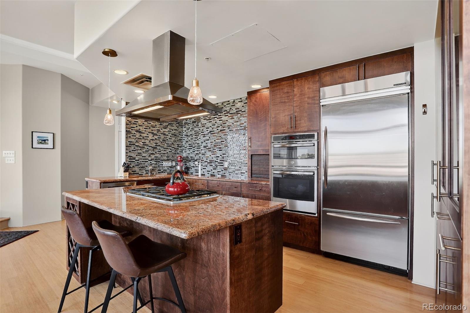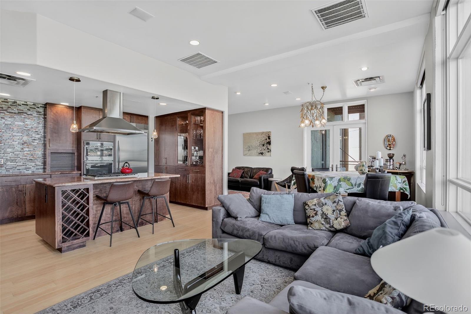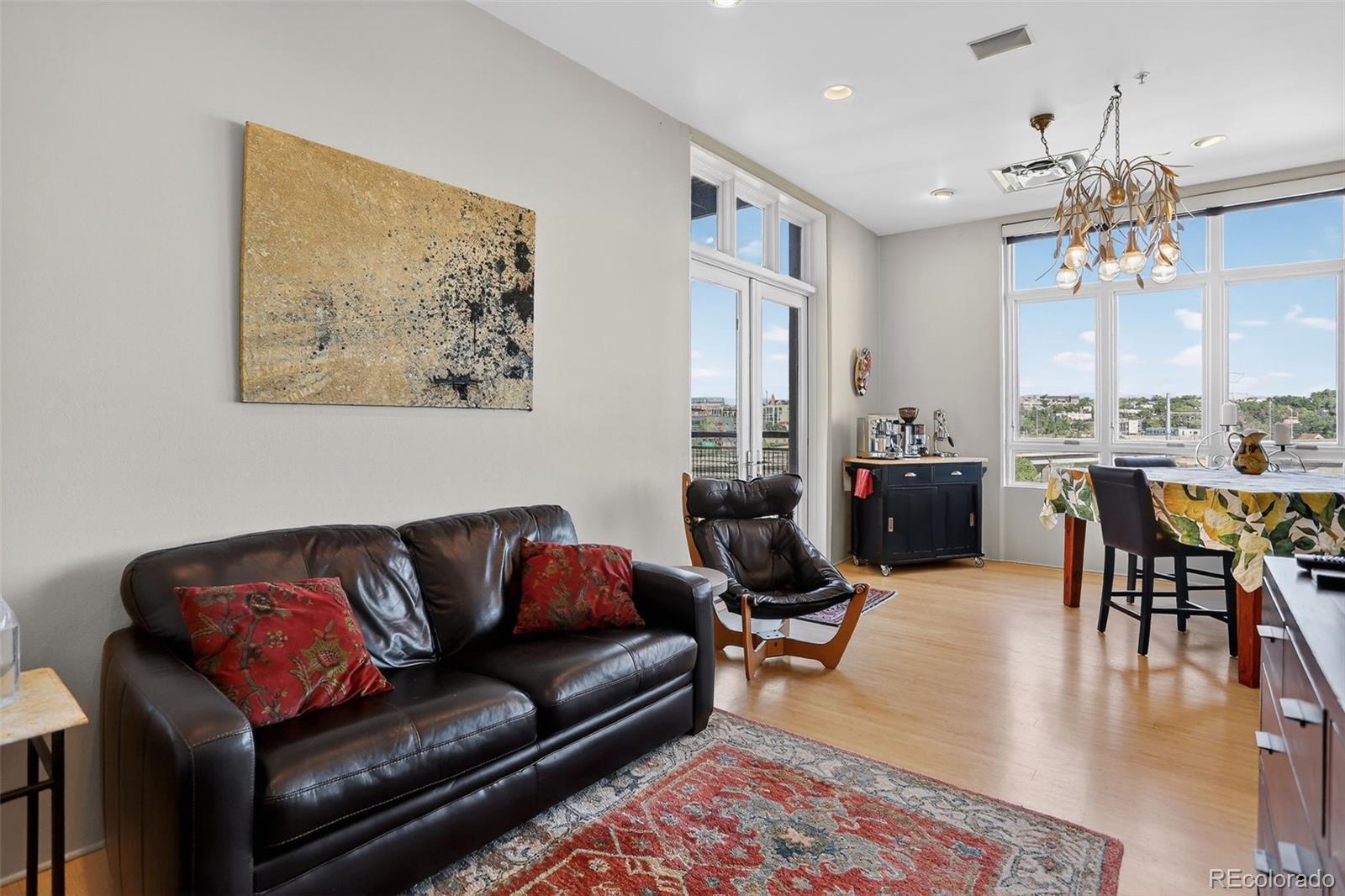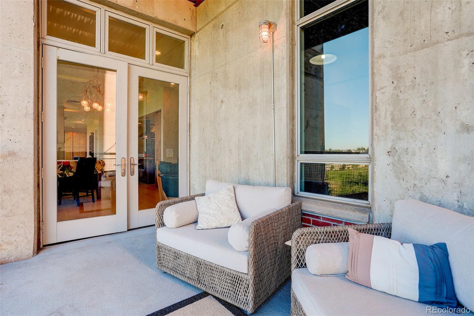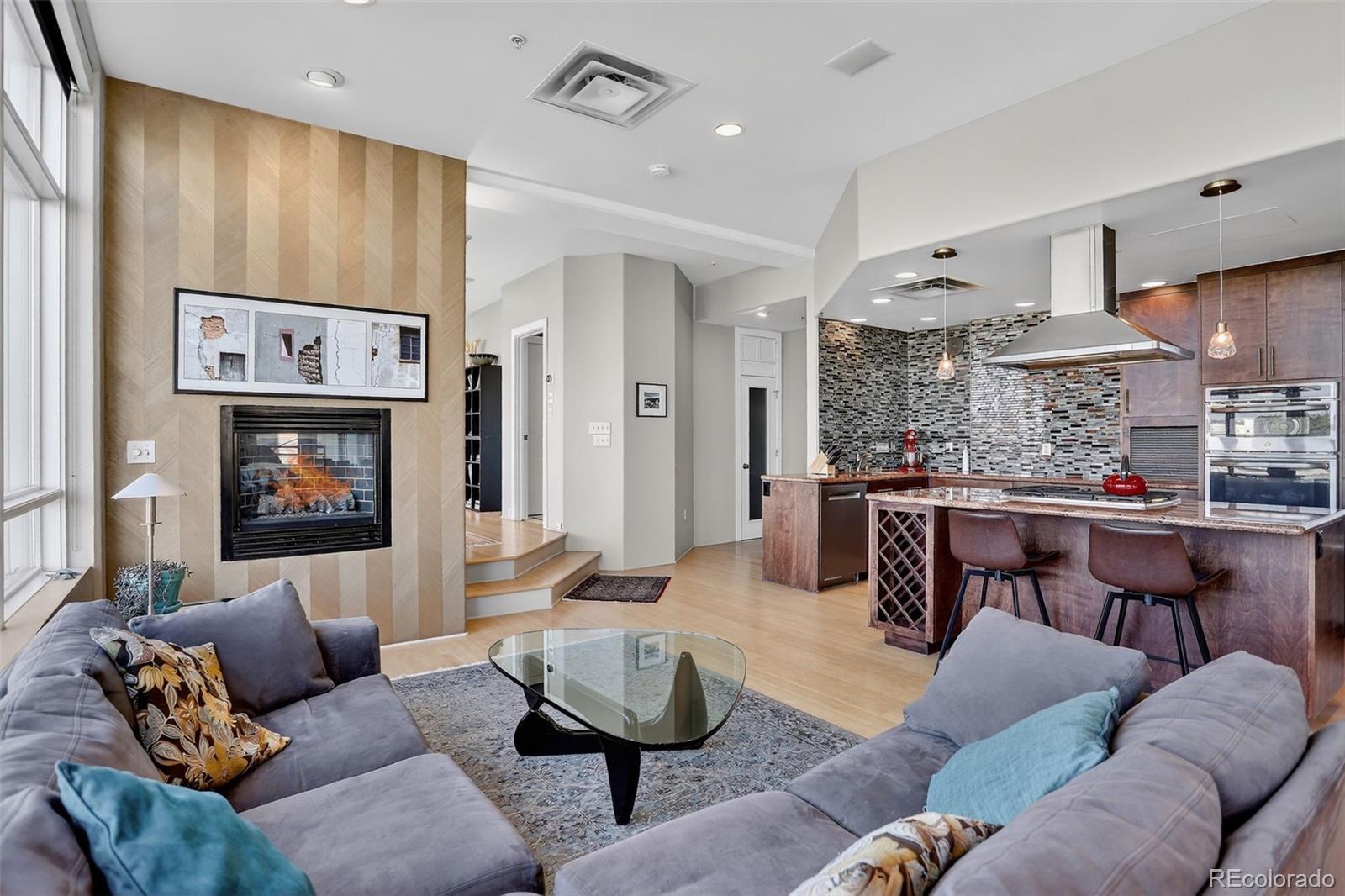 Welcome to one of Denver’s most coveted residences in the Flour Mill Lofts, a nationally recognized project developed by preservationist and visionary Dana Crawford—the force behind Union Station, Larimer Square, and much of Denver’s historic revival. This northwest-facing 5th floor loft offers unobstructed views of the Rocky Mountains and Cuernavaca Park, creating a truly rare and peaceful retreat in the heart of the city. With over 1,400 square feet of light-filled living space, soaring ceilings, and floor-to-ceiling windows, this home blends contemporary elegance with architectural integrity. Inside, you'll find a gourmet kitchen outfitted with high-end stainless steel appliances, custom cabinetry, granite counters, and a generous eat-in island—perfect for casual mornings or entertaining guests. The open-concept layout flows seamlessly into the expansive living area, complete with a gas fireplace and private balcony for enjoying Colorado’s epic sunsets. The primary suite functions as a true sanctuary, featuring an en-suite bath, ample closet space, and an attached flex area ideal for a home office or guest lounge. A large bonus room offers exceptional versatility for a second bedroom, creative studio, library or for overnight guests. Additional features include two assigned parking spaces, a storage unit, in-unit laundry, and smart upgrades like a Nest thermostat. Located in the heart of LoDo (Lower Downtown Denver), this boutique building offers direct access to the Platte River trail system, Cuernavaca Park, and Denver’s top destinations—just a short stroll to Union Station, Coors Field, Riverfront Park, and the Lower Highlands (LoHi). Rarely do homes like this become available in one of Denver’s most historic and architecturally significant buildings. If you’re looking for a one-of-a-kind loft that offers design, location, and legacy, this is the one to see.