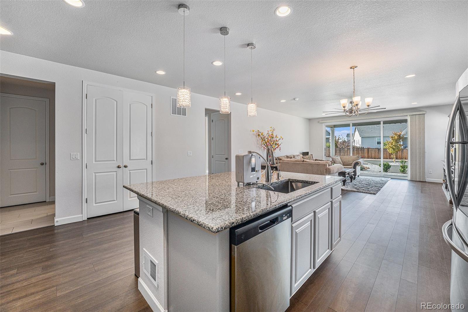 Stunning Ranch-Style Home in the Gated Gallery at Reunion Community 10976 Lewiston Street, Commerce City, CO 80022 sold $840,000 Welcome to this beautifully crafted ranch-style residence located in the exclusive, gated community of the Gallery at Reunion, nestled within a sought-after golf course neighborhood. From the moment you arrive, the home exudes luxury and sophistication, thanks to expert design elements and high-end finishes. The curb appeal is undeniable — a striking stacked stone façade, stamped concrete driveway, and an oversized three-car garage make a lasting first impression. Step inside to an open-concept layout highlighted by wide plank flooring and designer details throughout. At the heart of the home lies a chef-inspired kitchen featuring granite countertops, light gray cabinetry, a stainless steel range hood, large walk-in pantry, and an expansive island — perfect for entertaining or enjoying everyday meals. The living and dining areas flow seamlessly, accented by custom lighting and a cozy yet stylish family room, ideal for gatherings or quiet nights in. Retreat to the elegant primary suite, where a tray ceiling and recessed window create a serene atmosphere. The luxurious en-suite bathroom boasts dual vanities, a spacious walk-in shower, and a large walk-in closet. Two additional well-appointed bedrooms, a full bath, and a large laundry room complete the main level. Head outdoors to your private backyard oasis — ideal for relaxing or hosting. Enjoy the covered patio, expansive stamped concrete entertaining space, and beautifully landscaped yard, all enclosed with premium fencing for privacy. The finished basement offers a generous extension of your living space, featuring a large media or game room with premium carpeting, two additional bedrooms with egress windows, a ¾ bathroom, and plenty of room to customize to your lifestyle.