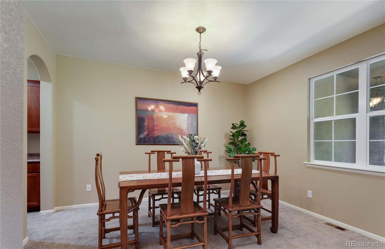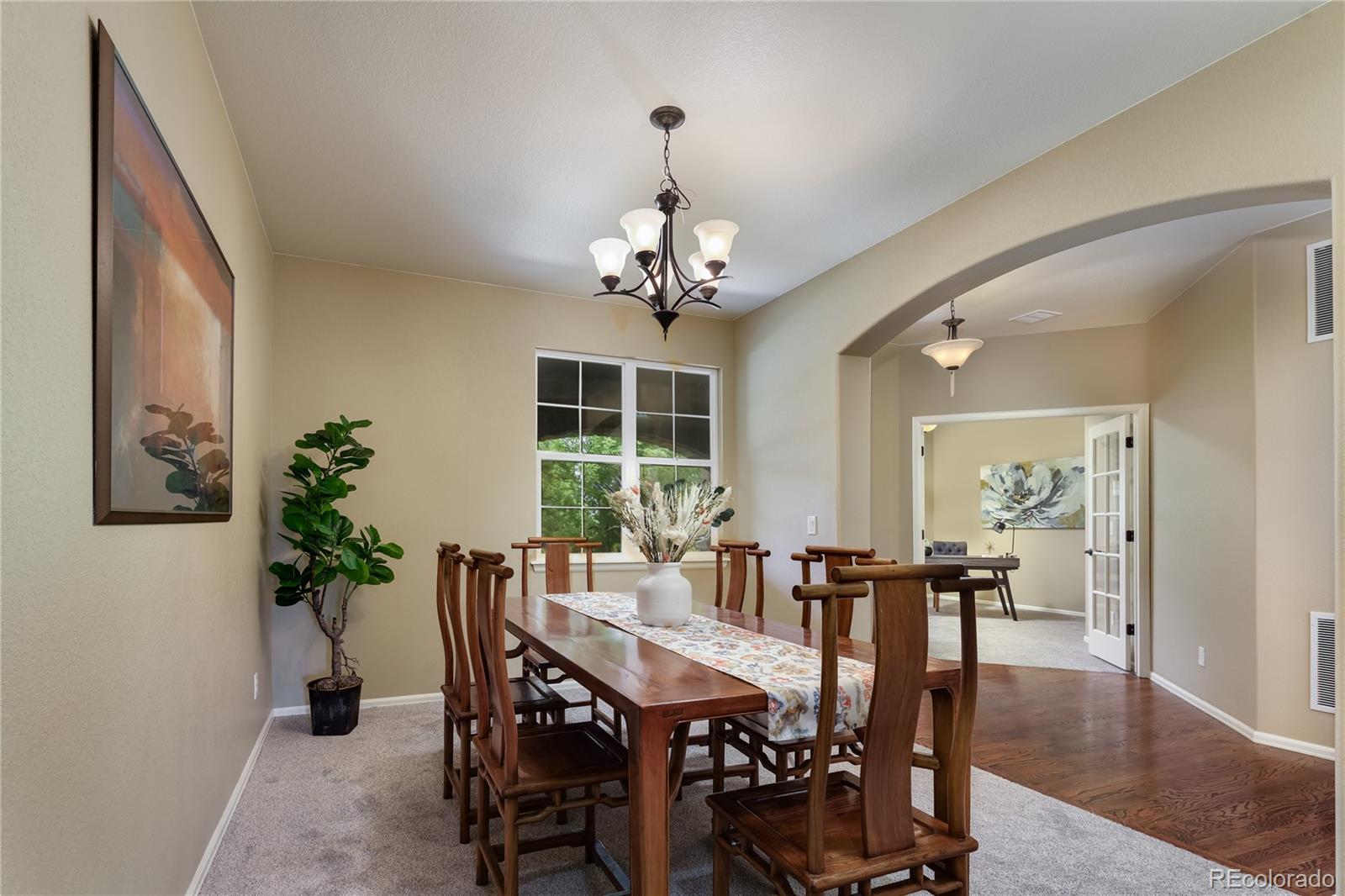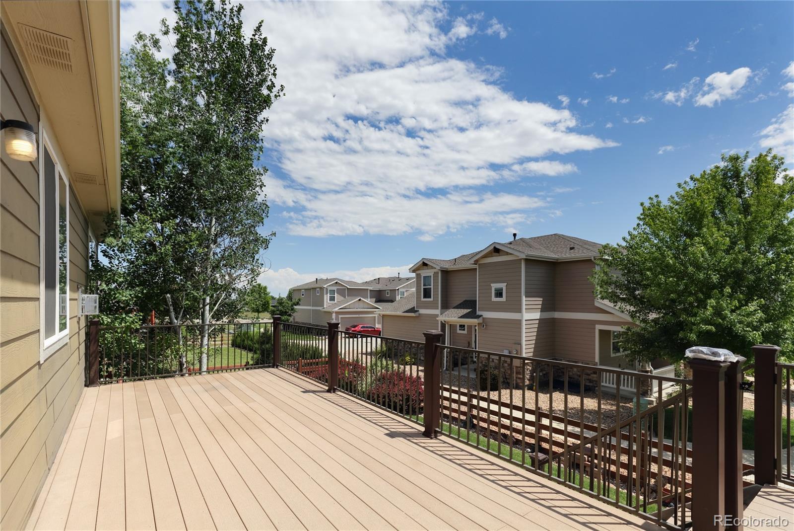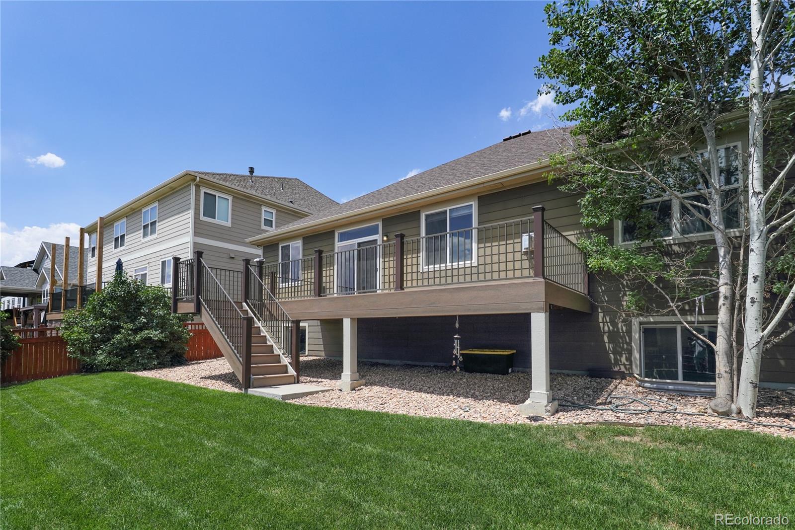 Welcome home to this cheerful 4-bedroom, 3-bath ranch in the friendly Wyndham Hill neighborhood! This home has all the right vibes- soaring ceilings and filled with natural light. Entertaining is easy and everyday living is a joy. Whip up your favorite meals in the large kitchen with hardwood floors which includes an island perfect for coffee chats or after-school snacks. For those special occasions, the formal dining room and butler's pantry fit the bill for hosting holiday get togethers or casual movie night. When it's time to unwind, the main level primary suite offers a calm, comfortable retreat. Your ensuite bathroom has two vanities, a jetted soaking tub and roomy walk-in closet. Main level laundry? Yep, we've got that! Need space to spread out with those projects or create a kid cave? The unfinished basement is a ready-made do-it-all zone. Movie marathons, guest sleepovers, workout goals you might actually stick to- there's a place for it here. Enjoy Colorado's 300 days of sunshine on the huge back deck with a space made for summer BBQs, spectacular mountain views, and evenings under the stars. Recent upgrades, including a new roof (2023), recently serviced furnace & A/C, and an active radon mitigation system with sump pit and pump. Located close to neighborhood trails, a community pool, and quick access to I-25, this home delivers comfort, convenience, and a new place to call home. It's Time to Come Home.