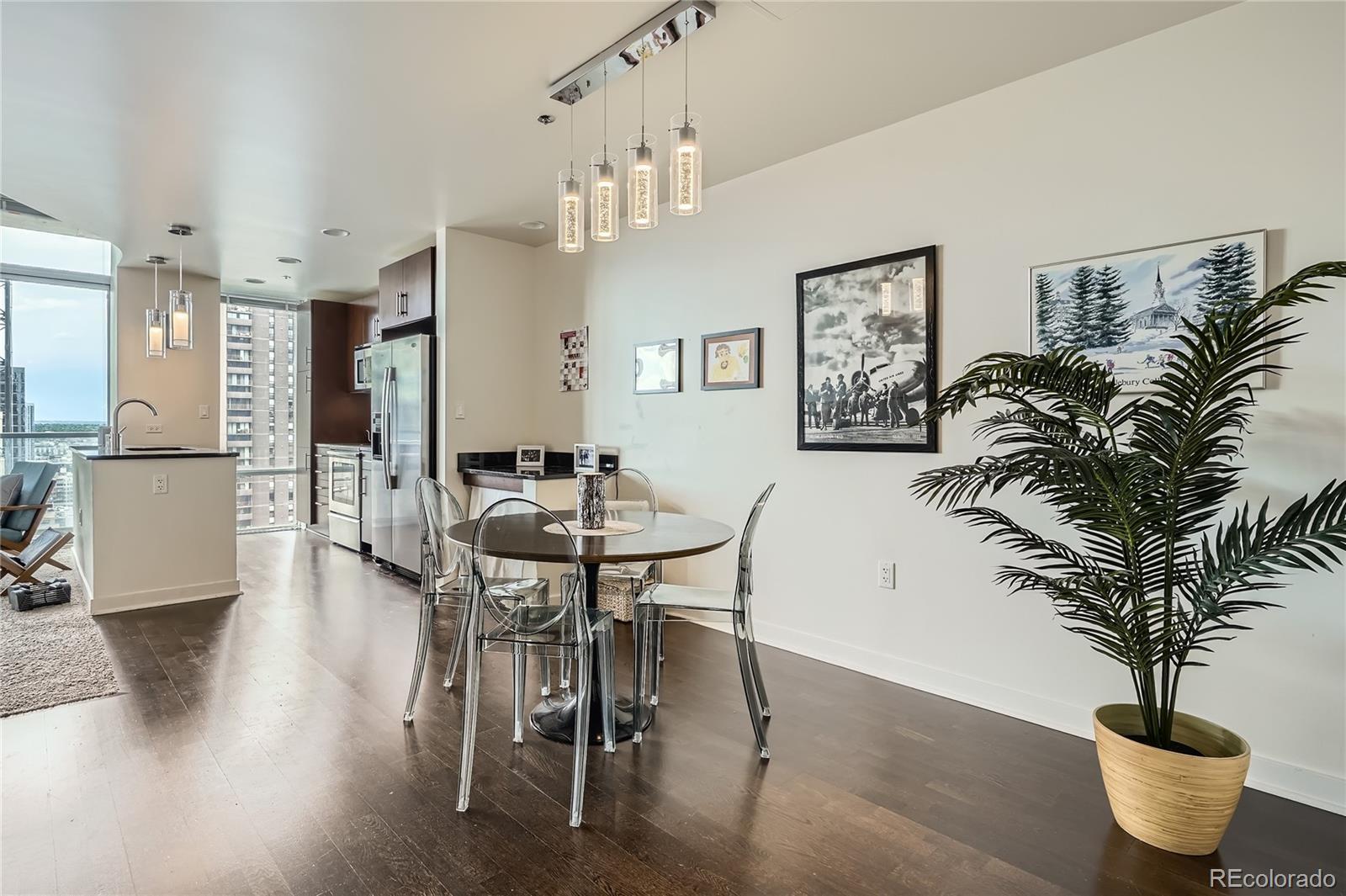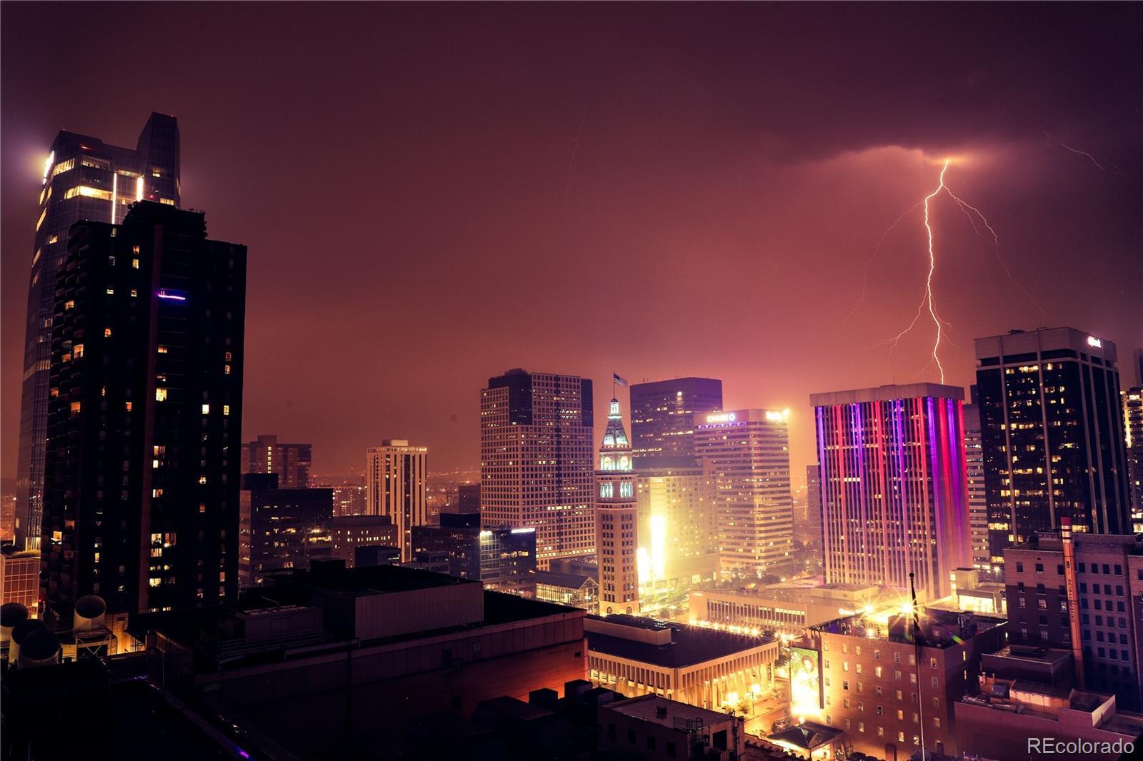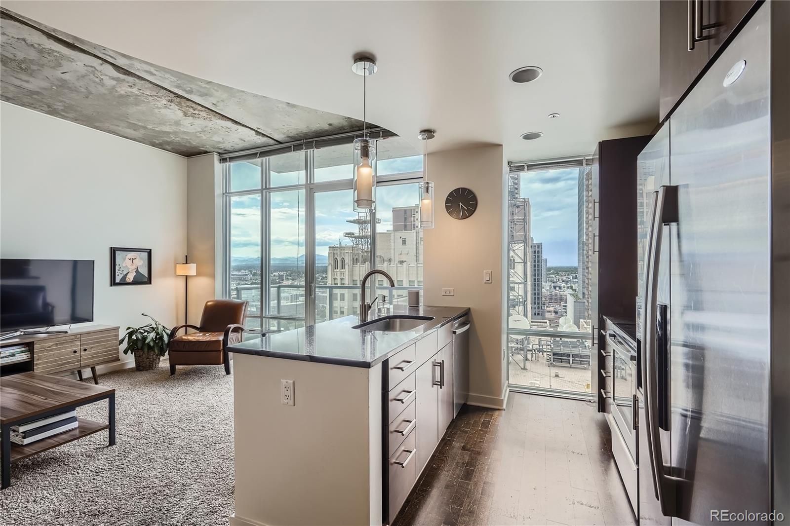 Offering a $10,000 seller credit! Location, location, location! Live within steps of everything Downtown Denver has to offer from this 22nd floor contemporary loft-style condo & experience urban living at its best! The open floor plan of this one bed, one-bath home feels spacious with its soaring ceilings & expansive floor-to-ceiling windows that drench the home in abundant natural light. The kitchen features sleek ss appliances, slab granite countertops, a pantry, flat-panel cabinetry & both recessed & pendant lighting. The seamless flow between the living, kitchen, dining & balcony are perfect for both daily living & entertaining guests. Wood floors & exposed concrete flow through the home most notably in the dining area which has room for a sizable table & there is a built-in computer nook. The private bedroom has a contemporary barn door & direct access to the bathroom through a 2nd door. There is a full-sized washer/dryer & a storage closet for life’s extra things. Experience breathtaking mountain & city views from inside the home as well as from your private balcony. You’ll love the spectacular sunsets, clocktower colors, city lights & captivating fireworks displays. The condo comes with a deeded parking spot & a secure private storage area. Denver's iconic Spire is a 42-story LEED-certified luxury high-rise known for its 40,000 sqft of unparalleled amenities. With many recent renovations, checking out the rest of your home is a must during your showing. There is an extensive fitness center, heated pool & hot tub (accessible yr-round), community lounges, onsite security, concierge service, dog park, theater room, outdoor grilling area & 2 fully furnished rentable guest suites. The light rail is across the street or take the A-line from Union Station to DIA & skip the hassle of airport parking. At the Spire, life is about convenience & w/Denver's best restaurants, bars, & entertainment venues just out your door, this is the life you’ve been looking for!