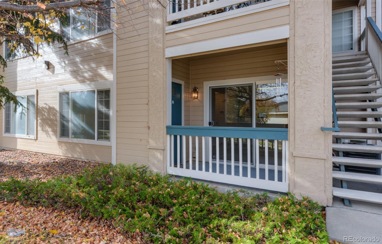 Terrific location with handicap parking in front of this perfect main floor condo. Ensuite primary with access to private covered patio. Living room opens unto a second private covered, fenced patio. Lovely opportunity to relax in personal, private spaces. One car garage with abundant storage shelving. Conveniently King Soopers in just around the corner. Large comfortable living room features gas fireplace and indirect lighting all day. New high output 50 gal water heater with 7 yr warranty. (10/8)New RE_Circ pump with dedicated line. HVAC totally maintained (10/9)New expansion tank(10/8)Ample storage with walk in closet. First class housing at a NO-Frills price. Always a rental. Being sold in As-Is condition. Easy to close quickly.