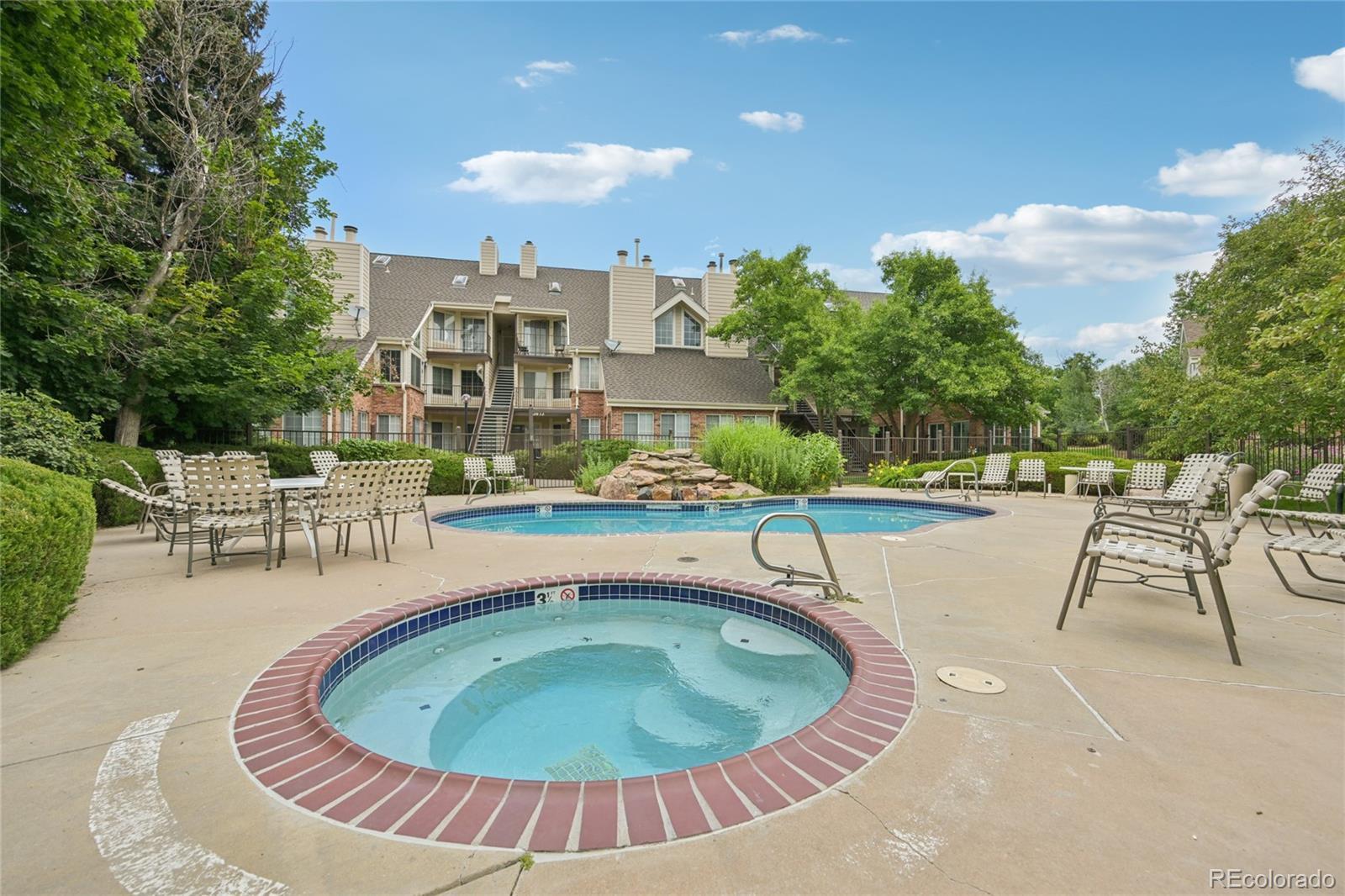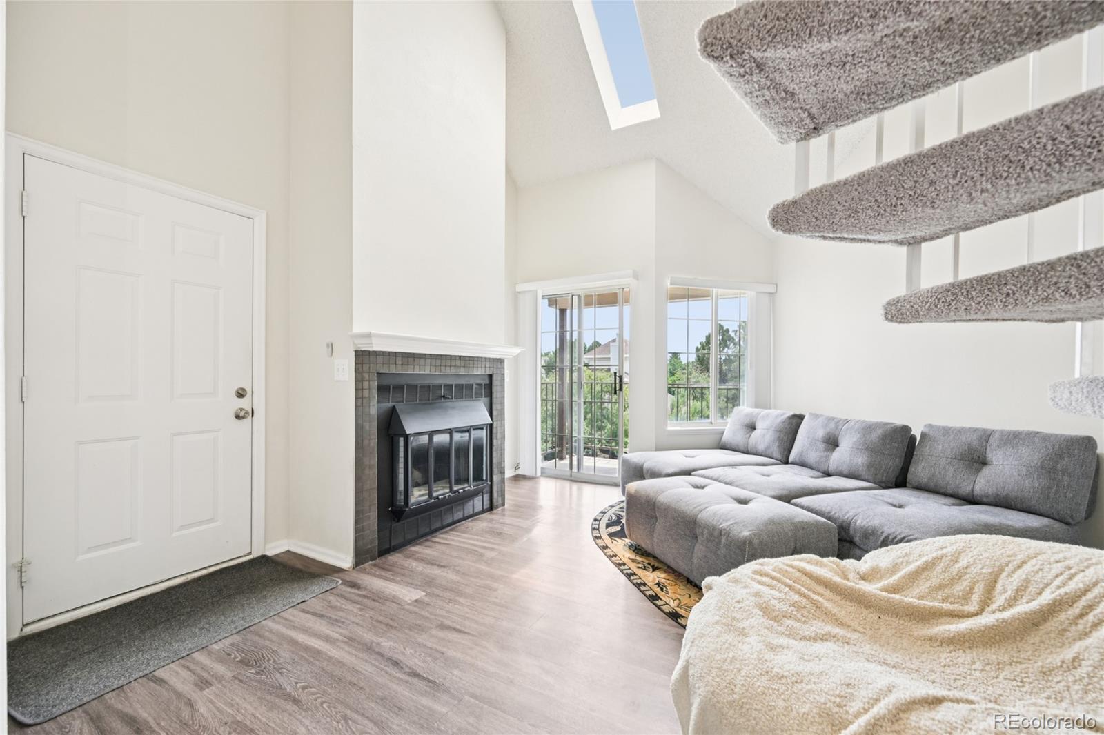 Welcome to this bright and inviting condo in the beautifully maintained Meadow Hills community of Aurora—offering the perfect balance of comfort, convenience, and outdoor living! The open main living area features vaulted ceilings that create a spacious, airy feel, along with a cozy fireplace and sliding glass doors that lead to a private balcony overlooking the community pool and hot tub—perfect for relaxing mornings or quiet evenings. The kitchen sits just off the living room and comes equipped with stainless steel appliances, offering both functionality and modern style. The main floor also includes two bedrooms, one with its own private balcony for even more outdoor enjoyment, and a full bathroom for convenience. A spiral staircase leads up to a versatile loft space, ideal for a home office, guest room, exercise room, or cozy retreat. Additional features include a new furnace and A/C installed in 2021 with a 10-year warranty, adding comfort and peace of mind for years to come. Nature lovers and golf enthusiasts will love the location: Cherry Creek State Park is right across the street, offering hiking, biking, water sports, fishing, and one of the best off-leash dog parks in the area. Just behind the community, enjoy quick access to Meadow Hills Golf Course—you can walk to the driving range in minutes! Set in a peaceful neighborhood with friendly neighbors and beautiful landscaping, enjoy tranquil common areas with ponds, fish, and small waterfalls, plus quick access to I-225, I-25, and E-470 for easy commuting. You're just 10 minutes from DTC and 15 minutes from Parker or Havana, with a wide range of fantastic dining options nearby.