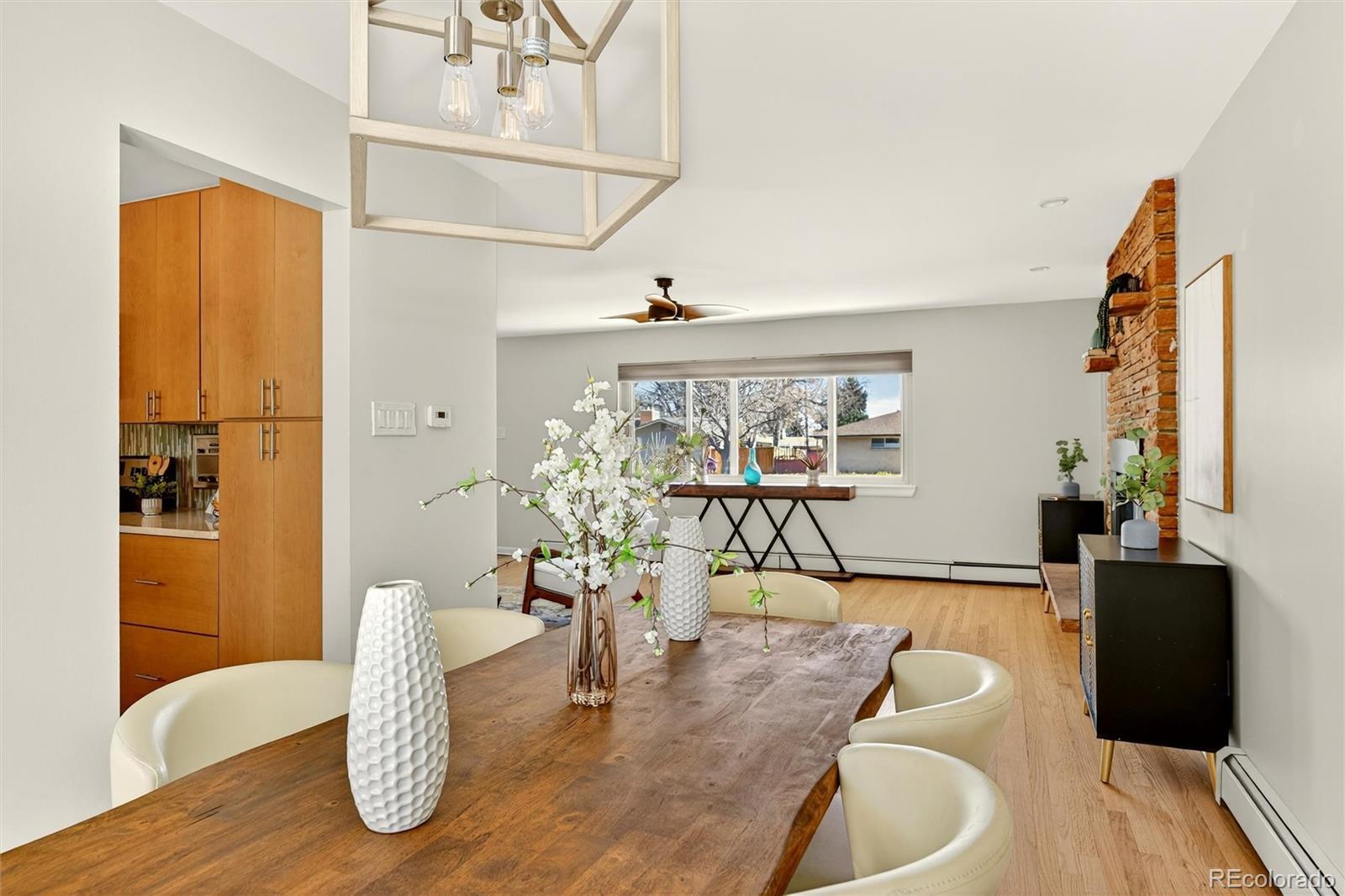 Welcome to 3905 Balsam St, a beautifully updated 4-bedroom, 3-bath brick ranch set on an expansive 11,761 sq ft lot along one of Wheat Ridge’s most desirable streets. Built in 1959 and thoughtfully modernized, this home blends timeless character with today’s comfort—just 0.5 miles to the Wheat Ridge Business District, 2.8 miles to Olde Town Arvada, and under 15 minutes to downtown Golden. Step inside to discover original oak hardwood floors, sun-filled living spaces, and a functional layout with generously sized bedrooms on the main level. The updated kitchen flows seamlessly to the bright sun room, offering an ideal everyday living and entertaining space. The fully finished basement adds incredible flexibility with a large family room, bedroom, bath, and new 2025 carpeting. Major system upgrades provide peace of mind, including a new boiler (2025), evaporative cooler (2019), roof (2017), and a professionally installed French drainage system (2019). Outdoor living shines here—enjoy the privacy and room to play in the oversized backyard, complete with mature landscaping. The oversized 2-car garage features built-ins for storage, paired with a newly poured concrete driveway (2025) for a fresh curb appeal. Additional 2025 updates include: electric fireplace, washer, dishwasher, refrigerator, updated lighting and plumbing fixtures, interior and closet doors, and new flooring in the kitchen and sun room. This is a rare opportunity to own a meticulously maintained, move-in-ready home in an unbeatable central location.