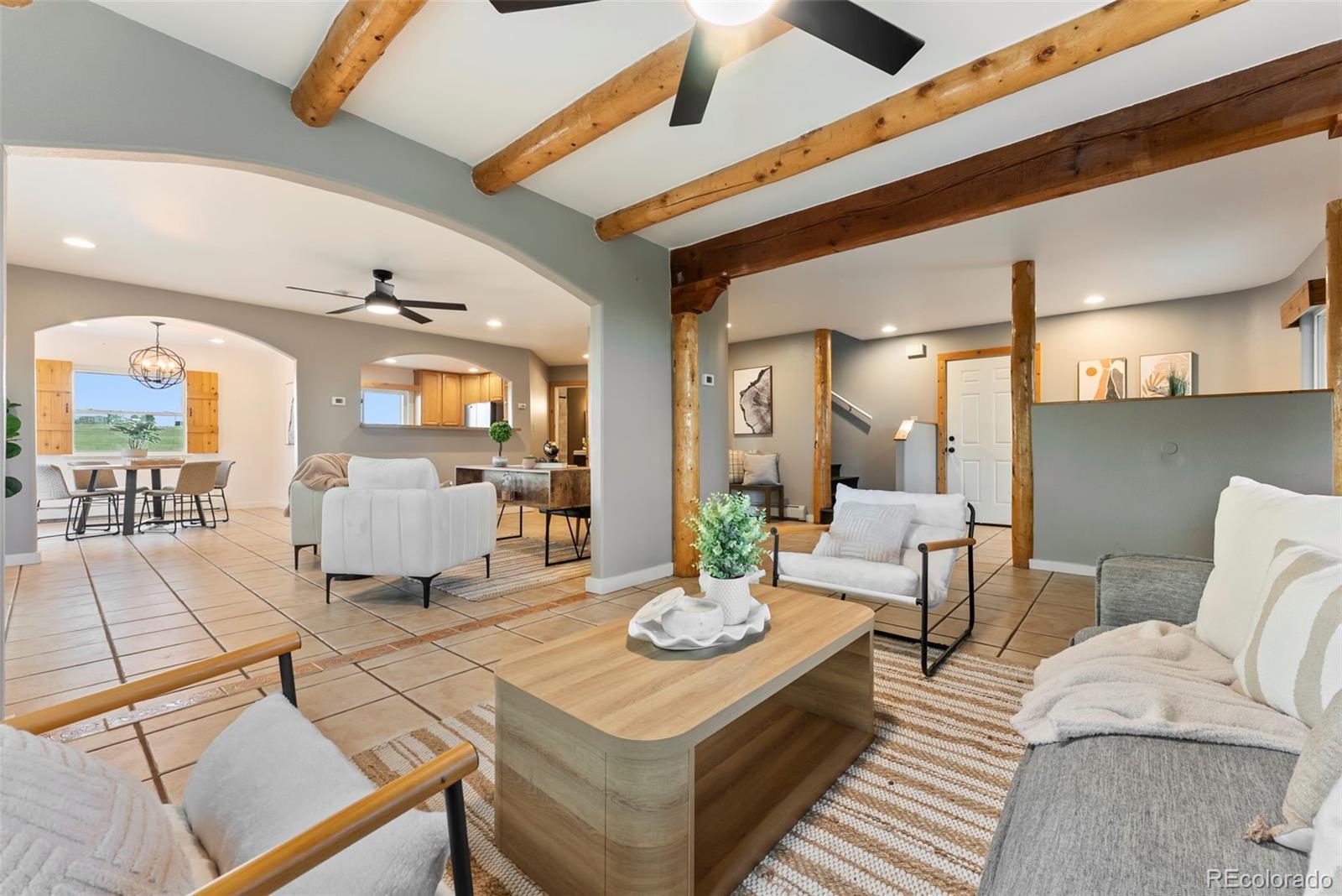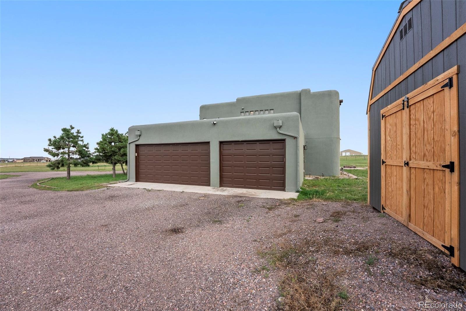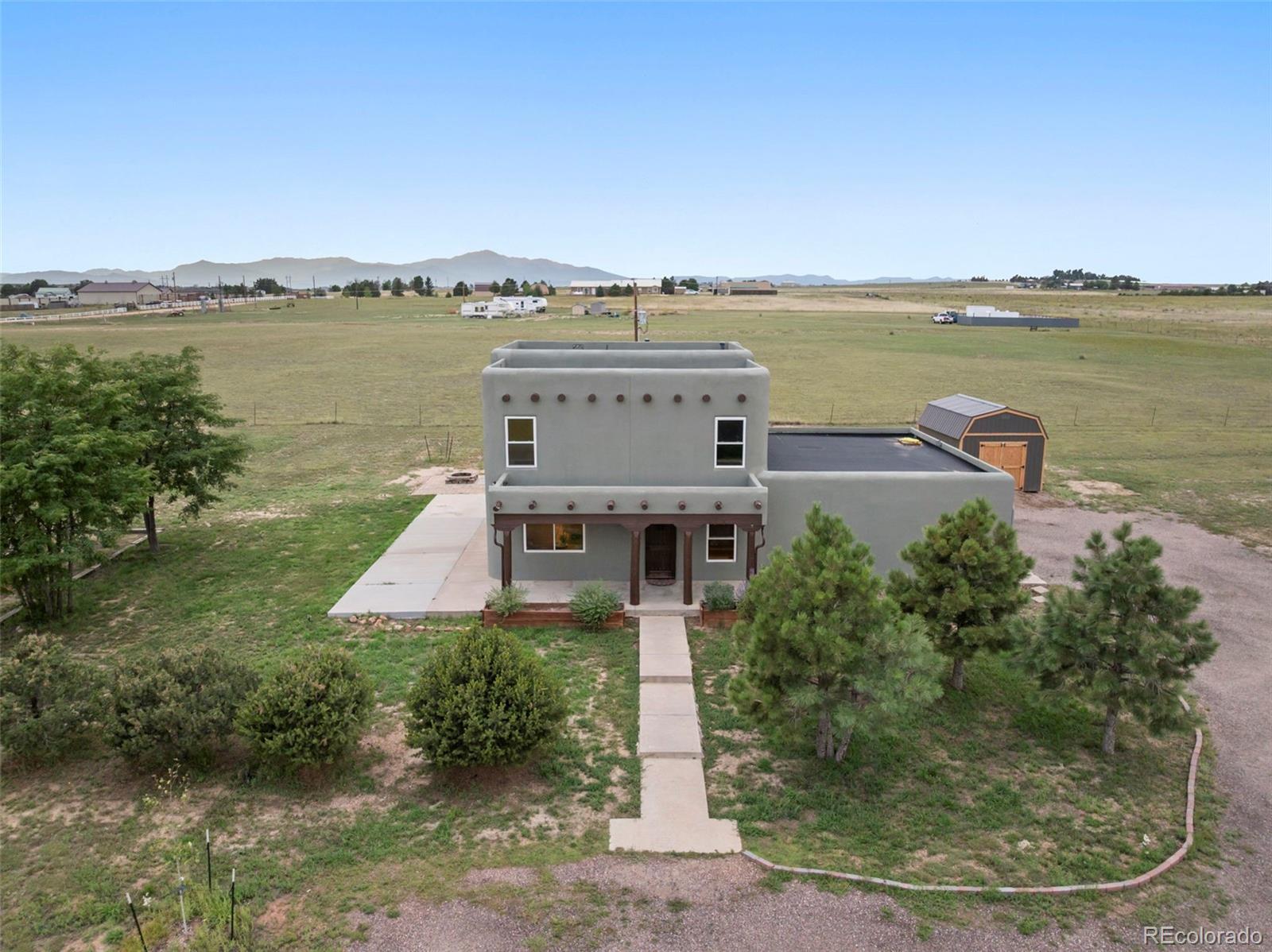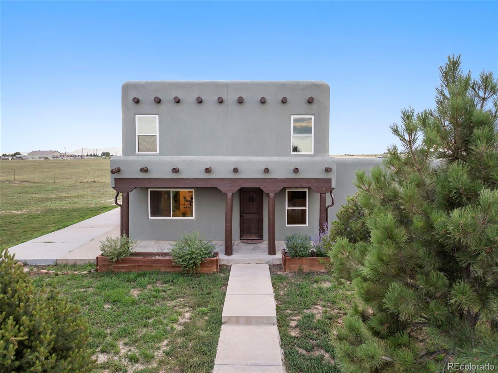 Assumable Loan! Welcome Home to your Colorado dream 5-acre horse property with mountain views, and inviting Southwestern charm! This 4-bedroom, 3-bathroom home offers a functional layout with custom beams, detailed woodwork, and thoughtful updates that blend comfort with character. The stucco exterior and newer roof provide lasting appeal, while tile flooring throughout the main level ensures durability and easy maintenance. The kitchen is a true highlight with beautiful wood cabinets, abundant storage, expansive counter space, stainless steel appliances, and plenty of room to cook and gather, making it both practical and inviting. Bedrooms are spacious and well-designed, with the master suite offering dual closets and a private retreat. Natural light fills the home, enhancing the open design and creating a warm, welcoming atmosphere. The outdoor living experience is just as impressive. An oversized three-car garage with a dedicated workspace provides abundant room for vehicles, tools, and projects, offering flexibility for hobbies or storage. Animal lovers will appreciate the fenced chicken coop, fully fenced pasture, and an 80’ x 80’ paddock with loafing shed, ideal for horses or hobby farming. With wide open skies, peaceful surroundings, and stunning mountain views, this property invites relaxation, gatherings, and connection with nature. Close to Peterson and Schriever SFB, it combines rural tranquility with convenient access to town. This is a rare opportunity to enjoy modern updates, functional design, ample storage, and expansive outdoor living in one beautiful Colorado property.