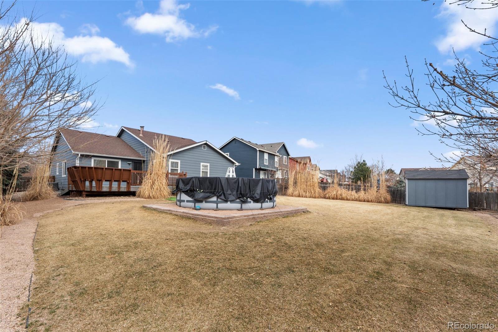 Immaculate ranch-style floor plan with one of the largest back yards in Sugar Creek! Enjoy Colorado's stunning summers in the above-ground pool right off the giant composite deck, there's enough room for the whole gang! Owner has meticulously maintained the home with newer exterior paint, landscaping, a new furnace and central air in June '25, and has just installed brand new carpet. The fully finished basement expands your living space significantly and features a bedroom with egress windows for safety and natural light, plus a full bathroom — ideal for guests, multi-generational living, man cave, or a private retreat. With its oversized lot, extensive updates, finished basement, and exceptional upkeep, this Sugar Creek home offers the perfect combination of space, comfort, and long-term value. It's truly move in ready! Brighton’s charming Main Street has a small-town feel with annual events, local shops, and seasonal festivals. Near I-76, Hwy 85 and E-470, 30 minute drive to DIA, 25 minutes to downtown Denver. Barr Lake State Park is just 15 minutes away, Prairie Center shopping, errands and restaurants are 5 minutes. Showings start Friday, 3/6