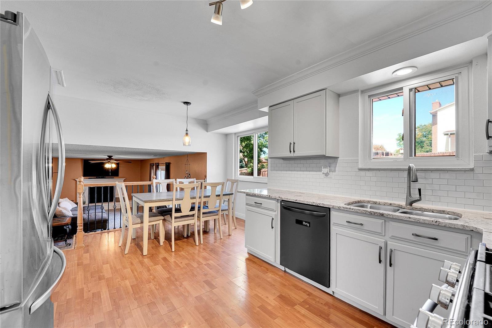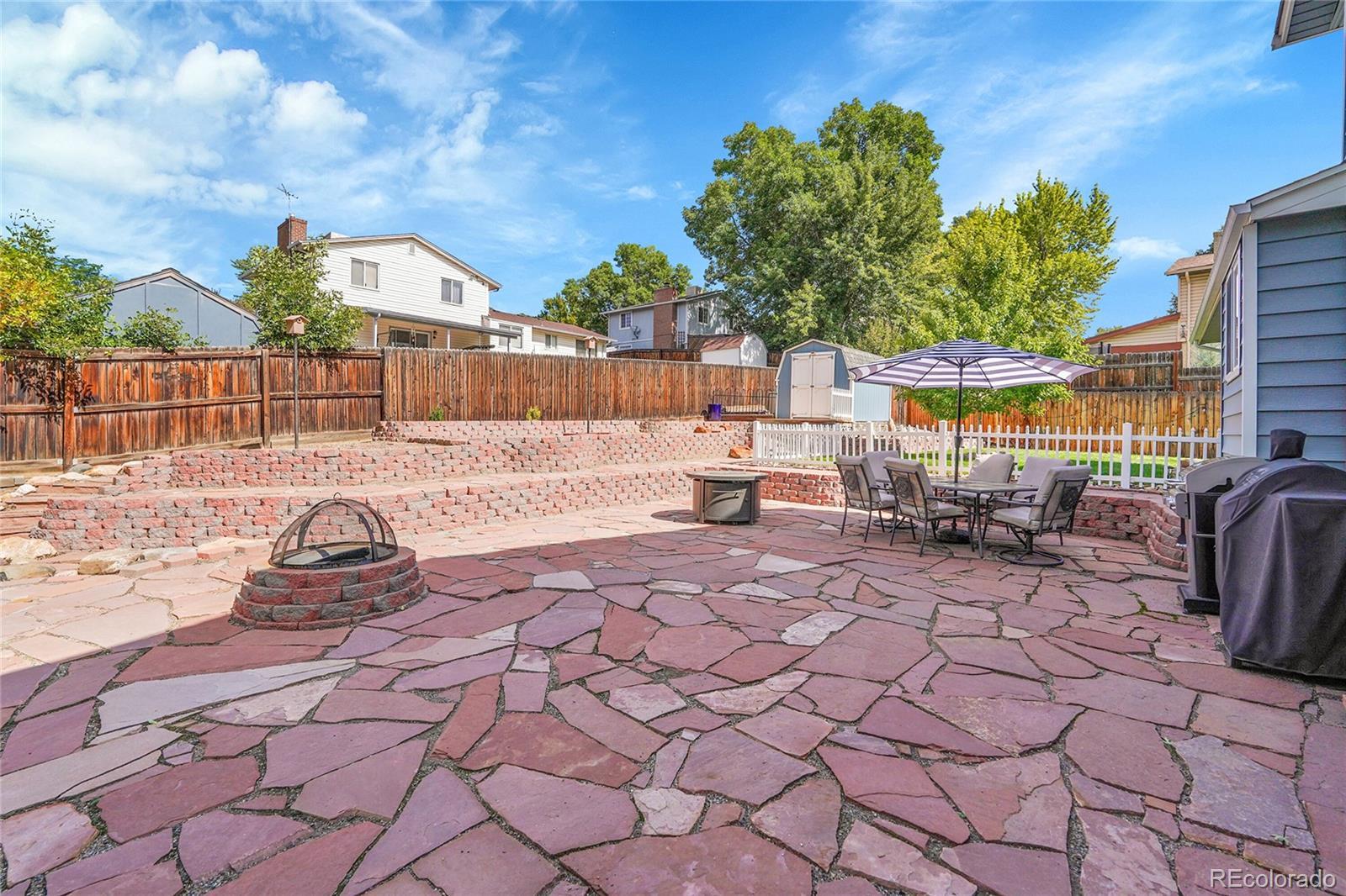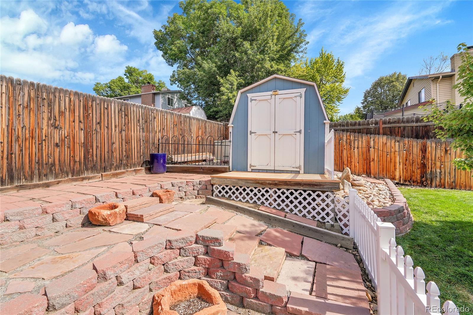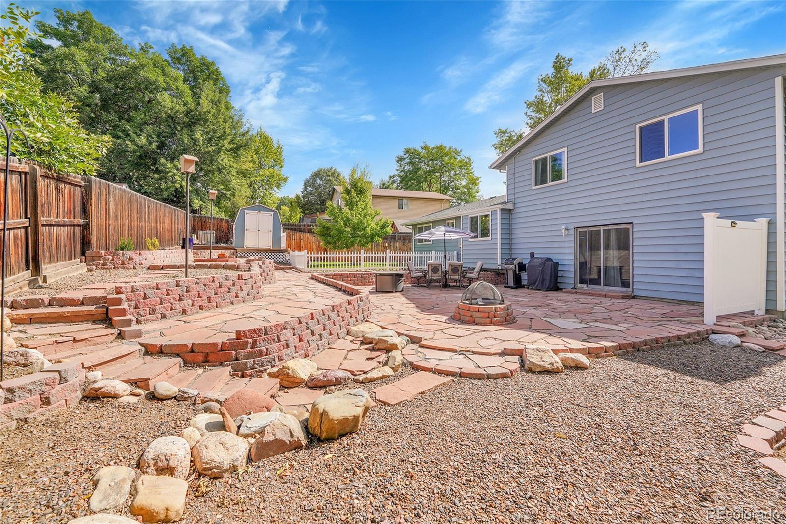 Welcome home to this well maintained home on a large lot in the desirable Woodland Valley neighborhood! This spacious multi-level layout offers plenty of room to spread out. The main floor welcomes you with a light-filled living room with a large picture window. Just a few steps up, the second-level living space features a cozy fireplace for cool evenings, expansive sliding glass doors that flood the room with natural light, and a convenient powder bath. The updated kitchen features quartz countertops, tile backsplash, modern finishes, and an inviting eat-in space. Upstairs, you’ll find four bedrooms and two bathrooms, including a generously sized primary suite with its own three quarter bath. The additional three bedrooms share a full bath, providing comfort and flexibility for family, guests, or a home office. The beautifully landscaped backyard is a true sanctuary—designed for low-maintenance, plus two storage sheds for tools, hobbies, or extra gear. Perfect for grilling, dining, and entertaining. The unfinished basement is a blank canvas ready for your personal touch. Enjoy energy savings with solar panels that help keep your electrical bills low. All of this in a prime Arvada location—less than 5 minutes to Apex Park & Rec, King Soopers, and with quick access to multiple highways for an easy trip downtown, to the mountains, and beyond.