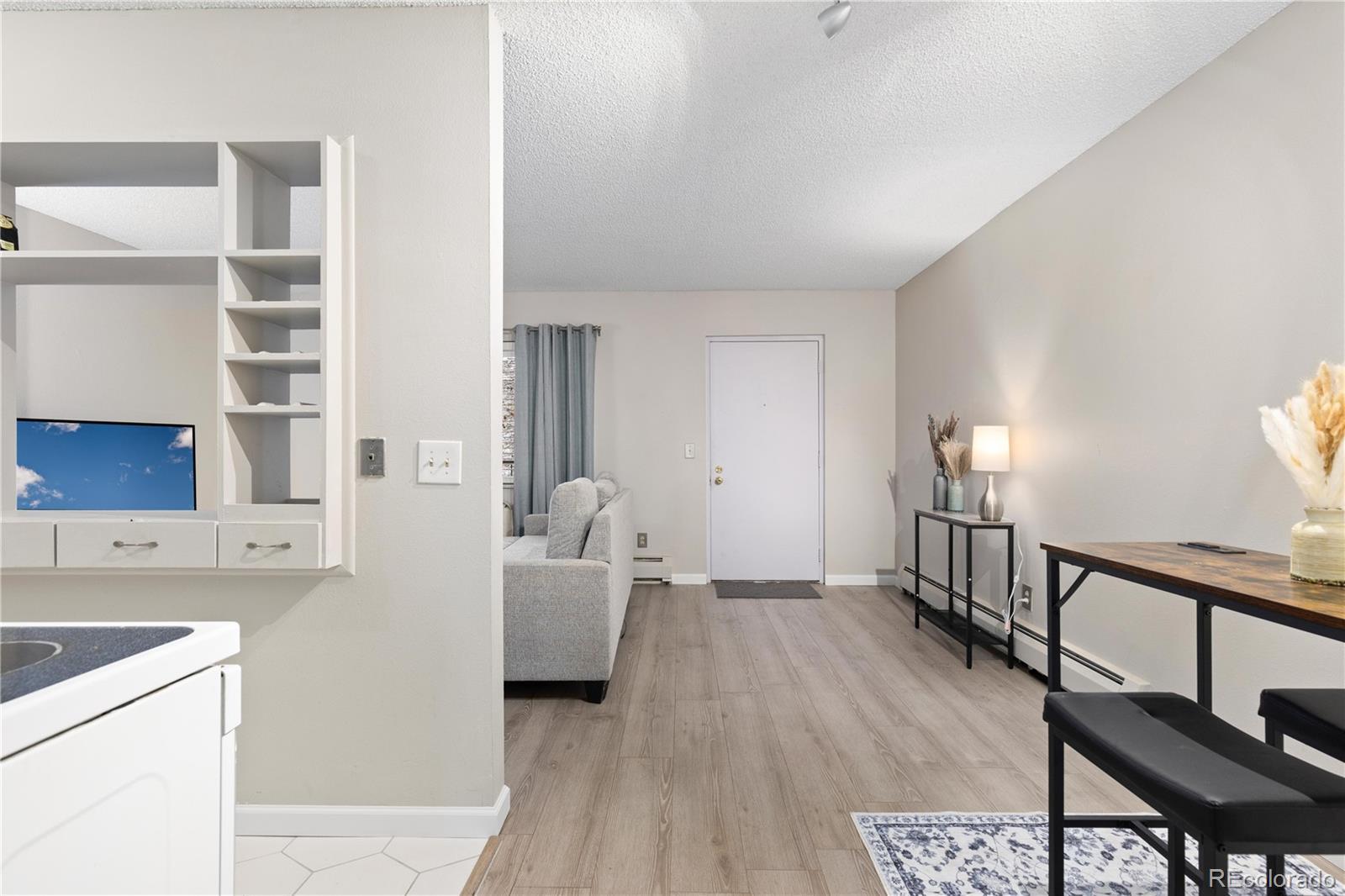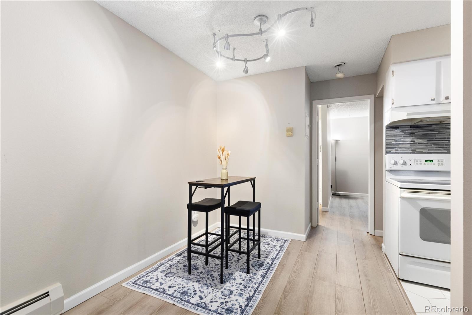 Welcome to this beautifully updated condo in a prime Denver location! Recently upgraded with stylish Luxury Vinyl Plank flooring and tile flooring in October 2024, this home offers a spacious open floor plan where the living room, dining area, and kitchen blend seamlessly, perfect for both relaxing and entertaining. The bright bedroom features a private balcony and convenient en-suite bathroom access, providing a comfortable retreat. Enjoy low-maintenance living, as the HOA covers heat, water, sewer, and trash, while the community offers a seasonal outdoor pool and lush green spaces. With a reserved parking spot directly in front of the building and easy access to shopping, dining, and major highways, this condo truly combines convenience with charm in the heart of Denver!