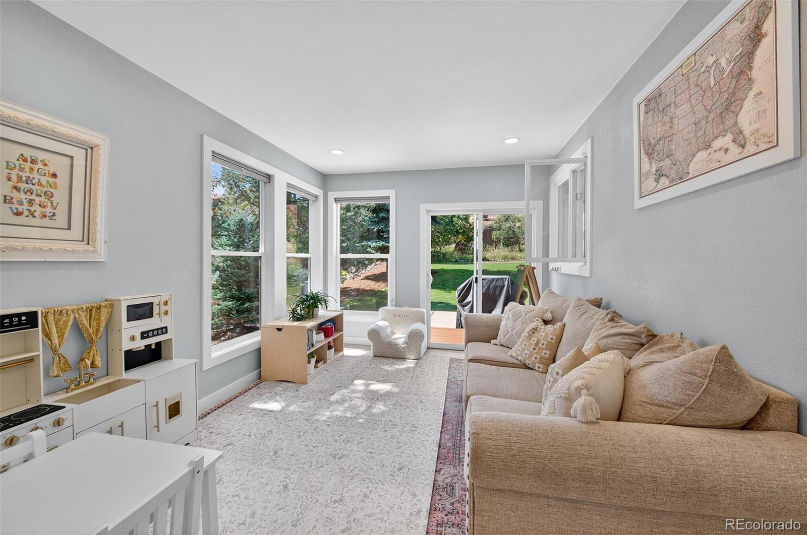 Exquisite Updated Home with phenomenal views in Ken Caryl Valley's North Ranch. Discover the perfect blend of luxury and comfort in this completely updated home, nestled in the highly sought-after North Ranch at Ken Caryl Valley. With six bedrooms and four bathrooms, this stunning residence offers exceptional space and style. Main Level~The main floor is an entertainer's dream, offering elegant formal living & dining rooms. At the heart of the home is a gourmet kitchen, beautifully appointed with top-of-the-line appliances & a large center island. Flowing seamlessly from the kitchen is a cozy family room, a bright sunroom, a convenient mudroom, & a versatile bedroom that can efficiently serve as a home office. Upper Level~Upstairs, you'll find a private and spacious retreat. The primary suite is a true sanctuary, featuring a huge walk-in closet, a luxurious en-suite bathroom, & an adjoining peaceful retreat room that captures amazing views. The upper level also includes three additional bedrooms & a large secondary bathroom with dual sinks. Finished Basement~The expansive finished basement adds incredible living space. It features a generous recreation room with a stylish wet bar, two more bedrooms, & a beautiful ¾ bathroom, making it the perfect area for guests, media, or play. Exterior Oasis~Step outside into your own private, park-like paradise. The exterior space is designed for relaxation and enjoyment, featuring a large composite deck, a breathtaking water feature masterfully built into the natural rock landscape, & a cozy fire pit. The large, flat yard includes a dedicated dog run, completing this perfect outdoor haven. New Landscaping ~New Windows(Andersen&Pella) ~Whole House Filtration System ~Upgraded Garage Storage System ~Oversized 3-Car Garage ~New Sprinkler System ~Custom Window Coverings ~Natural Light. Amazing Ken Caryl Amenities with three pools, miles of trails, tennis and pickleball, many parks and playgrounds, and an equestrian center.