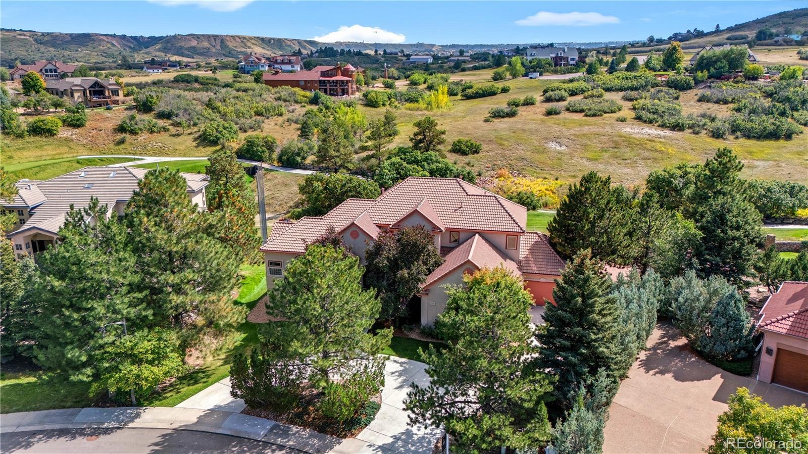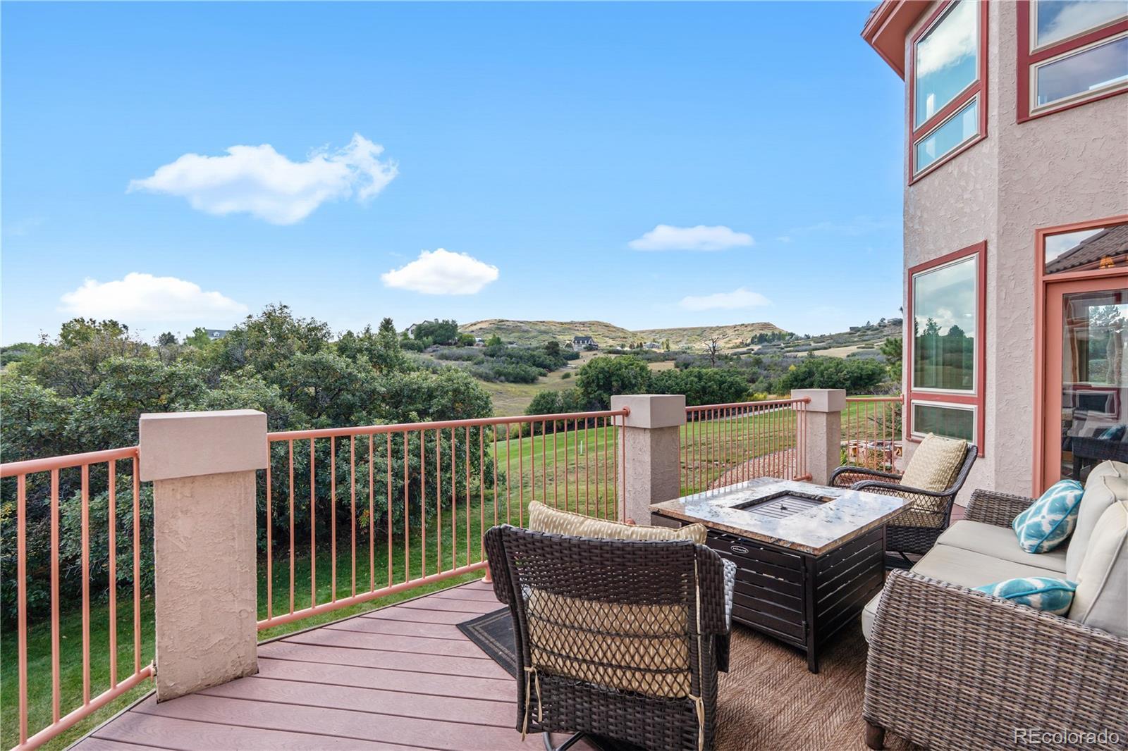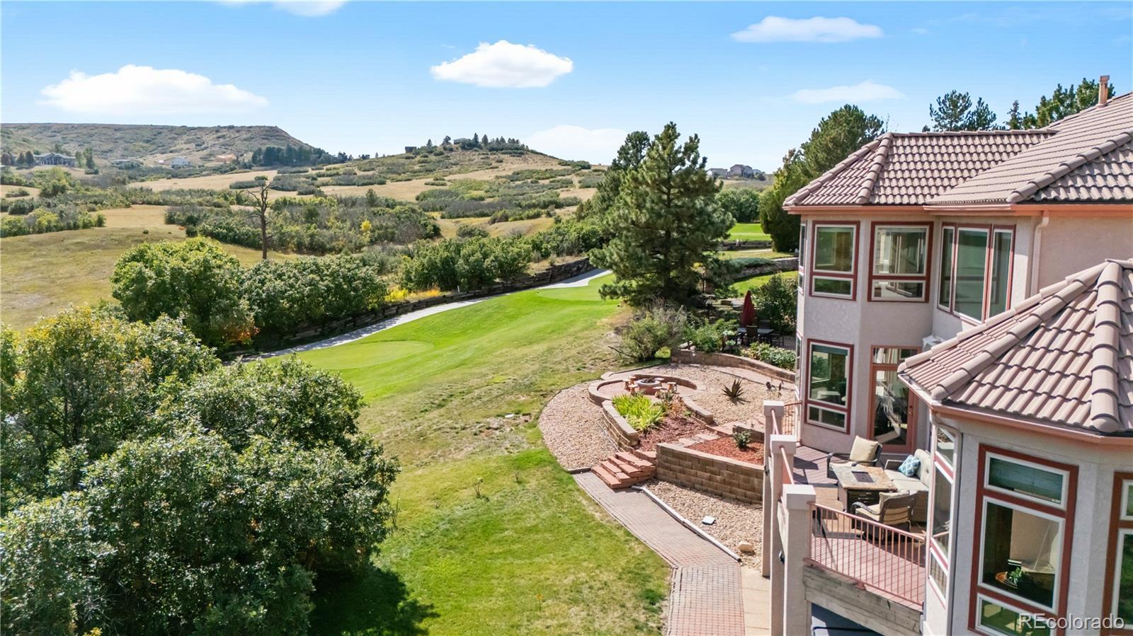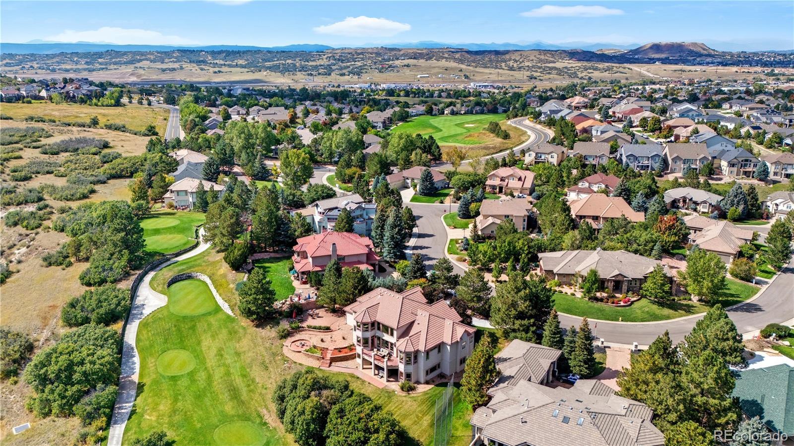 Welcome to this spectacular 6,275 sq. ft. custom home by Summit Chalet, ideally situated on a quiet cul-de-sac along Parade of Homes Street. Set on an expansive 16,596 sq. ft. lot, the property backs to the 12th hole of Plum Creek Golf Course and open space, offering breathtaking views, serene privacy, and unforgettable sunsets from the upgraded Trex deck (2010). The home is surrounded by mature trees and professional landscaping, creating an inviting, park-like setting. A circular driveway, fully replaced in 2022, enhances the property’s curb appeal and convenience. Inside, the main floor features a welcoming foyer, a formal dining room, and a dedicated office with custom built-ins. The gourmet kitchen boasts stainless steel appliances, granite countertops, and custom cabinetry, seamlessly opening to a breakfast nook with golf course views, and a bright, airy living room with soaring ceilings and a cozy fireplace. The open-concept layout makes the space ideal for both everyday living and entertaining. A spacious master suite, big laundry room and half bath complete the main level. Pictures coming soon. Upstairs, you’ll find three comfortable bedrooms, while the fully finished walkout basement offers an additional bedroom with 2 full baths, a large family room, and a pool table (included with the sale). Notable updates include Champion Windows installed in 2008 with a 1 year warranty transferable to the new owners — a great benefit for golf course living. This is truly a one-of-a-kind property full of character and upgrades, located just a 30-minute walk to downtown Castle Rock with its charming shops and restaurants, and a 7-minute drive to the Miller Activity Complex, where you’ll find hiking trails, zip lines, pools, and recreation for all ages. With easy access to I-25, this home blends luxury, comfort, and convenience in a stunning golf course setting.