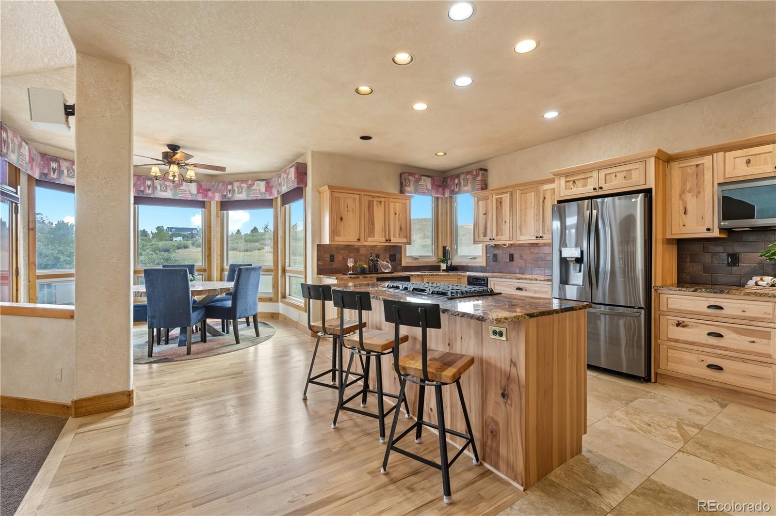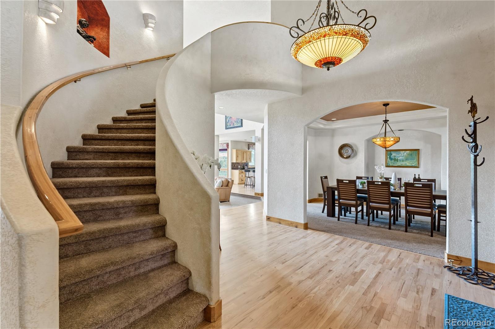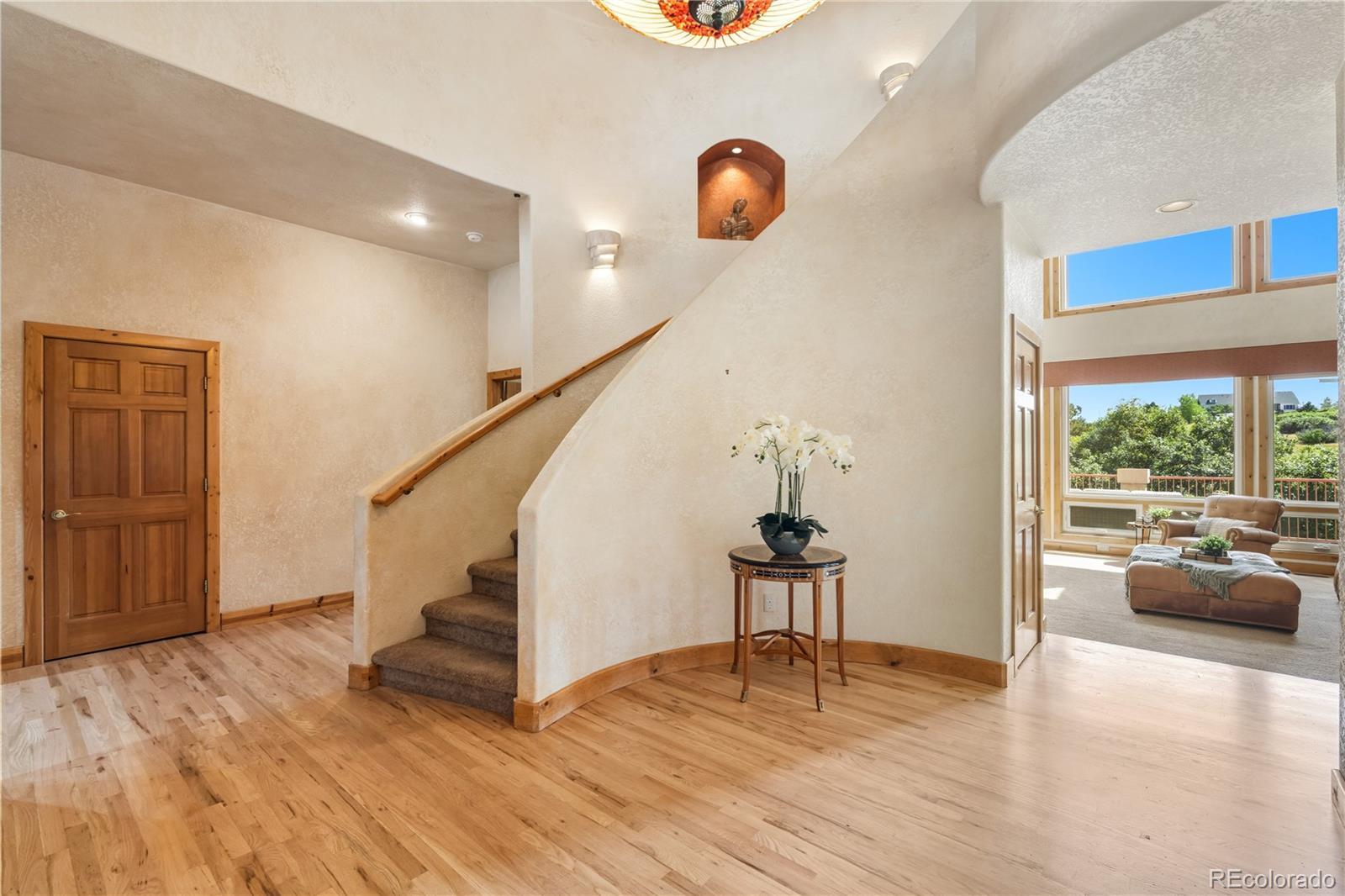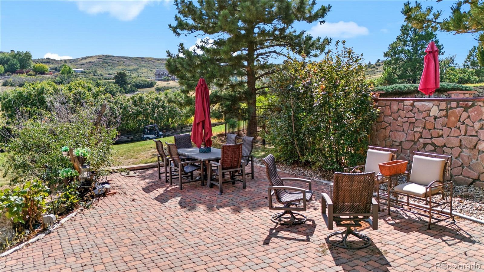 Welcome to this spectacular 6,275 sq. ft. custom home by Summit Chalet, ideally situated on a quiet cul-de-sac along Parade of Homes Street. Set on an expansive 16,596 sq. ft. lot, the property backs to the 12th hole of Plum Creek Golf Course and open space, offering breathtaking views, serene privacy, and unforgettable sunsets from the upgraded Trex deck (2010). The home is surrounded by mature trees and professional landscaping, creating an inviting, park-like setting. A circular driveway, fully replaced in 2022, enhances the property’s curb appeal and convenience. Inside, the main floor features a welcoming foyer, a formal dining room, and a dedicated office with custom built-ins. The gourmet kitchen boasts stainless steel appliances, granite countertops, and custom cabinetry, seamlessly opening to a breakfast nook with golf course views, and a bright, airy living room with soaring ceilings and a cozy fireplace. The open-concept layout makes the space ideal for both everyday living and entertaining. A spacious master suite, big laundry room and half bath complete the main level. Pictures coming soon. Upstairs, you’ll find three comfortable bedrooms, while the fully finished walkout basement offers an additional bedroom with 2 full baths, a large family room, and a pool table (included with the sale). Notable updates include Champion Windows installed in 2008 with a 1 year warranty transferable to the new owners — a great benefit for golf course living. This is truly a one-of-a-kind property full of character and upgrades, located just a 30-minute walk to downtown Castle Rock with its charming shops and restaurants, and a 7-minute drive to the Miller Activity Complex, where you’ll find hiking trails, zip lines, pools, and recreation for all ages. With easy access to I-25, this home blends luxury, comfort, and convenience in a stunning golf course setting.