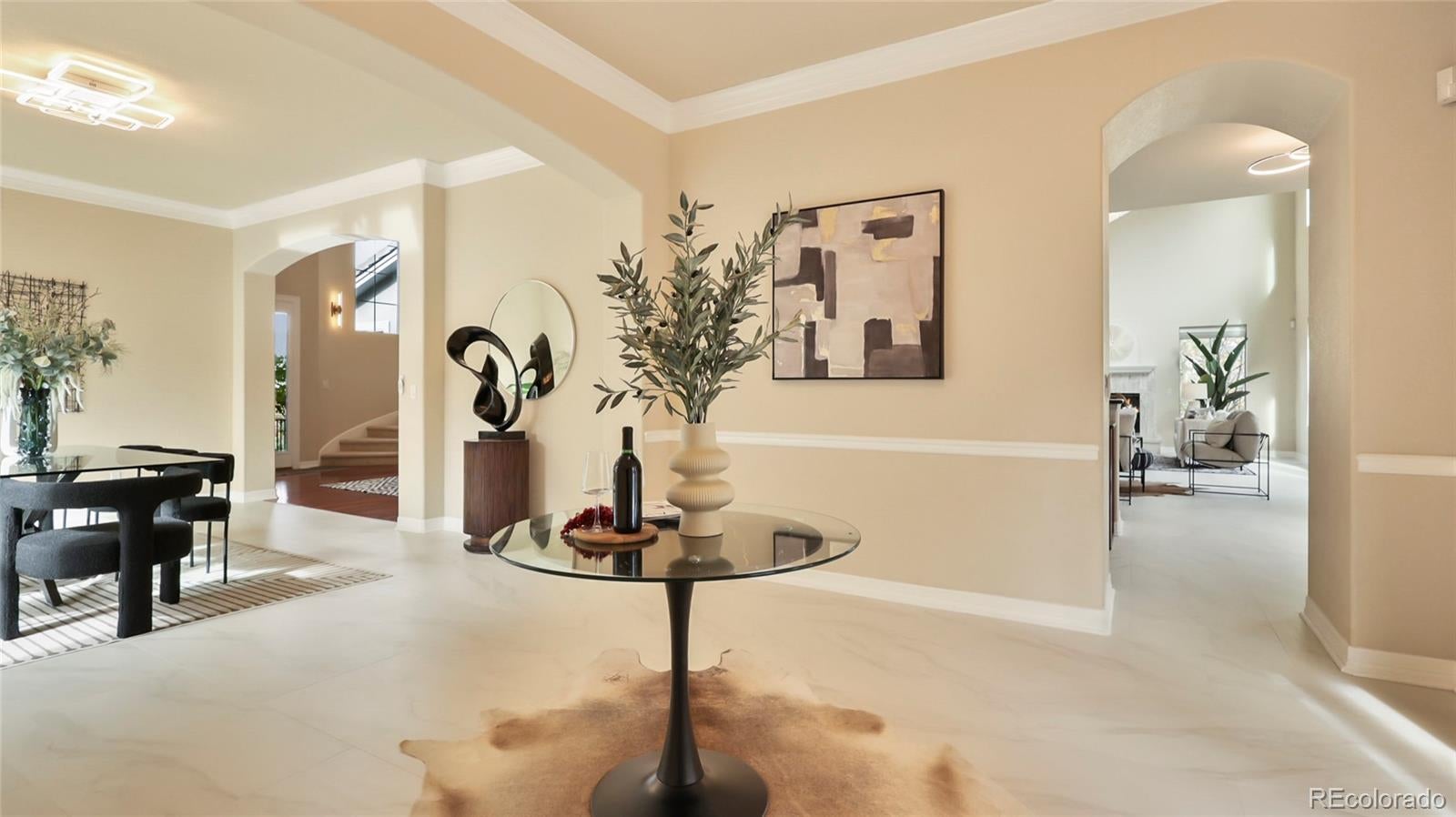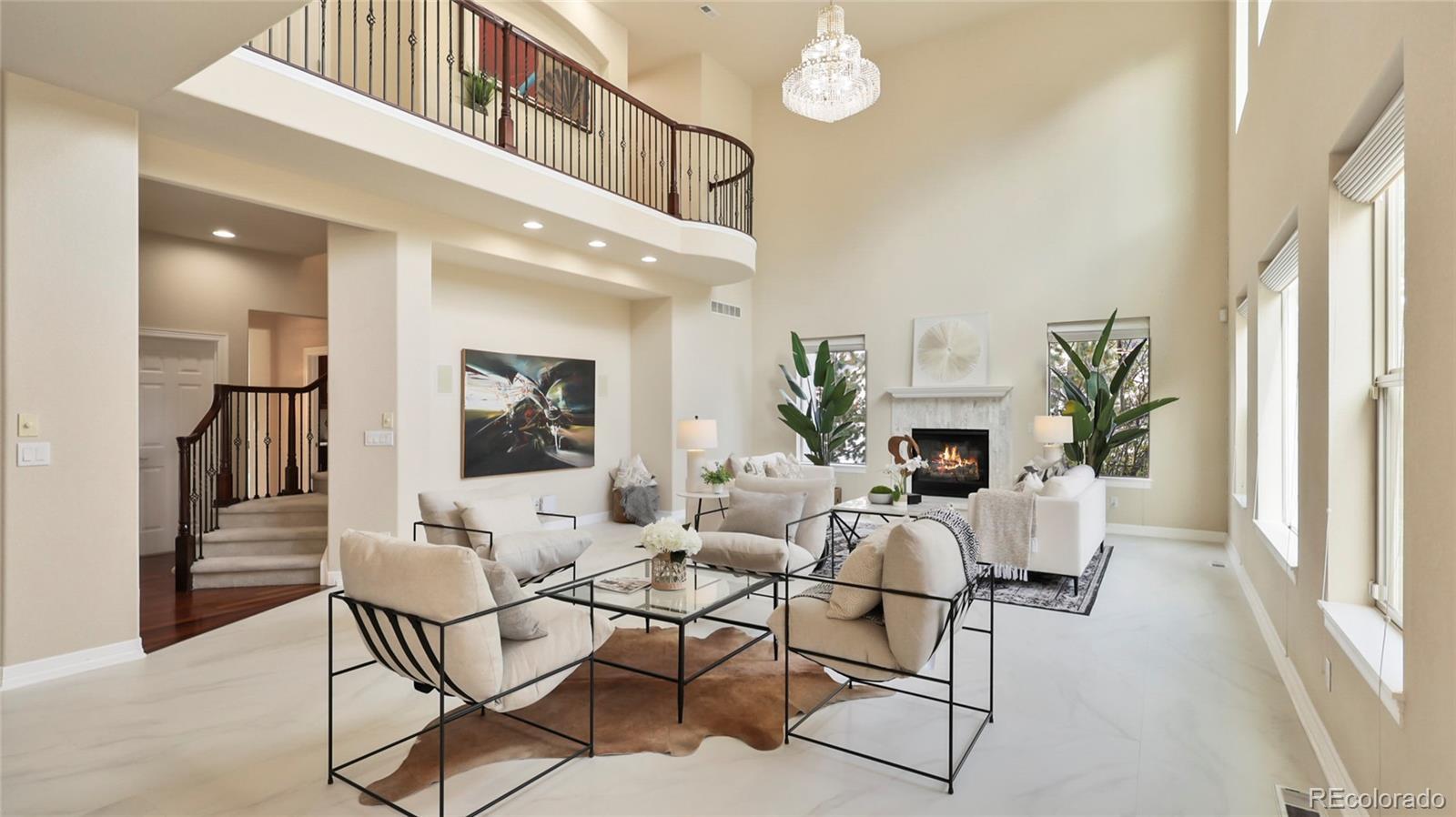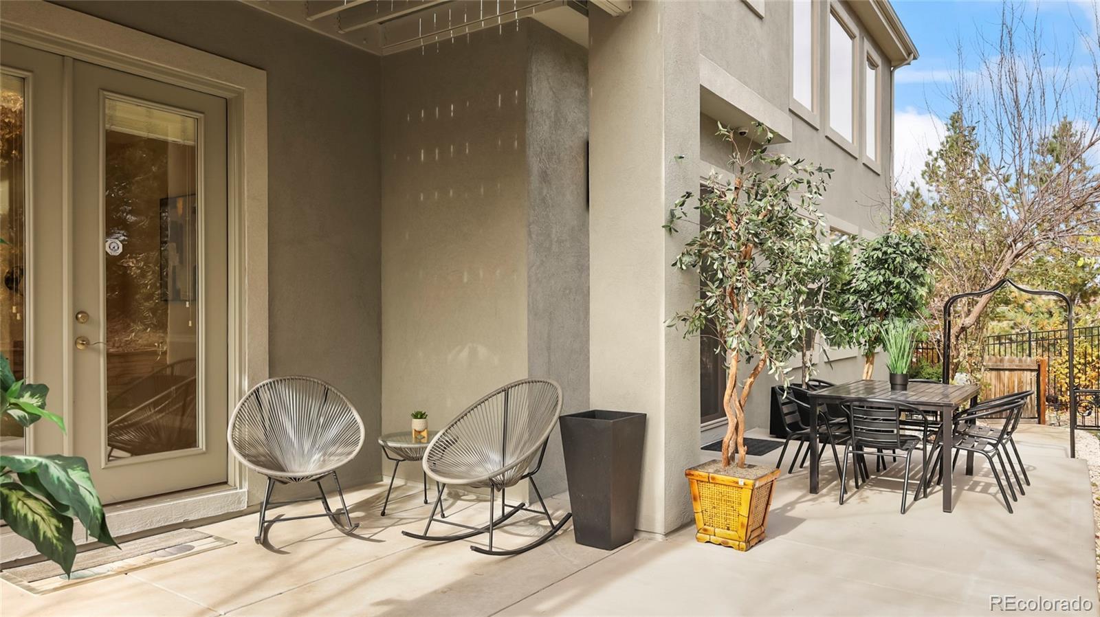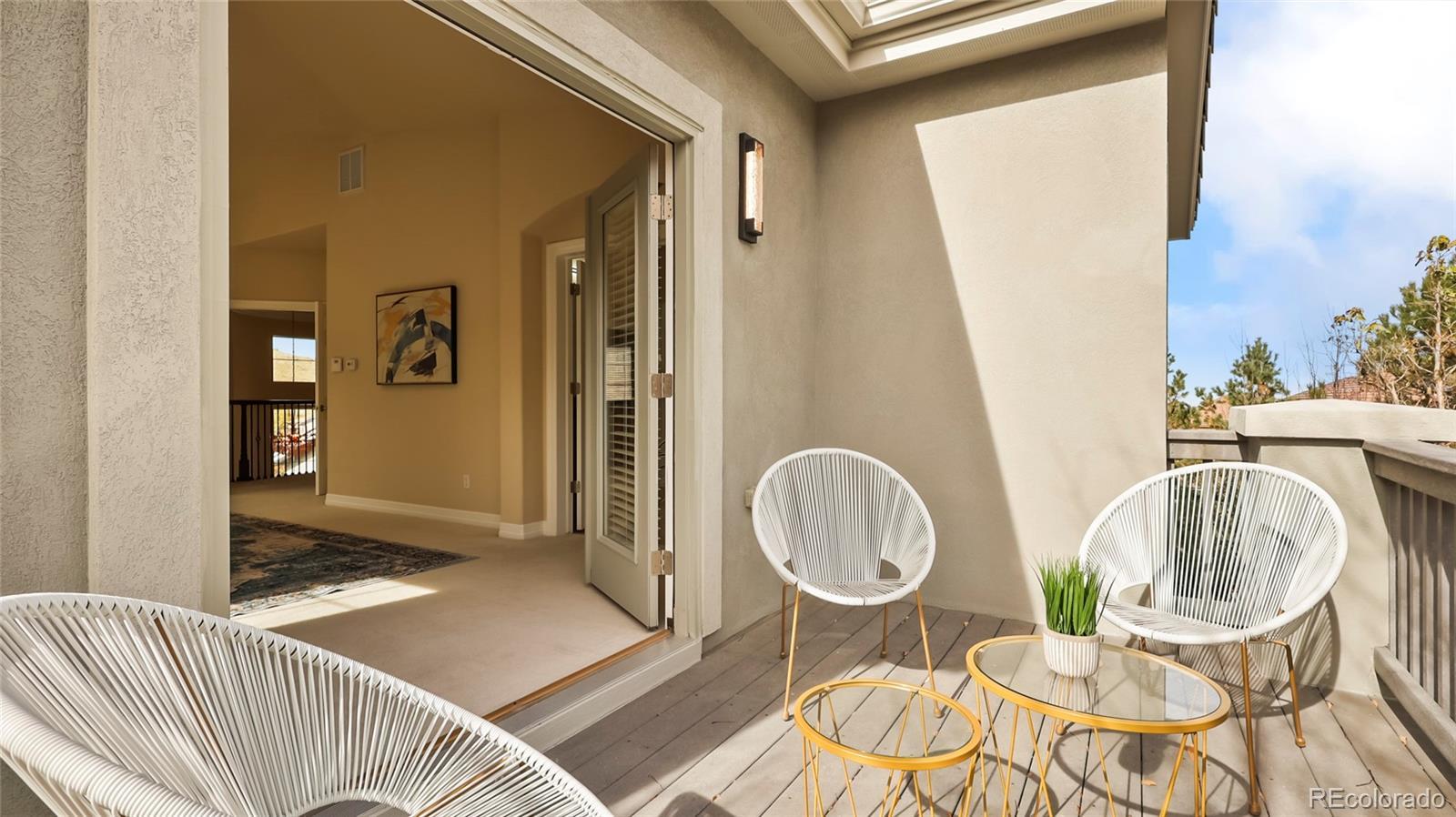 There are houses that give you walls and a roof. Bluffmont Heights gives you something more… it gives you a feeling! Sitting along Lone Tree’s protected open space, just a short walk from the Bluffs Regional Park Trail, this home was designed for people who appreciate style, comfort, and spaces that makes life feel richer. Inside, you’re greeted by 32-foot ceilings and wide Italian tile set over German acoustic underlayment, so the home looks grand but sounds soft and quiet. Marble and travertine run throughout, giving every room a warm, timeless feel. Nothing here is accidental - Roman shades, clerestory lifts, updated windows, and new French doors were chosen to bring in natural light and make the home feel open and calm. The kitchen has a sculpted basin sink and high-arc faucet, and even the laundry room was finished with the same cabinetry and counters for a cohesive flow. Every bathroom is designed like a spa: custom glass, Delta trims, waterfall spouts, vessel sinks, and heated, self-cleaning bidet toilets. The primary suite is its own escape: French doors to a private deck, bench shower, jetted tub with dual motors, and its own HVAC zone so the temperature is exactly how you like it. Outside, the yard has expanded patio space, mature landscaping, and a new French-drain system. The Trex deck off the primary suite creates a second outdoor living area perfect for sunrise coffee or quiet evenings. Security is already in place with a full ADT system, five exterior cameras, and multiple motion sensors. When you do leave home ... everything is close: plenty of places to eat and unwind, top rated Douglas County Schools, Park Meadows Mall, Sky Ridge, Charles Schwab, Prairie Sky Park, Light Rail, and fast access to I-25 and C-470. Bluffmont Heights isn’t just a property, it’s a lifestyle - modern design, real comfort, and a location that feels tucked away but connected to everything.