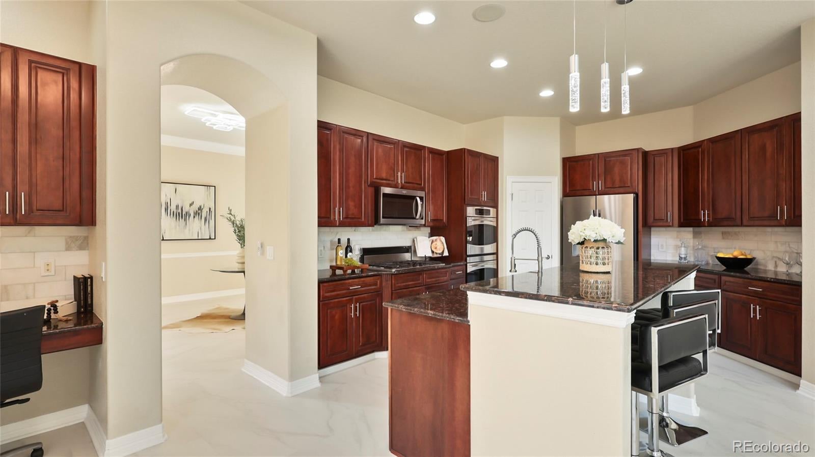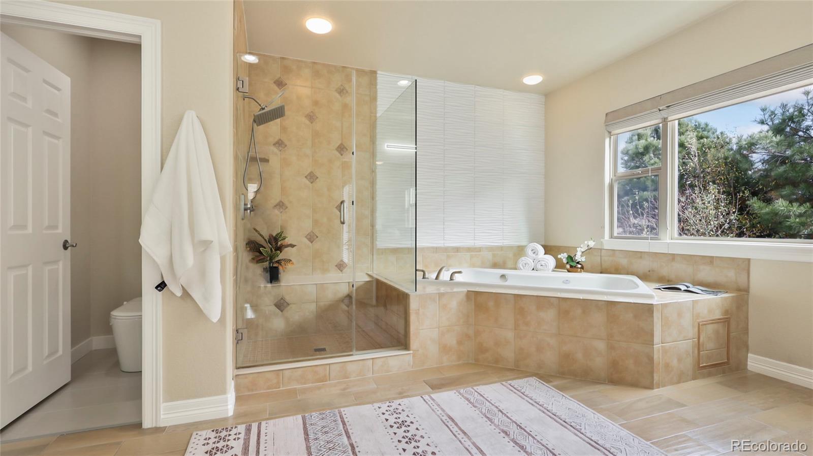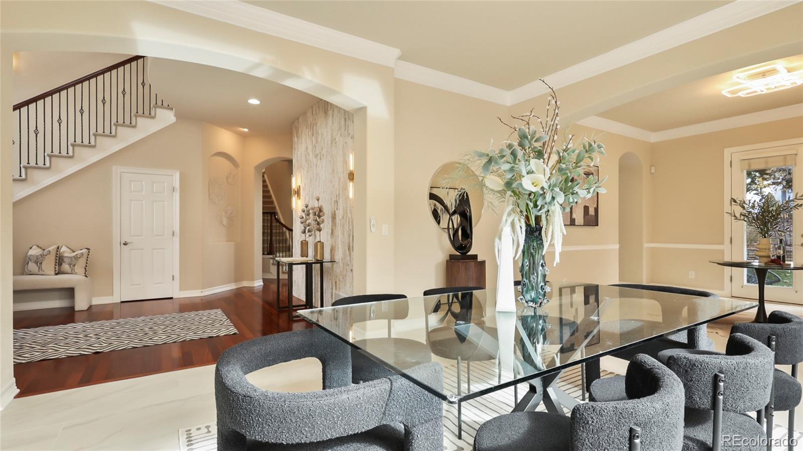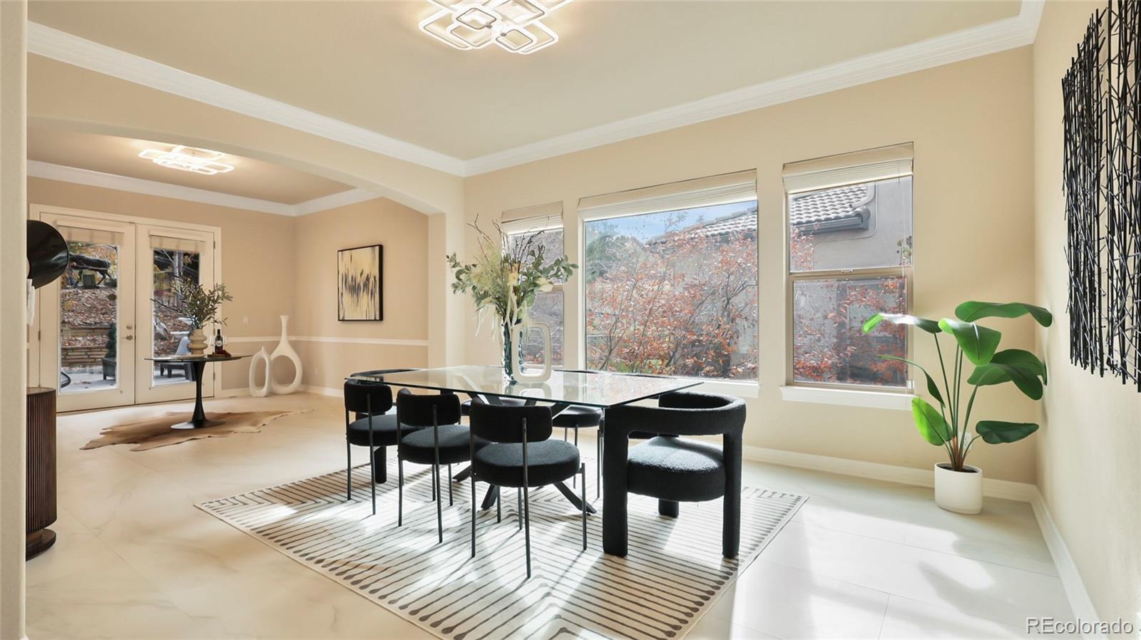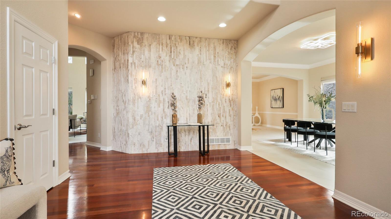 There are houses that give you walls and a roof. Bluffmont Heights gives you something more… it gives you a feeling! Sitting along Lone Tree’s protected open space, just a short walk from the Bluffs Regional Park Trail, this home was designed for people who appreciate style, comfort, and spaces that makes life feel richer. Inside, you’re greeted by 32-foot ceilings and wide Italian tile set over German acoustic underlayment, so the home looks grand but sounds soft and quiet. Marble and travertine run throughout, giving every room a warm, timeless feel. Nothing here is accidental - Roman shades, clerestory lifts, updated windows, and new French doors were chosen to bring in natural light and make the home feel open and calm. The kitchen has a sculpted basin sink and high-arc faucet, and even the laundry room was finished with the same cabinetry and counters for a cohesive flow. Every bathroom is designed like a spa: custom glass, Delta trims, waterfall spouts, vessel sinks, and heated, self-cleaning bidet toilets. The primary suite is its own escape: French doors to a private deck, bench shower, jetted tub with dual motors, and its own HVAC zone so the temperature is exactly how you like it. Outside, the yard has expanded patio space, mature landscaping, and a new French-drain system. The Trex deck off the primary suite creates a second outdoor living area perfect for sunrise coffee or quiet evenings. Security is already in place with a full ADT system, five exterior cameras, and multiple motion sensors. When you do leave home ... everything is close: plenty of places to eat and unwind, top rated Douglas County Schools, Park Meadows Mall, Sky Ridge, Charles Schwab, Prairie Sky Park, Light Rail, and fast access to I-25 and C-470. Bluffmont Heights isn’t just a property, it’s a lifestyle - modern design, real comfort, and a location that feels tucked away but connected to everything.