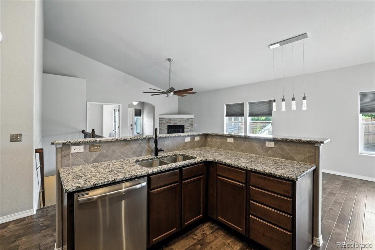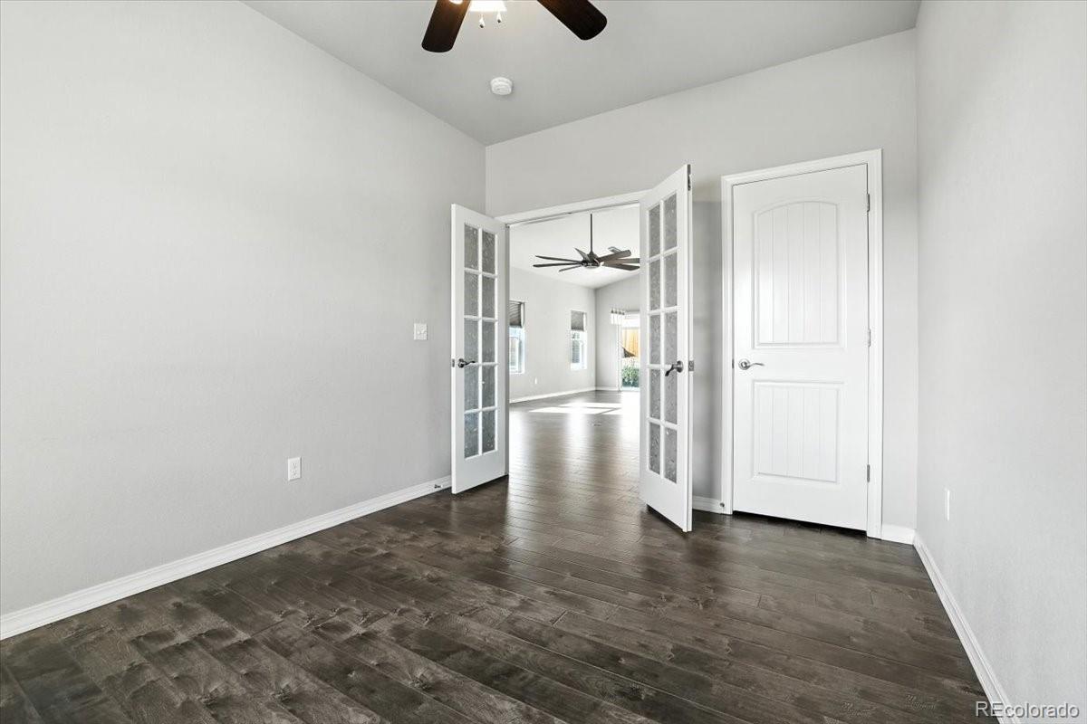 Welcome to this lovely ranch home, where modern comfort meets Colorado charm! This five-bedroom, three-bath ranch offers over 3,000 square feet of thoughtful living space designed for both everyday ease and grand entertaining. The main floor greets you with soaring vaulted ceilings, warm engineered wood floors, and an open concept that flows from the great room’s cozy fireplace to a chef-inspired kitchen complete with granite counters, upgraded appliances, and a corner pantry. French doors lead to a bright study, perfect for a home office or library. Downstairs, the fully finished basement feels like a second home of its own, featuring a near-full kitchen (yes, even with a pantry), spacious living area, and three more bedrooms ready for guests or a growing household. Step outside and you’ll find outdoor living at its finest—covered patio, pergola retreat, greenhouse, and even a handy storage shed—all framed by mountain views and a fenced backyard. A three-car garage keeps your toys organized, while a paid solar system makes this home as smart as it is beautiful. Tucked on a quiet cul-de-sac in Quail Brush Creek, with trails, parks, and great schools nearby, this home is truly the whole package.