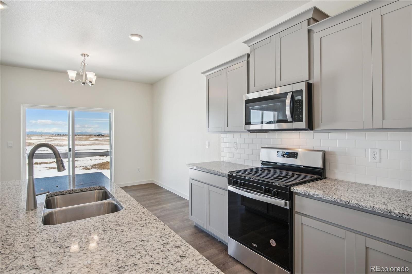 Corner Lot backing open space! Fully landscaped 5 Bedrooms, 3 baths, Loft, Study + 3 Car! Prestigious Douglas County Schools! Open flow between great room, dining, and kitchen. Light and bright decor features including classic white cabinetry with crown molding, beautiful granite kitchen counters with subway tile back splash, stainless appliances, tile bath floors & quartz bath countertops. This home offers an extensive list of features including 8' front door, 2 panel interior doors and craftsman style trim, A/C, front yard xeriscape, 8' tall garage doors, plus Smart home features: keyless entry, video doorbell, Smart lighting, thermostat, and Smart speaker! Deako customizable lighting switches! Come enjoy the open space and peace and quiet of our community! ***Estimated Delivery Date: December. Photos are representative and not of actual property***