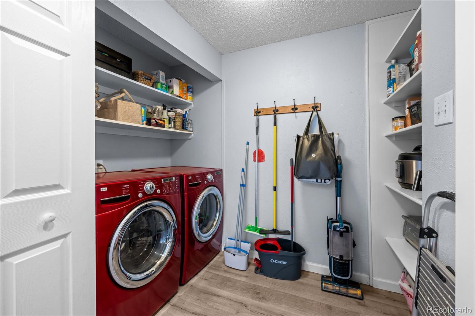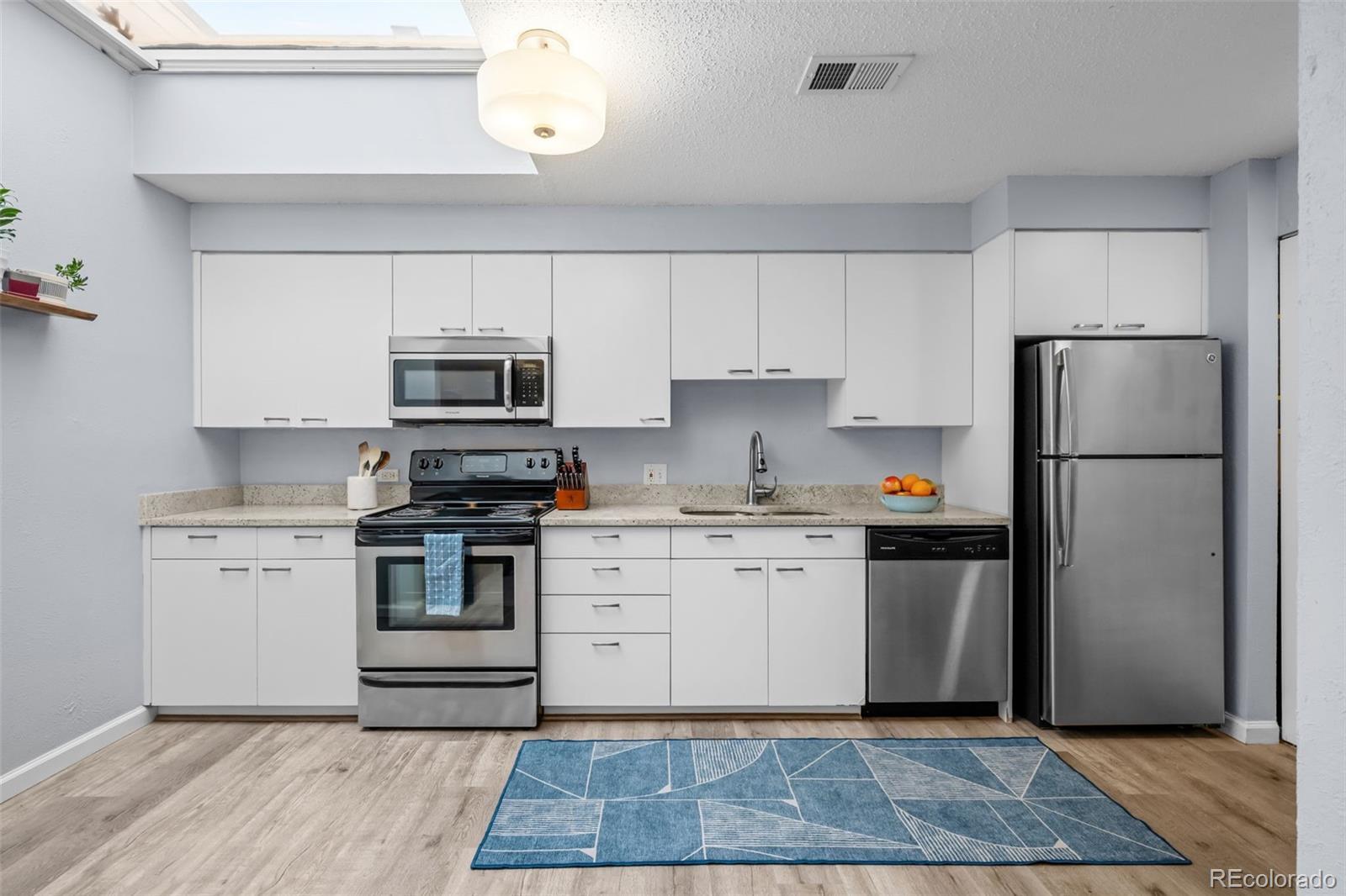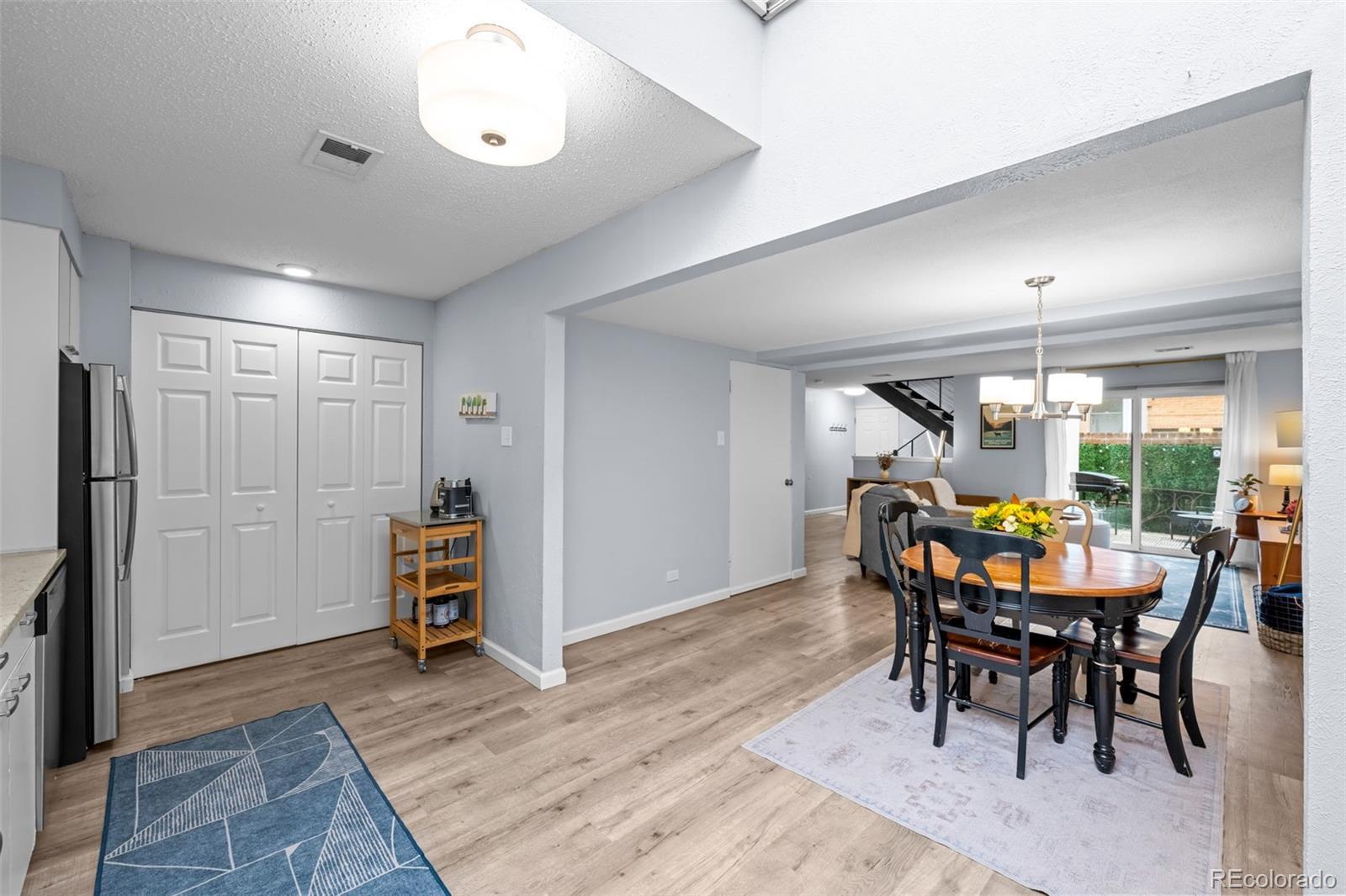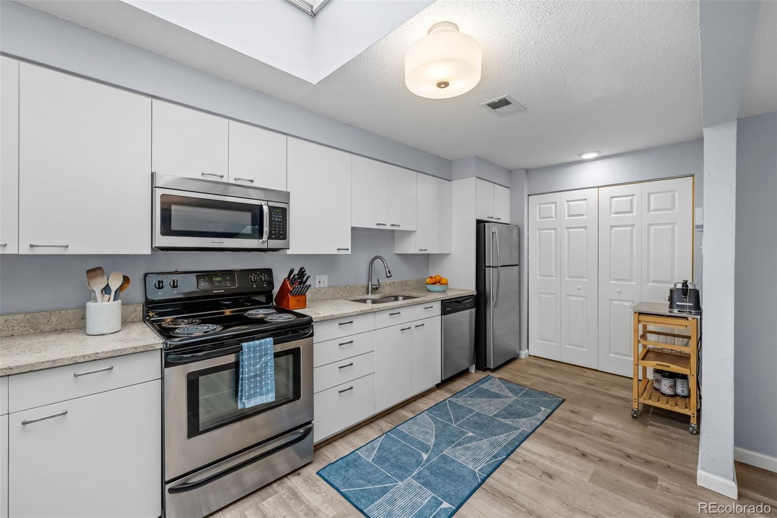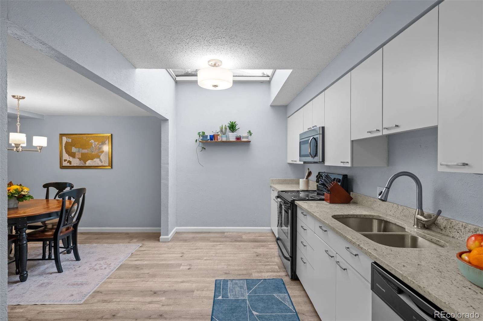SELLER WILL PAY 1 YEAR OF HOA FEES AT THE CURRENT MONTHLY RATE.**. Seller has found dream home! This deal looks too good to be true - but it isn't. Fantastic home, updated beautifully to offer comfort, modern finishes, and a smart layout that just works. The main level features an open floor plan with luxury vinyl plank flooring throughout. The living room flows to a private patio — perfect for morning coffee or a quiet evening grill-session — and the updated kitchen shines with white cabinetry, granite countertops, stainless steel appliances, a skylight, and a combined laundry closet/pantry with washer & dryer included. A welcoming entry and convenient powder bath complete the main floor. Upstairs, the bright and generous primary suite features a charming balconet, double-vanity bath, and walk-in closet. A second bedroom also offers its own full bath and walk-in closet — a rare find and a huge perk. Downstairs, you'll find a useful flex/storage space that leads directly to the secure underground garage with two reserved parking spaces plus storage — no racing for street parking, ever. The community offers a clubhouse and pool just steps away. And you can't beat the location: close to Light Rail, I-25, I-225, restaurants, grocery, retail, the High Line Canal, and Bible Park. Easy living, smart updates, and everything you need right where you want it. **One year of HOA fees will be paid at current monthly fee, this would not include any possible increase or special assessment**