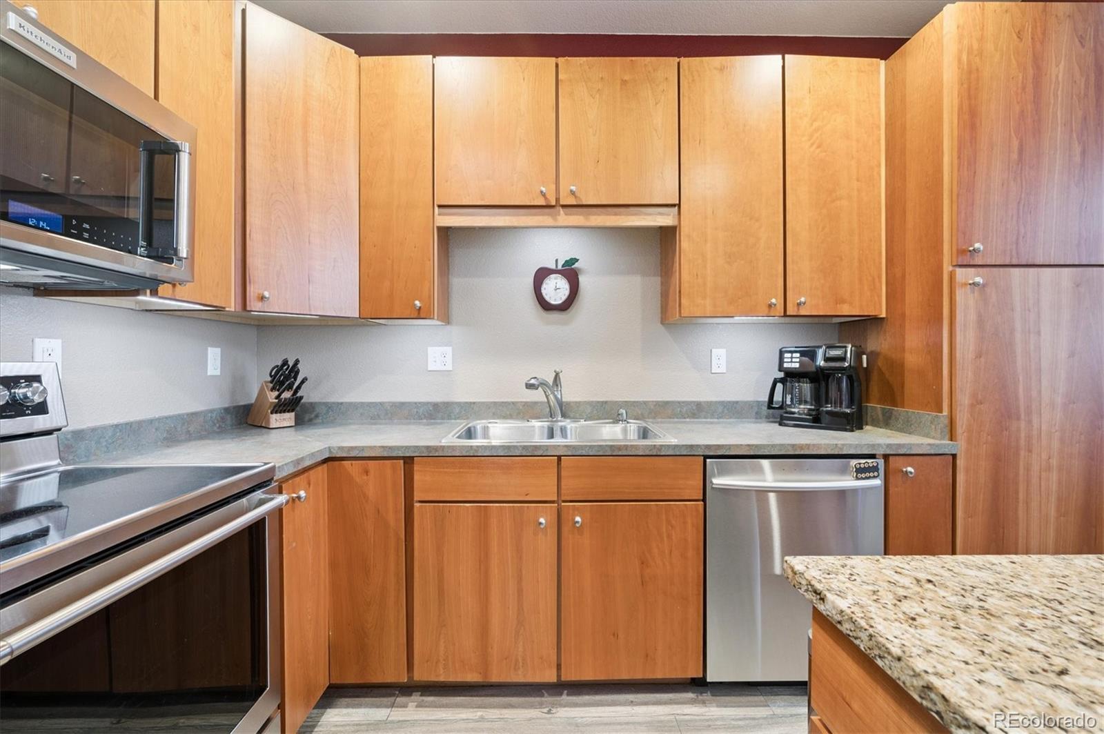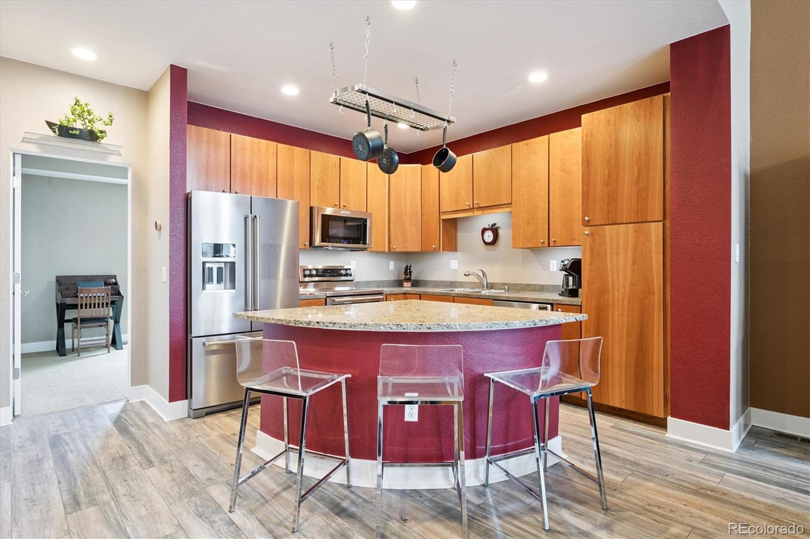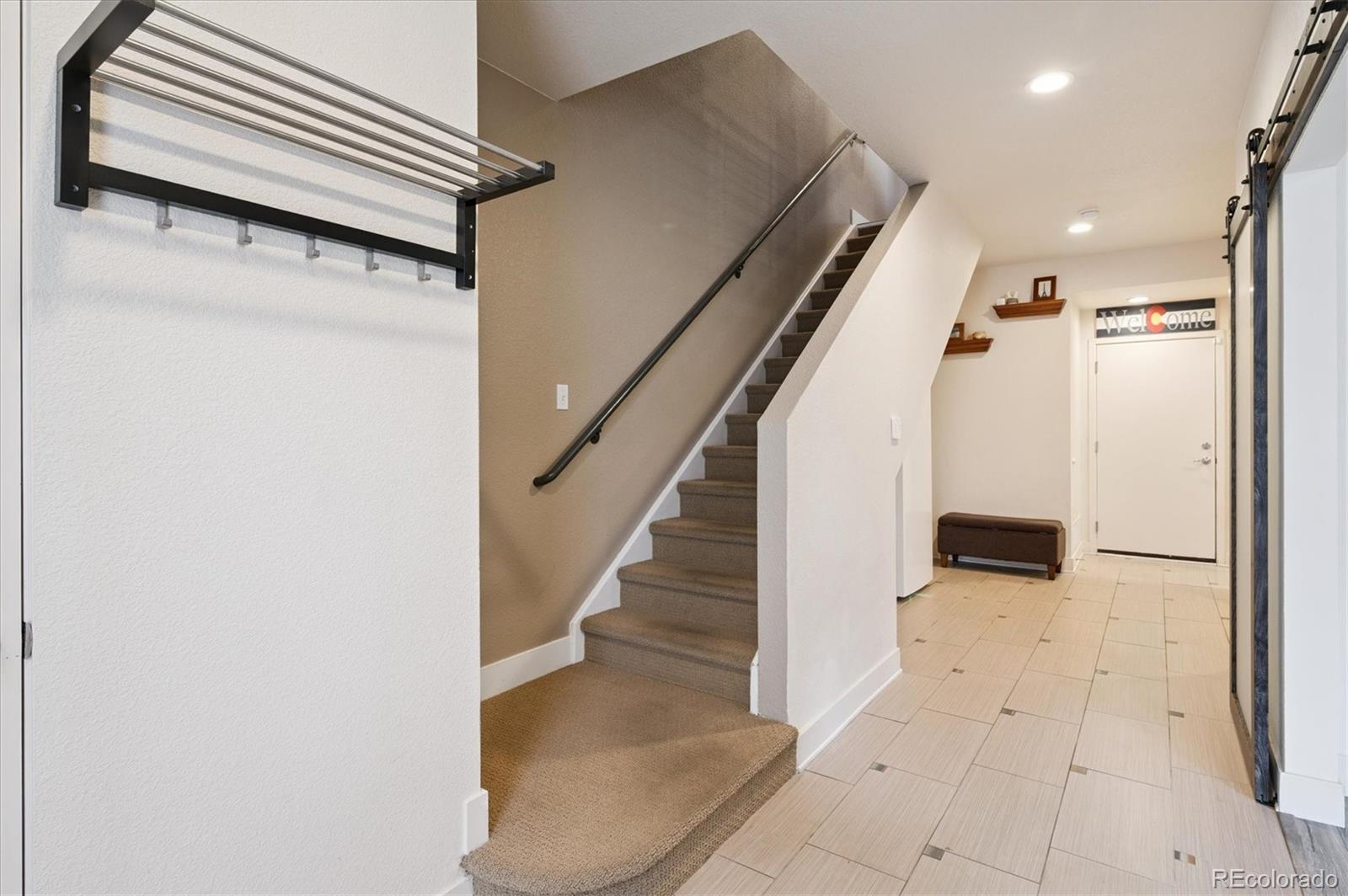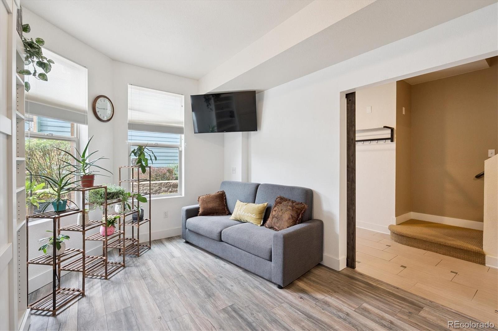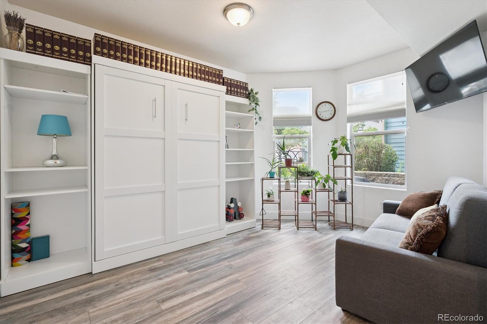 Welcome home to this beautifully maintained 3 Bedroom, 3 Bathroom, Iliff Place Townhouse offering 1,922 SF of versatile living space and modern comfort. A charming private front porch sets the tone as you step into the inviting lower level featuring a private Bedroom with stylish barn door entry, built-in/custom Murphy bed and an adjacent Full Bathroom—ideal for a guest retreat or teen suite. The Laundry Room includes a washer and dryer plus built-in cabinetry for added storage while the Mud Room provides practical access to the 2-Car Attached Garage. Upstairs, soaring vaulted ceilings and updated flooring enhance the spacious and open main living area. The bright and airy Living Room features a cozy fireplace, upper electronic window coverings and access to a private balcony—perfect for morning coffee or evening relaxation. The adjacent Dining Room flows seamlessly into the well-appointed Kitchen complete with island with breakfast bar seating, pantry and stainless steel appliances. A second Full Bathroom and a generously sized Bedroom outfitted with walk-in closet and custom built-in complete this level. The private Primary Suite showcases a ceiling fan, walk-in closet and en-suite 3/4 Bathroom boasting double vanity, designer tile plus a cozy sitting area within the suite offers the perfect nook for a home office or reading retreat. Conveniently located with easy access to I-225, DIA, DTC, Cherry Creek State Park, shopping, dining, and more—this home combines style, space and everyday livability in one perfect package. Don't miss this opportunity! Use our preferred lender, and your buyers will receive up to 1% of the loan amount in lender credits up to 5K! (Excluding down payment and assistance loan programs)
