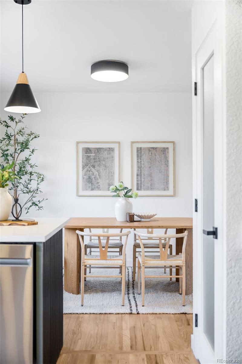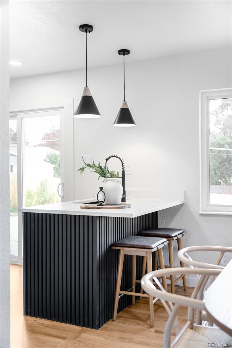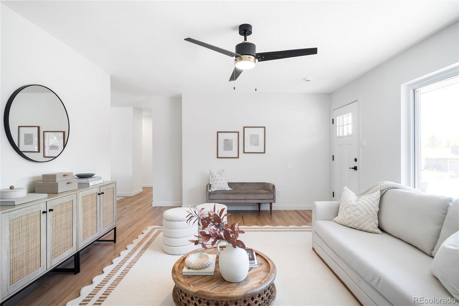 Beautifully reimagined from top to bottom, this Harvey Park residence offers the perfect fusion of timeless comfort and modern efficiency. Bathed in natural light through large west-facing windows with mountain views, the interior showcases a thoughtful full renovation — from all major systems, including new A/C, furnace and water heater, to a refreshed kitchen and baths. The main level features a spacious living room with a wide picture window, a sun-filled dining area and a sleek kitchen with stainless steel appliances and a peninsula with seating. The primary suite impresses with a double vanity and walk-in shower, while the finished basement adds a versatile rec room, large laundry area and ample storage space. Set on a generous lot with fresh sod, a front yard with xeriscaping, a new driveway with concrete and stone and a detached two-car garage, this home offers effortless Colorado living. Residents enjoy direct access to bike lanes and transit, all within a central neighborhood. Exterior photos coming soon. Brand new, detached two car garage with EV charger, driveway from front to back, and fresh sod for buyer to enjoy.