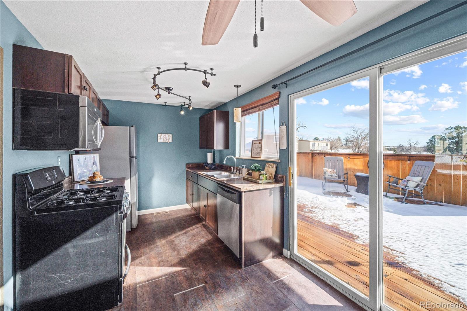 Charming & Contemporary in Colorado City... Don’t let the snow fool you—here in Colorado City, it’s here today, gone tomorrow! Nestled in the foothills with views of Greenhorn Peak, Pikes Peak, and the Spanish Peaks, this remodeled 3-bed, 2-bath home offers 1,520 sq. ft. plus a bonus room. Let the cozy high efficiency woodstove provide not only ambiance, but plenty of heat as well. The master suite boasts more than enough room for an office, a sitting room or both. What's more? a private balcony for year-round sunsets, morning coffee and evening stargazing with a fine wine. Features include a new roof, 2-car garage, and expansive entertainment deck. Two extra lots with RV hookups, crushed asphalt driveway, and custom steps are included. Located in “The Village,” minutes from Pueblo and Colorado Springs, Lake Beckwith, and San Isabel National Forest nearby. Adding to the outdoor recreation paradise is a 3-field baseball and football/soccer field complex! Small highly performance-rated schools combine with huge views in the lovely Greenhorn Valley. It is truly a family-friendly neighborhood with sidewalks on both the main circle and every culd-e-sac! Friendly neighbors abound -- both 2 and 4 legged varieties! Must SEE to BELIEVE! Offered at $389,000—schedule your personal tour today!
