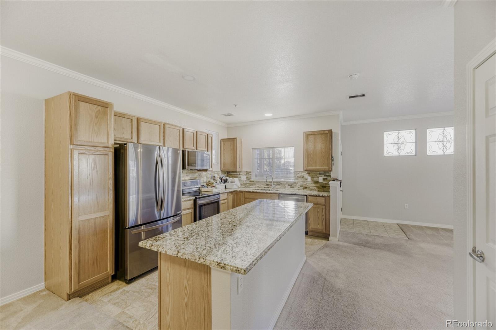 Wonderful opportunity to own a well thought out and appointed condo in the desirable Parker area. This 3 bedroom 2 bath home boasts matching appliances, and updated floorplan and ground floor entry for easy accessibility. Updates include a fireplace mounted microwave, crown molding, hot water heater, granite counters, backsplash, 2 sinks in the primary 5 piece bathroom and more. Just a few short mins walk away from several parks, surrounded by trails, and close to shopping, transit and schools, this could be the one. Ample street parking in addition to a dedicated space. All this, plus the access to the many amenities Stonegate has to offer make this one worth a look.