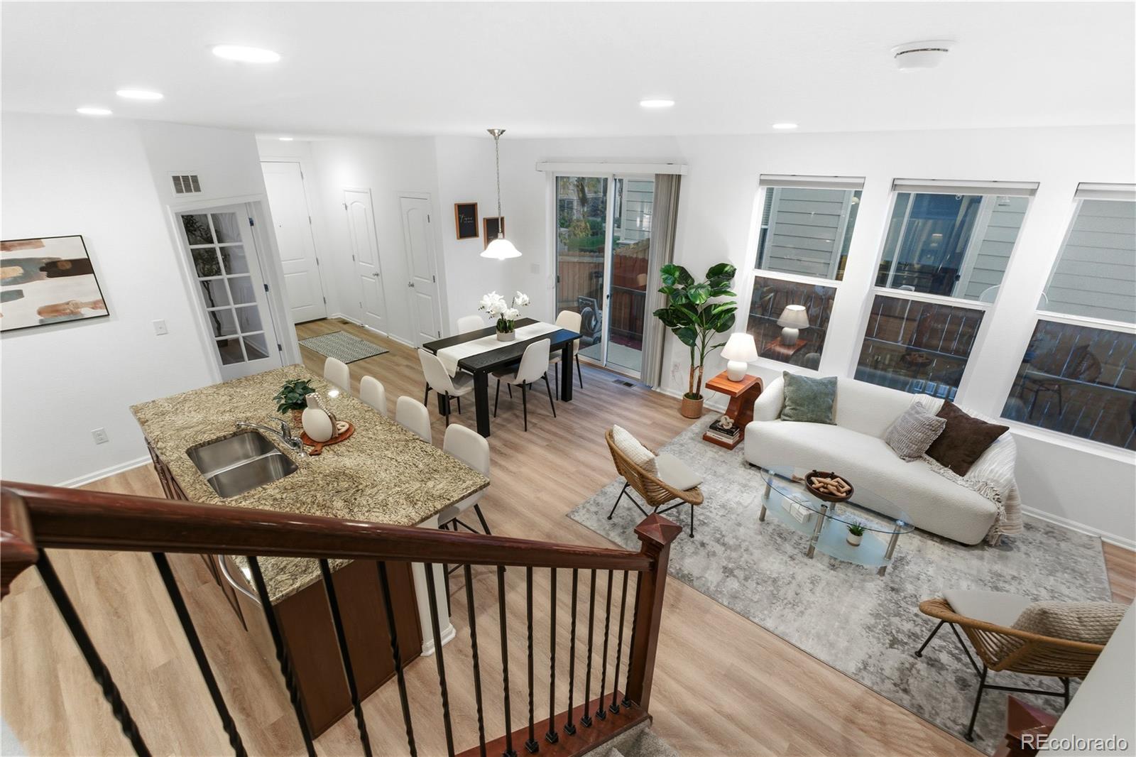 Welcome home to this beautifully updated Townhome in an unbeatable Denver location! Enjoy easy access to the High Line Canal Trail, Cherry Creek, and Lowry—perfect for walking, biking, shopping, and dining. The newly renovated Cheyenne Arapaho Park featuring a community garden fenced dog park, awesome playground and large green space, is within walking distance! Inside, you’ll love the open-concept kitchen featuring granite countertops, a large island, and all stainless-steel appliances. Sliding glass doors lead to a fenced-in deck and a main floor office (or playroom or formal dining room!) with elegant French doors provides the perfect work-from-home or flex space. At the top of the stairs you'll find a versatile loft—great for a play area, library, or media room. Fresh interior paint and brand new flooring throughout make this home move-in ready. The unfinished basement offers endless possibilities for your design or extra storage. Low HOA fees add to the appeal, and the home qualifies for **$17,500 in grant money** toward down payment and closing costs (with preferred lender and household income under $210,000). Don’t miss this incredible opportunity for affordable living in a prime location with Cherry Creek schools!