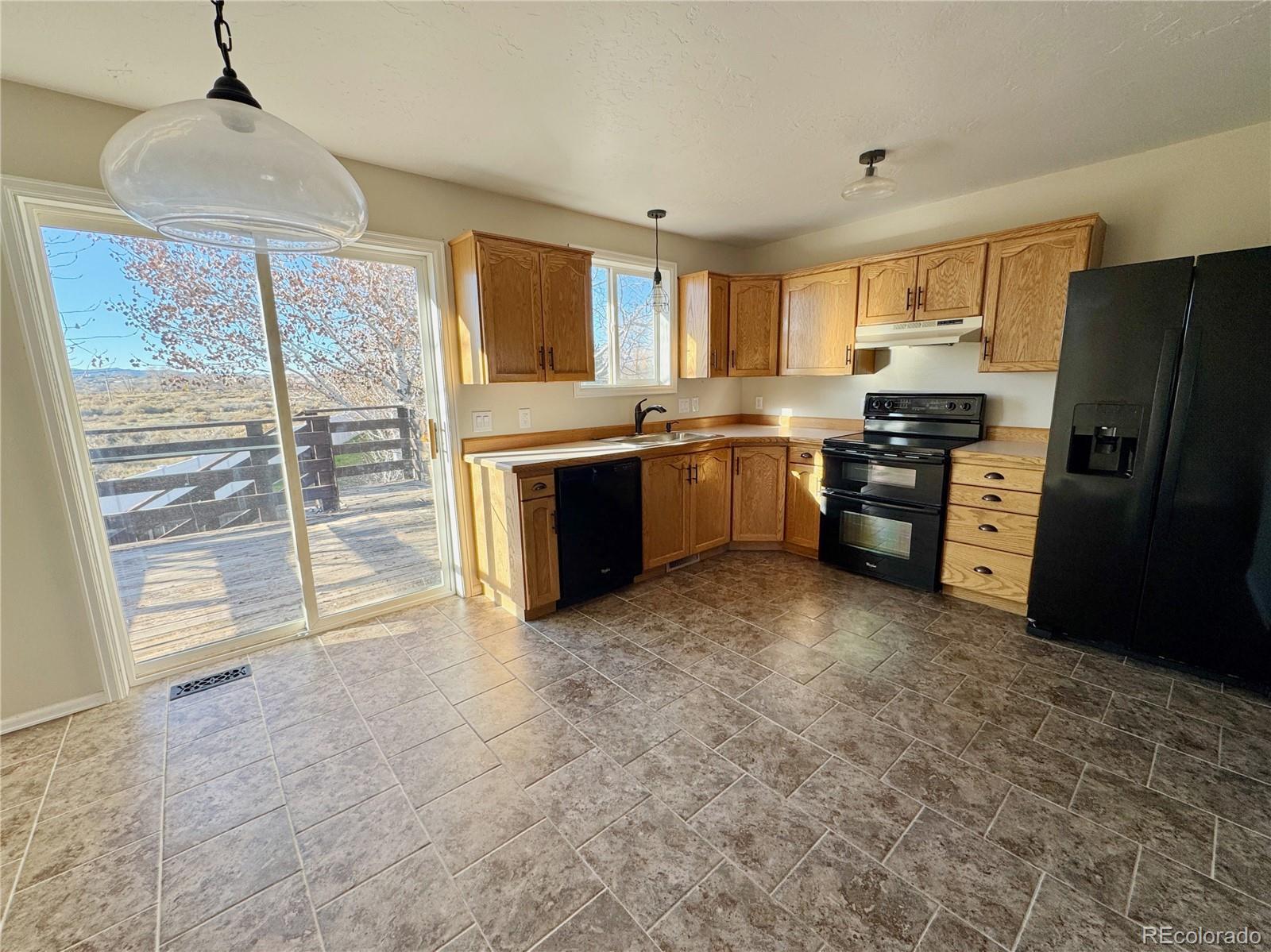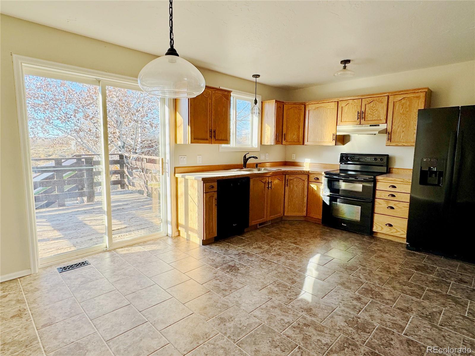 This inviting 4-bedroom, 2-bath bi-level home offers comfort and outdoor enjoyment. Situated on a spacious corner lot, the property features an attached 2-car garage and a welcoming layout ideal for everyday living. Upstairs, the bright and open kitchen and dining area offer easy access to a private deck—perfect for morning coffee, grilling, or entertaining outdoors. The lower level provides additional living space, giving you flexibility for a family room, home office, or guest quarters. The fully privacy-fenced backyard is a true retreat, complete with mature aspen trees, a cozy firepit area, and room to play, relax, or garden. Central air keeps the home comfortable year-round, and the overall setting blends convenience with a touch of Colorado charm.