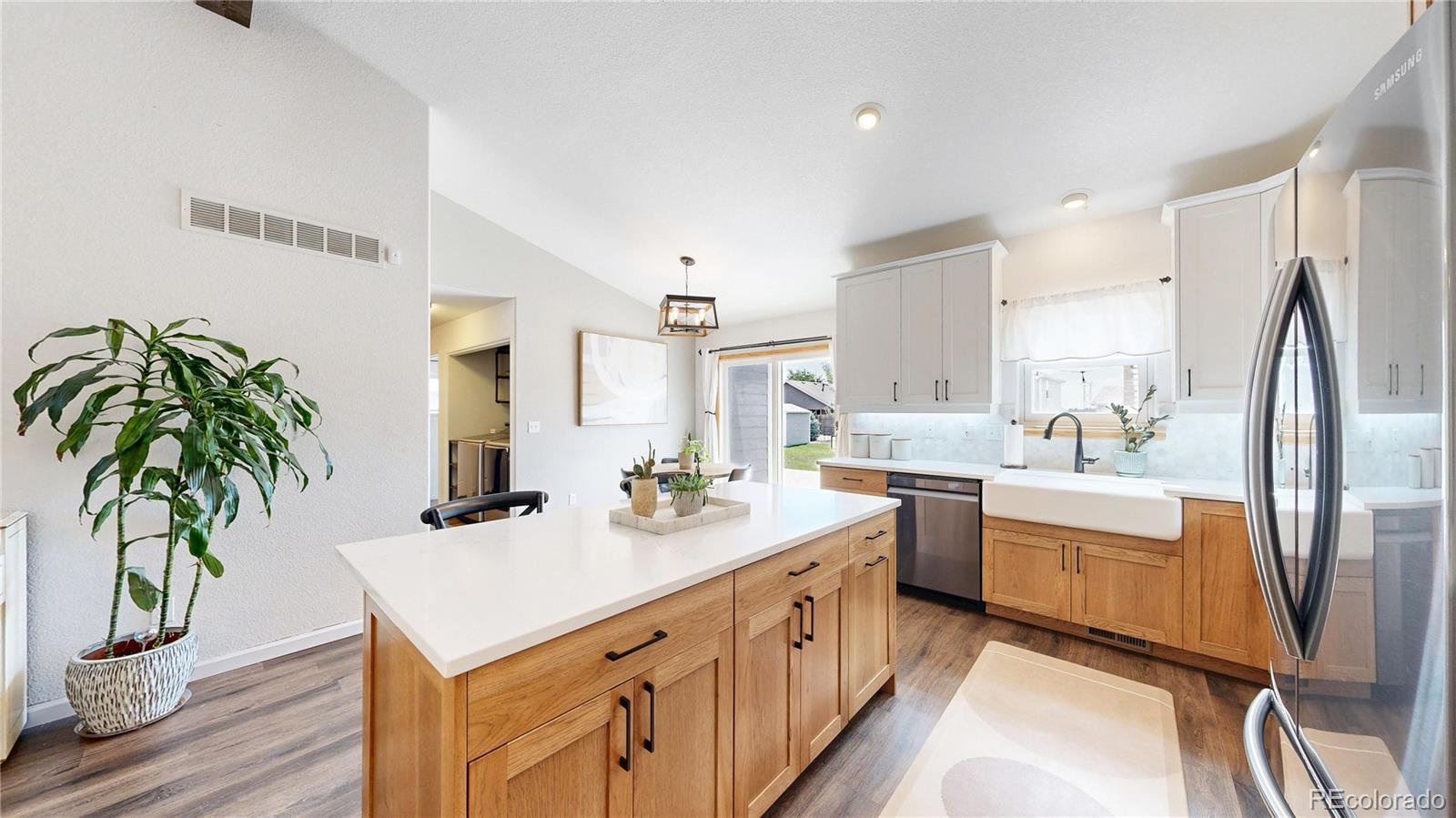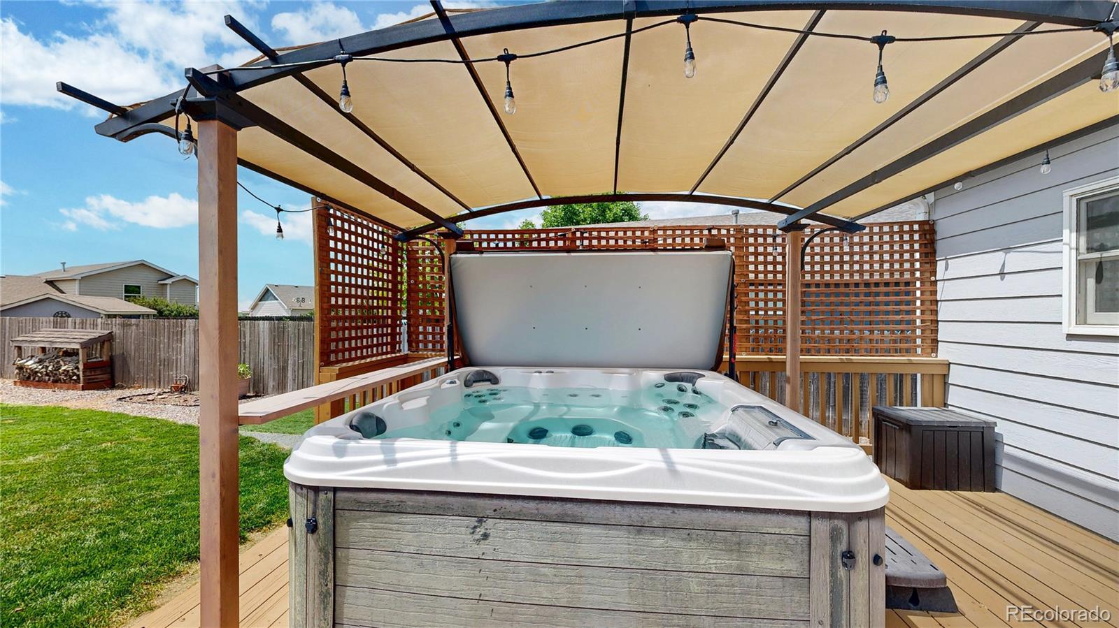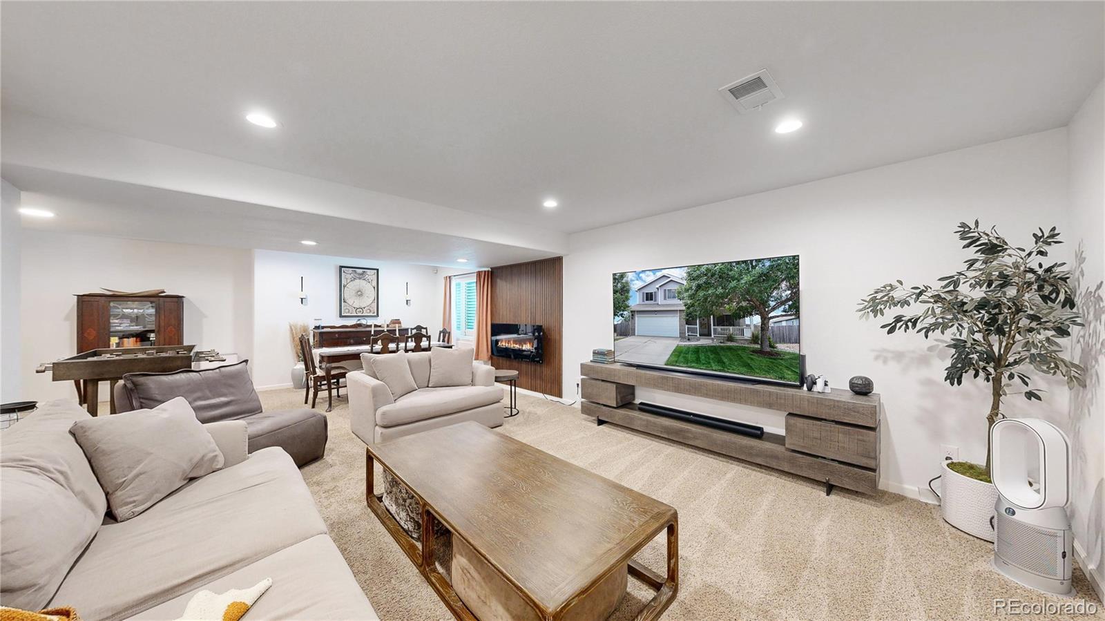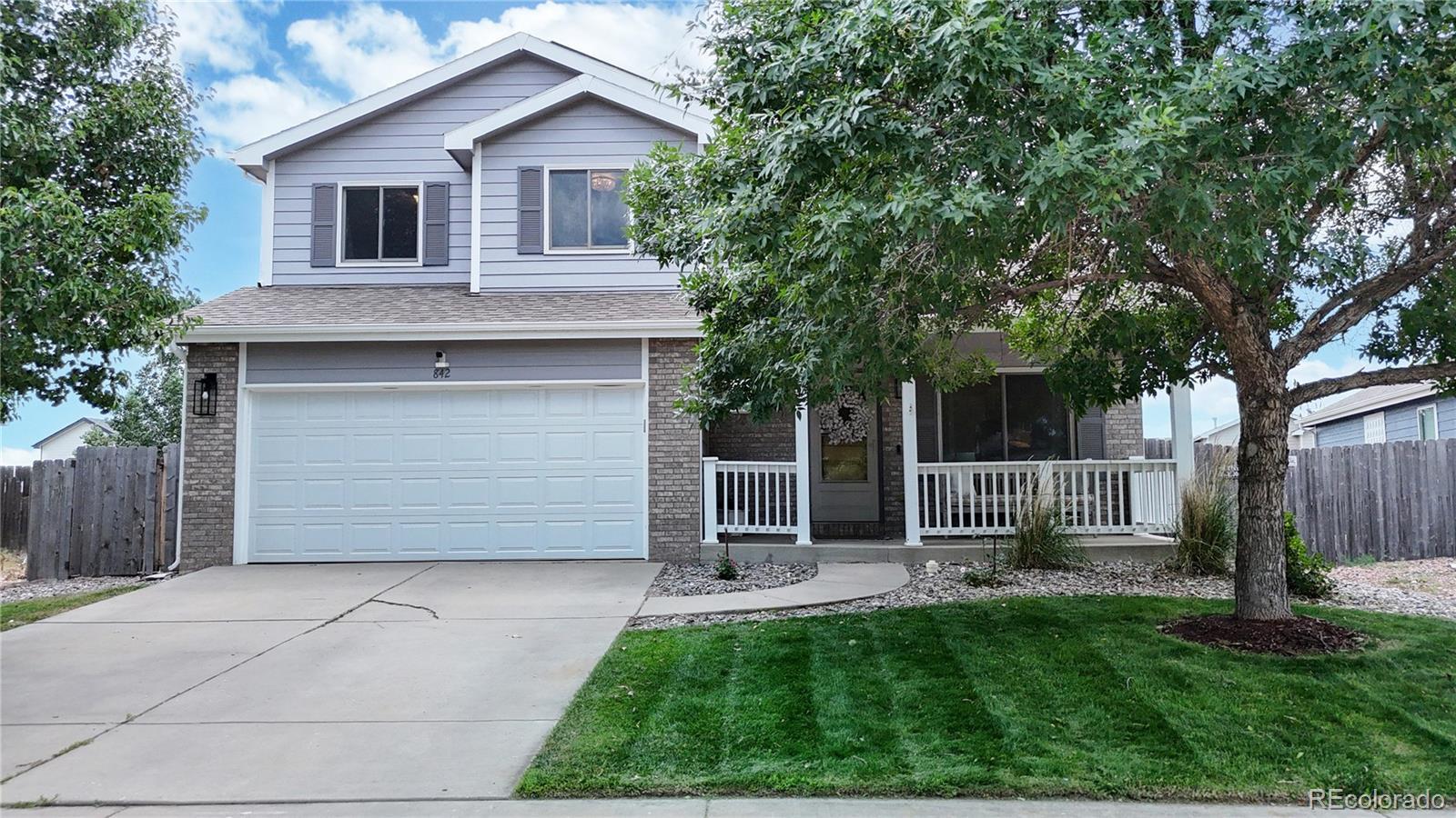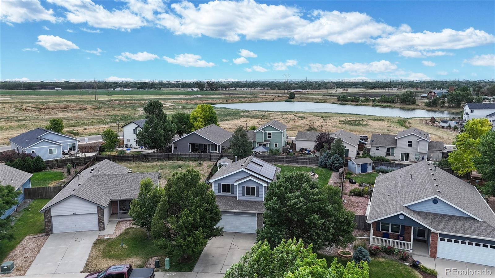Nestled on one of the largest lots in the neighborhood, this stunning two-story home offers an inviting blend of comfort and modern updating. As you step inside, you're greeted by beamed ceilings, an open-concept floorplan, and a main floor primary suite that create an atmosphere of warmth and sophistication. The luxury vinyl flooring flows seamlessly throughout the main level, providing both durability and elegance. The heart of the home is the chef's kitchen featuring a large farmhouse sink, gas cooktop, generous cabinet space, and an expansive island that is perfect for gatherings and entertaining. The main-floor primary suite provides a private retreat, complete with ample natural light and an ensuite bath designed for relaxation. Venture upstairs to discover a loft area and two secondary bedrooms and full hall bath. The finished basement is truly a highlight, boasting a massive recreation area that comes alive with an electric fireplace and custom wood wall paneling. The wet bar, complete with a kegerator, ensures you're ready to host friends and family for game or movie night. The true showstopper is the backyard oasis where unwinding and entertainment seamlessly intertwine. The spacious deck beckons for al fresco dining, while the hot tub invites you to soak under the stars. Gather around the fire pit with loved ones to share stories and create memories. A new roof, new HVAC, Renewal by Andersen windows, upgraded sprinkler system, fully paid solar system, and Level II vehicle charger complete the package. With no metro district and conveniently close to parks, Milliken Waterworks Pool, and other amenities, this home offers the best of both worlds: the vibrancy of nearby attractions and the peace of a quiet neighborhood. It's all here!