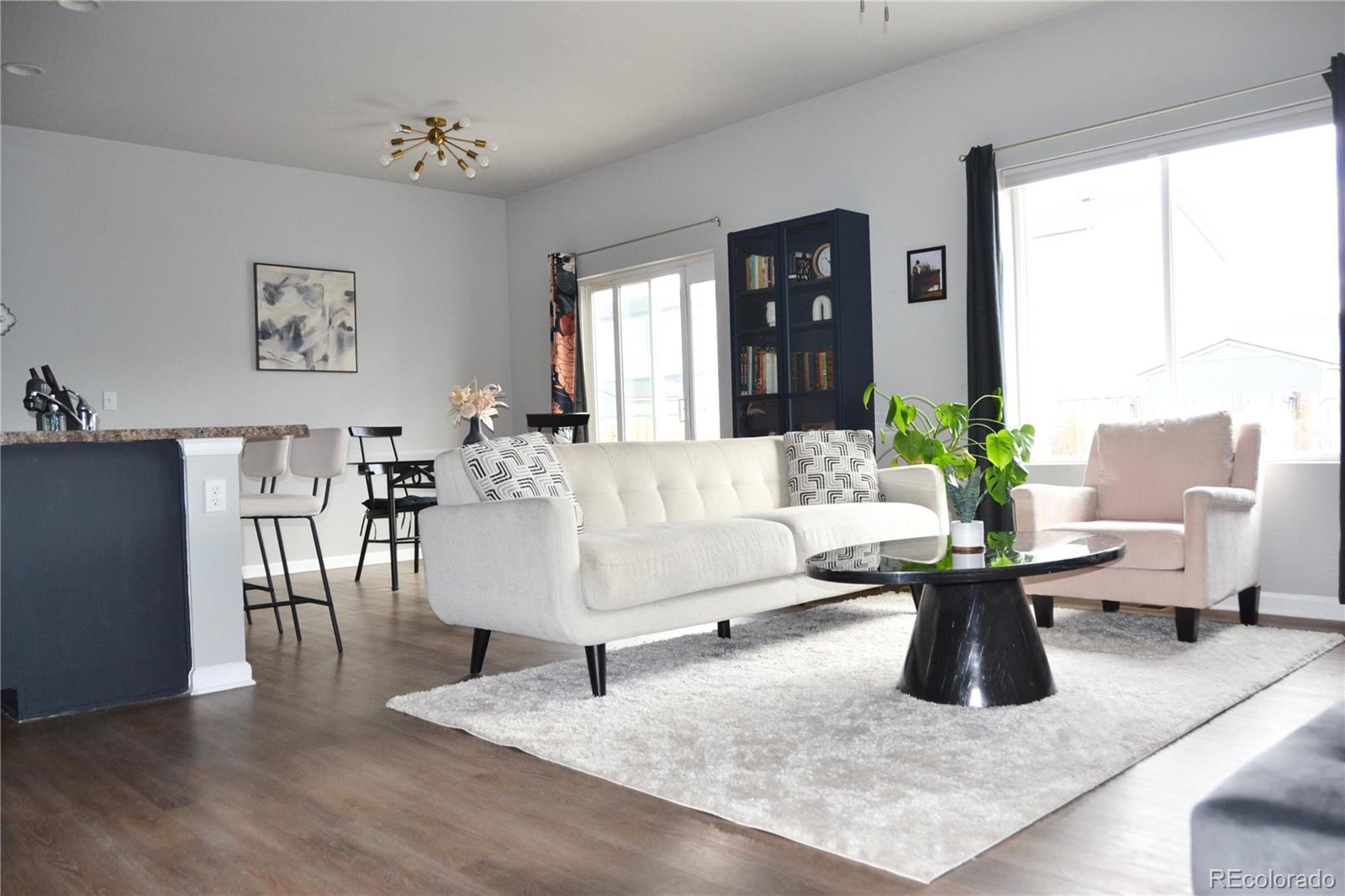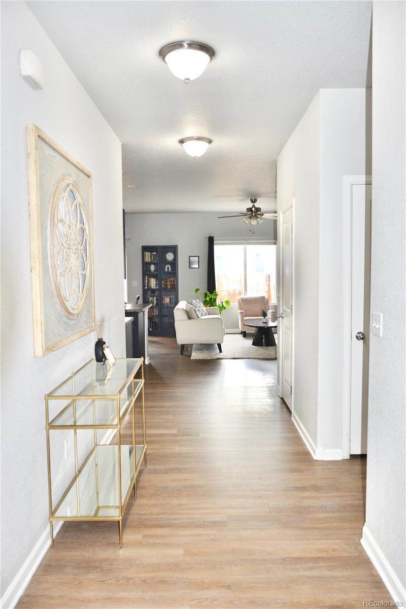 Discover this beautifully finished home in the sought-after Autumn Valley Ranch community! The light-filled interior features new vinyl flooring, an open-concept living area, and a kitchen with newer countertops, high-end appliances, wood cabinetry, and a spacious island. Two front bedrooms with fresh carpet share a full bath, while the private primary suite offers an upgraded vanity, walk-in shower, and generous closet. Enjoy seamless indoor-outdoor living with a dining area that opens to the patio, plus a fully fenced backyard and new dog run. Conveniently located near shopping, dining, parks, and I-25 for an easy commute to Denver, Boulder, or Fort Collins.