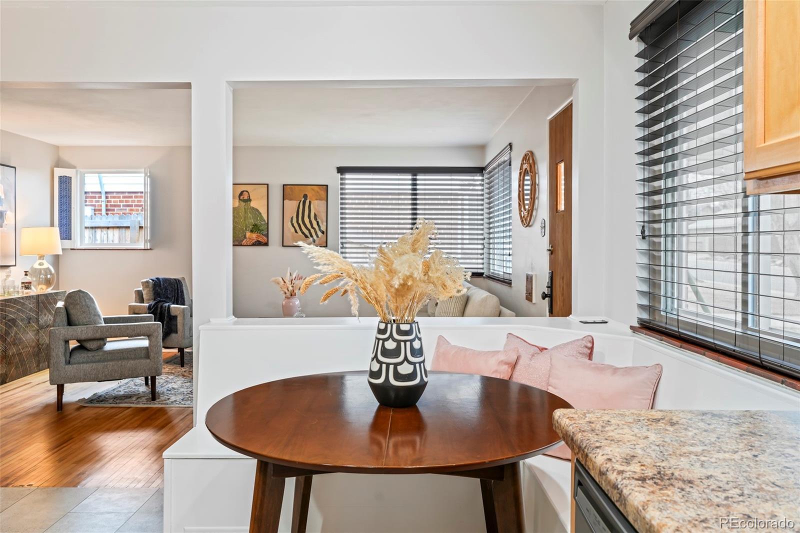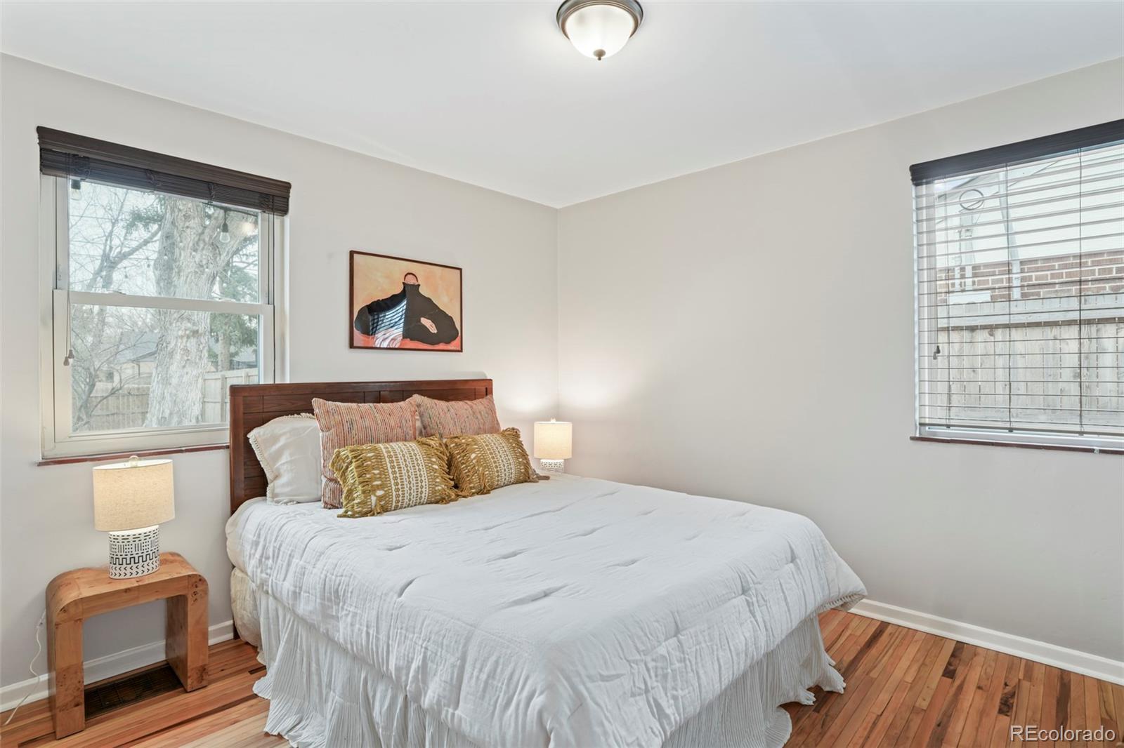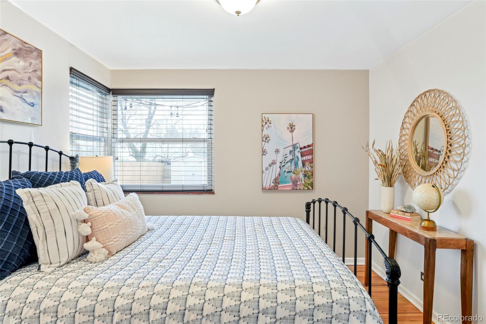 A coveted location takes center stage at this inviting Mayfair residence, where classic charm meets thoughtful updates. Ideally set on a quiet street, this brick home balances everyday convenience with timeless appeal. Inside, refinished original hardwood floors anchor the main level, complemented by fresh interior paint and recent exterior improvements, including a newer roof, gutters and downspouts. The flexible floorplan continues downstairs with a spacious rec room that easily adapts as a home office or additional bedroom. A nonconforming basement bedroom includes a queen-size Murphy bed. Outside, a beautifully landscaped backyard creates a private setting for entertaining or relaxing. A new washer and dryer set is included for added ease. An attached one-car garage and an extra-wide driveway offer rare off-street parking for two additional vehicles. Residents enjoy a prime location just moments from shops, restaurants, parks, 9+CO, Trader Joe’s and an effortless commute to downtown.