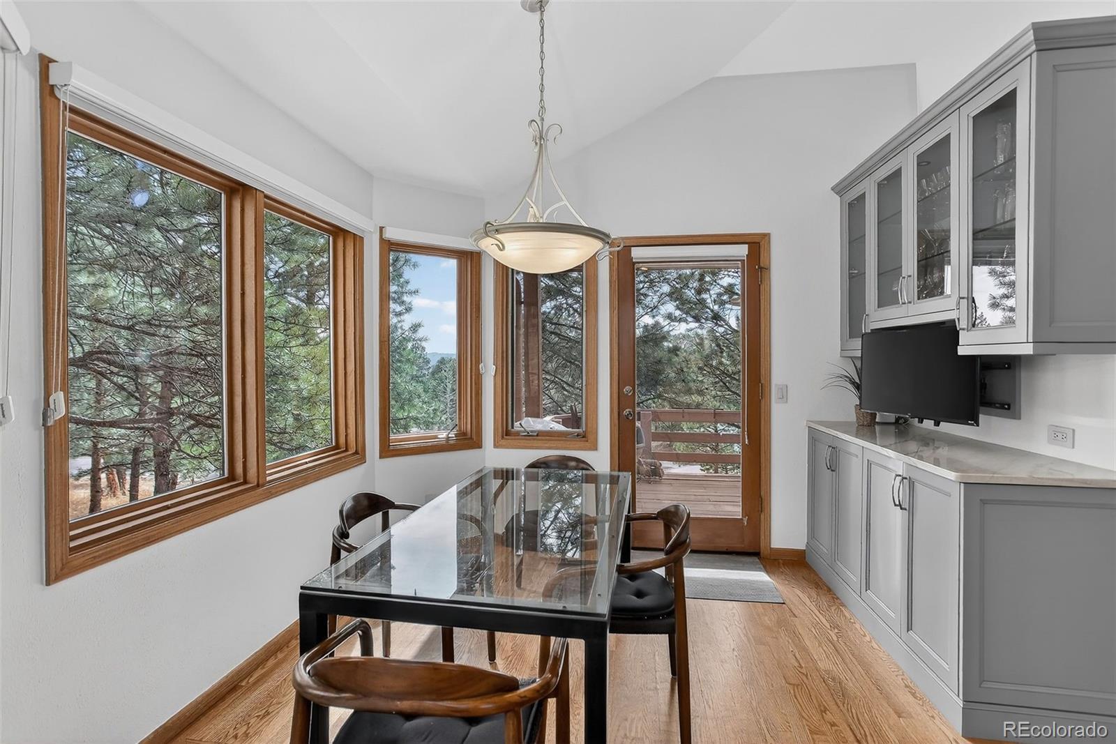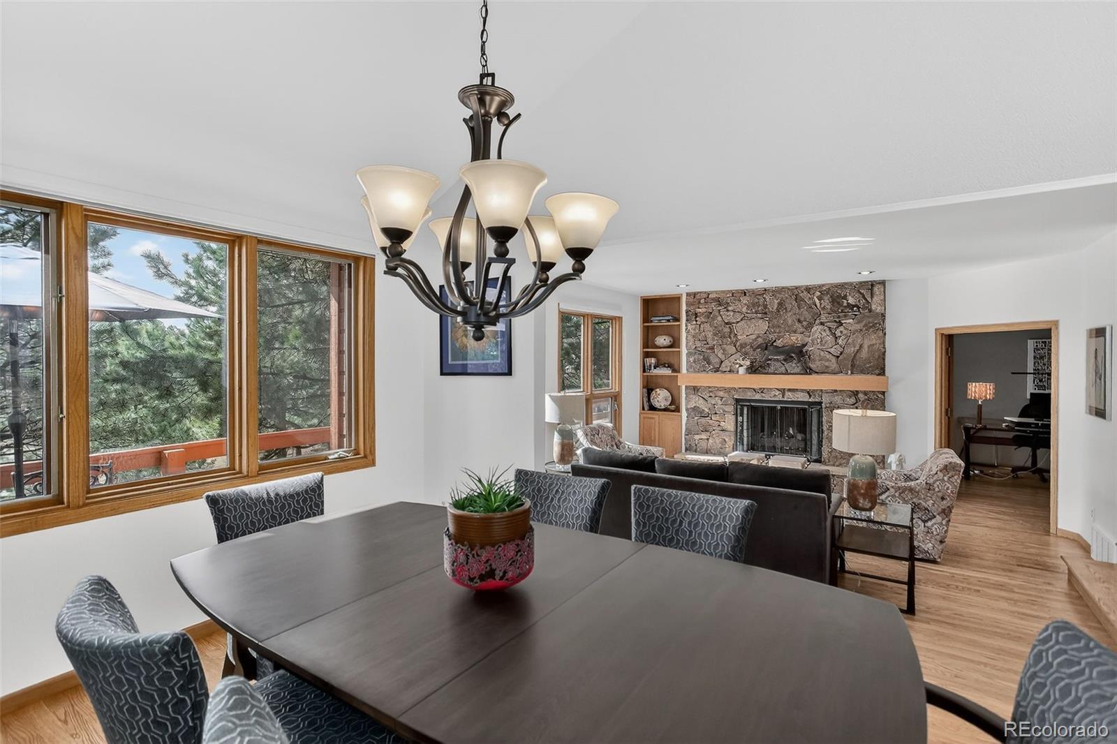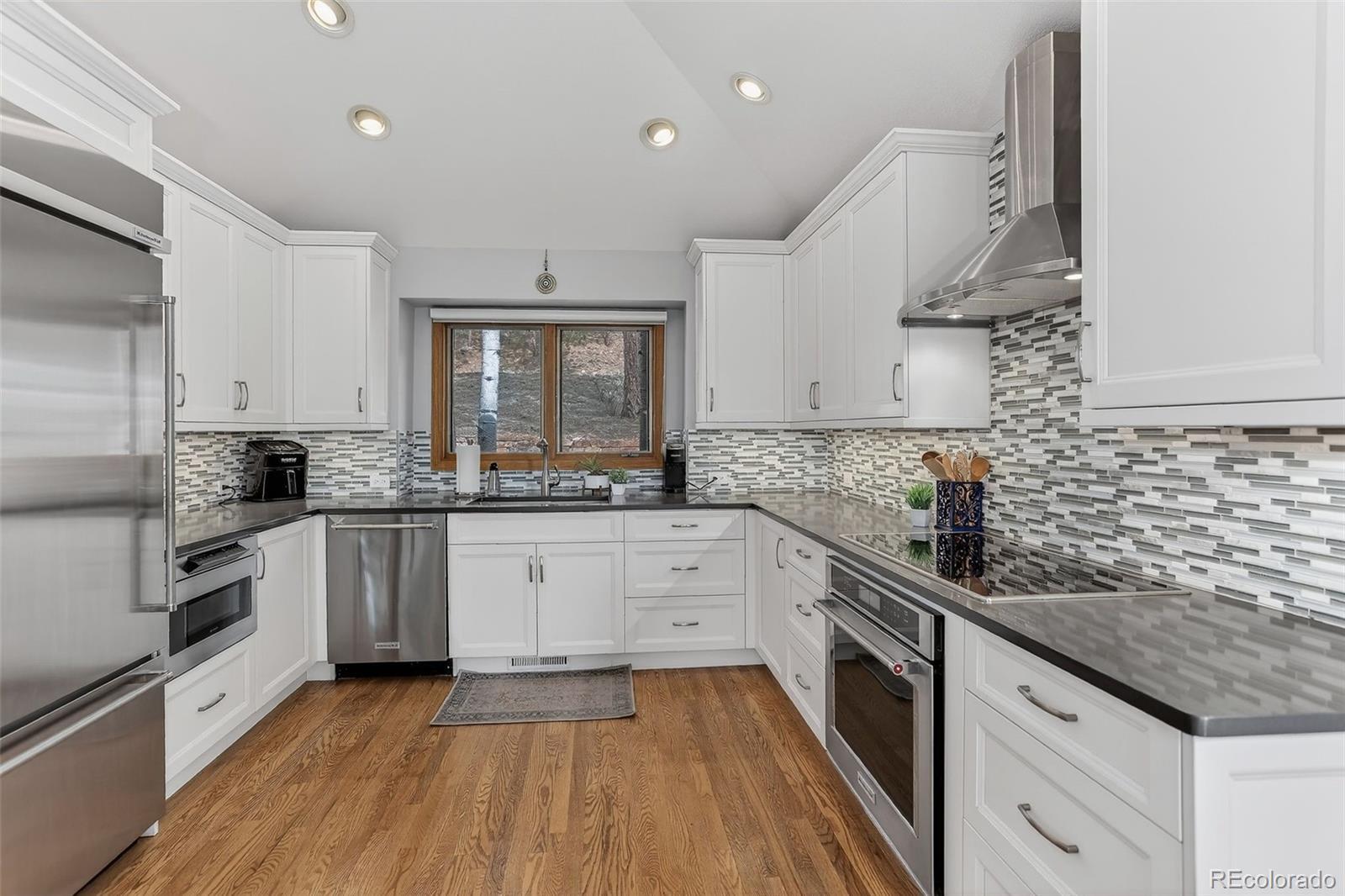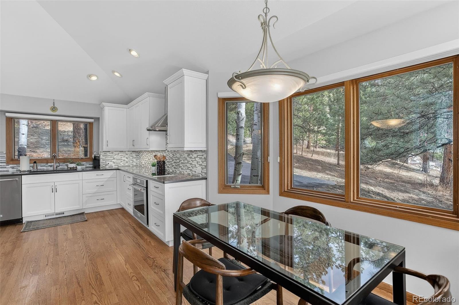 Designed for both comfort and style, this extensively renovated Genesee home offers thoughtfully planned living spaces inside and out. Perfectly nestled in the pines on a cul-de-sac that adjoins open space. A sun-drenched Great room is anchored by an impressive stone surround gas fireplace creating a welcoming focal point for everyday living and entertaining. Glass doors open to the main floor office. The chef worthy kitchen impresses with sleek quartz counters, stainless appliances, induction cooktop and the perfect eating space for casual gatherings. A wrap around deck calls for outdoor living. Tucked away on its own private level, the primary suite is a true sanctuary featuring a newly renovated spa-inspired bath and hardwood flooring. The lower walk-out level offers a comfortable family room with direct access to the inviting flagstone patio. A spacious bedroom adjoins with an ensuite bath. Two additional bedrooms and a full bath complete the well-designed floor plan. Xfinity internet. Natures at your doorstep!