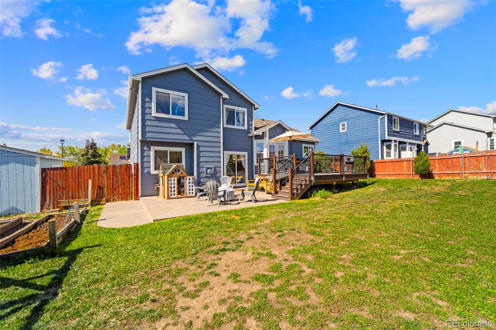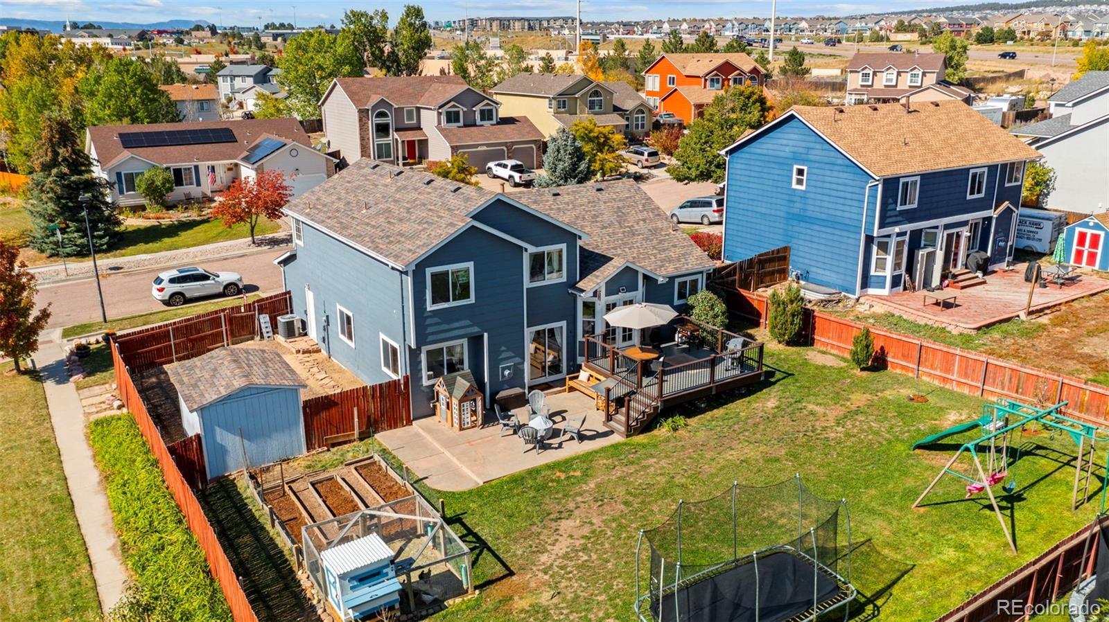\Located in the highly desirable District 20, this beautifully maintained home sits on a spacious corner lot and offers the perfect blend of style, comfort, and functionality. Thoughtfully updated and move-in ready, this 4-bedroom, 4-bathroom home welcomes you with vaulted ceilings and real hardwood floors throughout the main level, creating an inviting and open atmosphere the moment you step inside. The bright and airy living room flows effortlessly into the dining area, ideal for both everyday living and entertaining guests. The kitchen features ample cabinet space, stainless steel appliances, and elegant double French doors that open to the backyard, perfect for indoor-outdoor living. Step down to the lower level where you’ll find a cozy second living area with a fireplace, offering the ideal spot to relax or gather with loved ones. A private office space on this level makes working from home both comfortable and convenient. The finished basement adds even more versatility, featuring an additional bedroom, bathroom, and a stylish wet bar, perfect for guests or a game room setup. Upstairs, the spacious primary suite provides a retreat, complete with a 5-piece bathroom and generous closet space. Two additional bedrooms and a full bath complete the upper level, offering plenty of room for family or guests. Outside, the large, fully fenced backyard is designed for gatherings and relaxation. The updated deck provides an ideal space for summer barbecues, morning coffee, or peaceful evenings under the stars. Located just 10 minutes from The Promenade Shops at Briargate and minutes from Powers Blvd, this home offers convenient access to schools, restaurants, and shopping. Experience the perfect balance of comfort, convenience, and modern living, all in one beautiful, move-in-ready home. Schedule your private tour today!