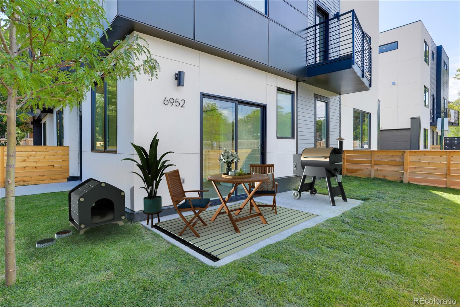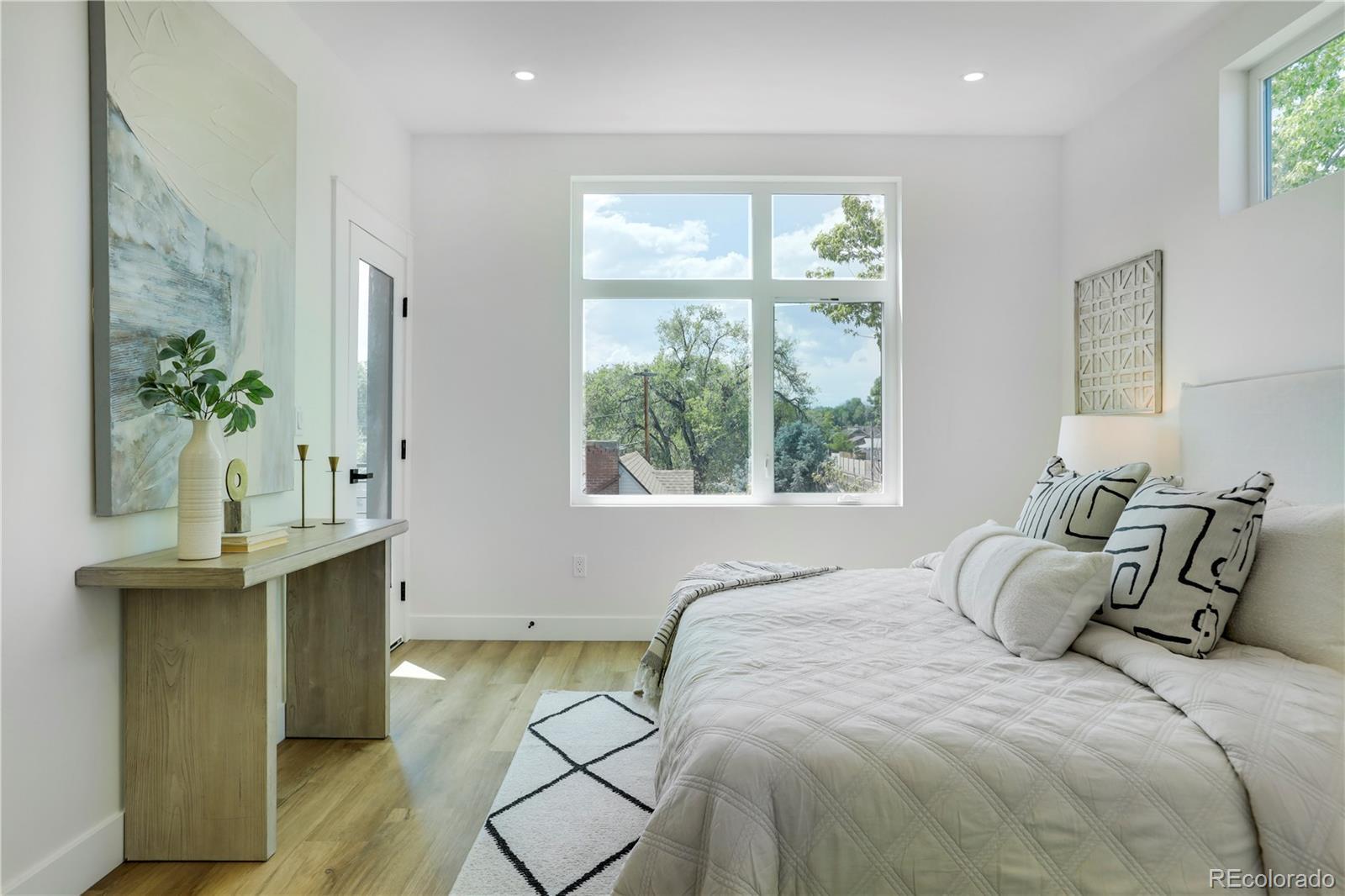 This new END UNIT townhome minutes from Sloans Lake and Downtown Denver features 3 bedrooms and 3 full bathrooms, a spacious fenced in private yard for your furry friends, Large 1 car attached garage with room for storage, 1 car private parking spot adjacent to the unit that can fit a Pick up truck, multiple balconies, and no carpet in sight! Enter through your private yard or attached garage to the lower level with a foyer, bedroom, and full bath. Head upstairs to the main level where you will find a chefs kitchen featuring a gas range, massive eat in quartz island that will comfortably seat four, and a walk in pantry with incredible storage for all your snacks and kitchen accessories. There is easy access to your balcony off the kitchen with a convenient gas hookup for all your grilling needs. Customize the main level to suit your vision with plenty of room for different dining and entertaining arrangements. Upstairs you will find two bedrooms and two full bathrooms. The spacious primary suite has its own balcony, sizable walk in closet, and beautiful primary bath with an oversized shower, toilet closet, and double vanity. Schedule a showing today! We have black and white finishes available. Photos may be of similar unit in same complex.