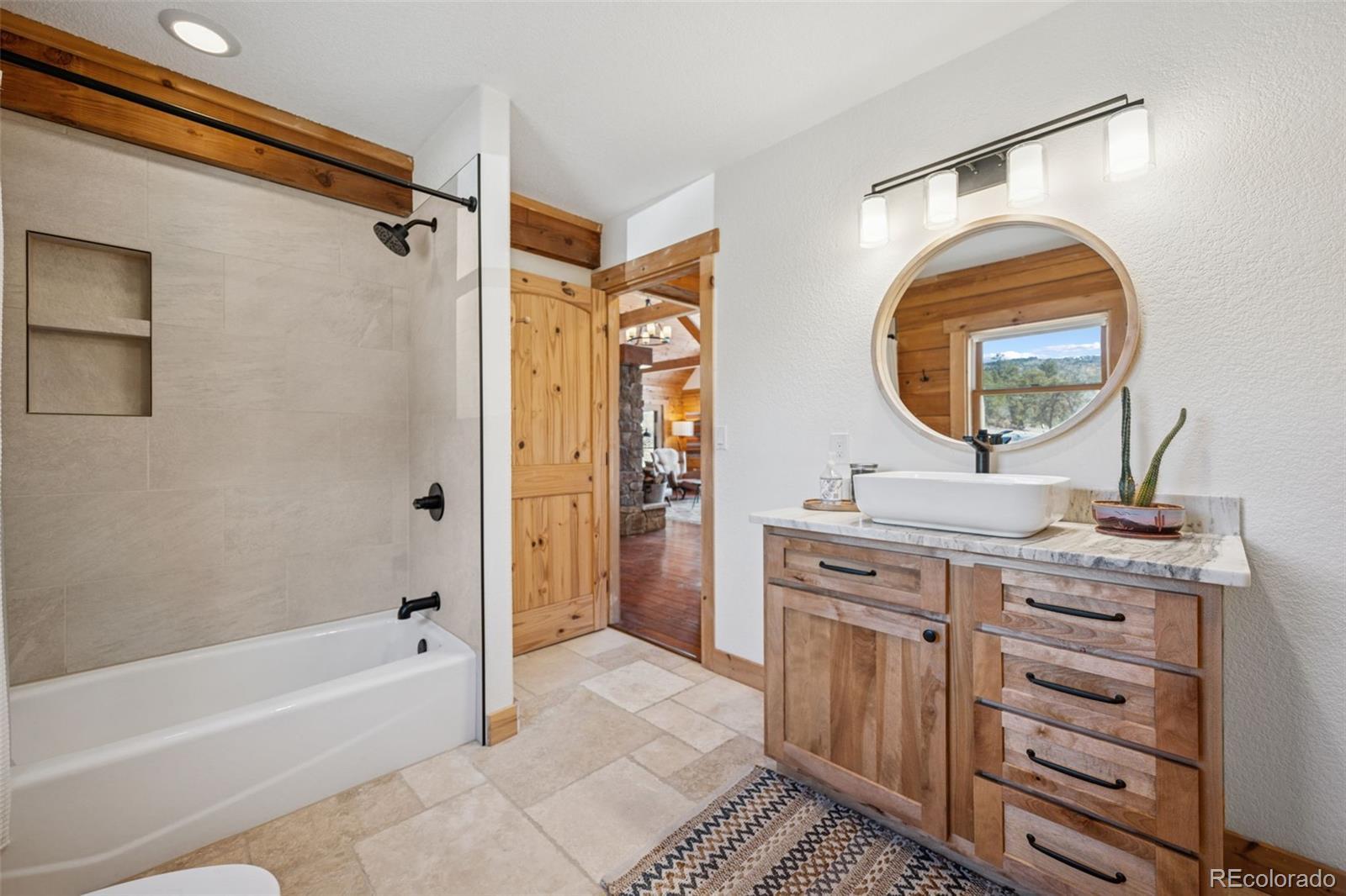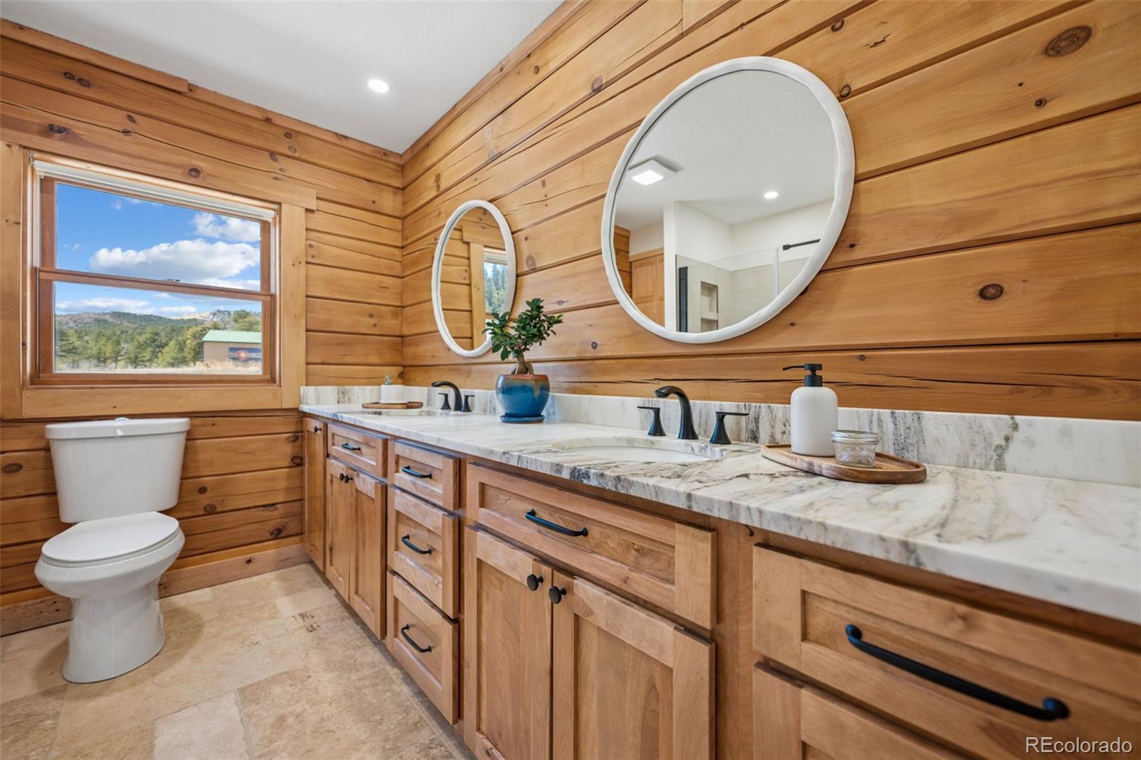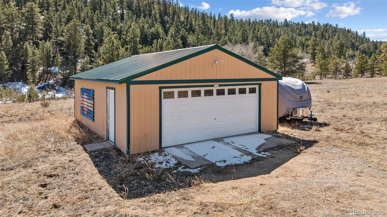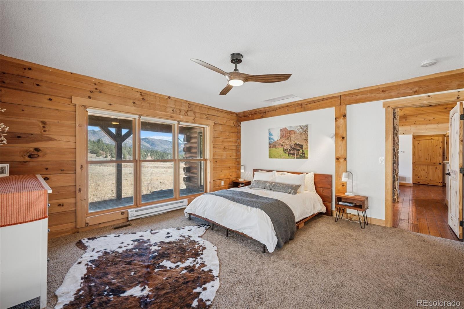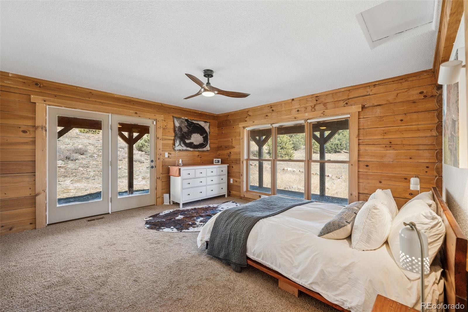 Modern Log Home on 35 Acres with Unmatched Views & Privacy. Nestled within a gated mountain subdivision, this modern log home offers the perfect blend of rustic charm and contemporary comfort—all set on an expansive 35-acre lot with panoramic views of forested mountain peaks and Colorado’s famously blue skies. With private access to thousands of acres of public BLM land, outdoor adventure is just steps away. Crafted with high-quality D-log construction, this home retains classic log cabin appeal while delivering the energy efficiency of modern design. Step inside to a warm, inviting living room with a soaring vaulted ceiling, cozy fireplace, and massive windows that frame awe-inspiring mountain views. The custom kitchen boasts granite countertops, stainless steel sink and appliances, and a spacious walk-in pantry/laundry room. The large primary bedroom suite is a true retreat, complete with a fully remodeled spa-like bathroom featuring a marble double vanity, a luxurious travertine tile shower, heated floors, and a heated towel rack. Guests will enjoy the comfort of the second bedroom with easy access to the beautifully updated main hall bathroom—also finished with travertine tile and marble accents. Recent upgrades include a gas forced air furnace, Cellphone booster, new ceiling fans, window blinds and a whole-house backup generator—ensuring comfort and peace of mind year-round. Step outside to enjoy over 430 sq ft of covered decking, plus an 8x24 rear deck with a motorized awning ideal for morning coffee or evening stargazing. Relax as you listen to wild turkeys in the spring and elk bugling in the fall, right from your deck. The property also features a 24x30 detached garage. Located just minutes from Cañon City and only 1.5 hours from Monarch and Breckenridge ski resorts. The ideal balance of seclusion, convenience, and year-round adventure.