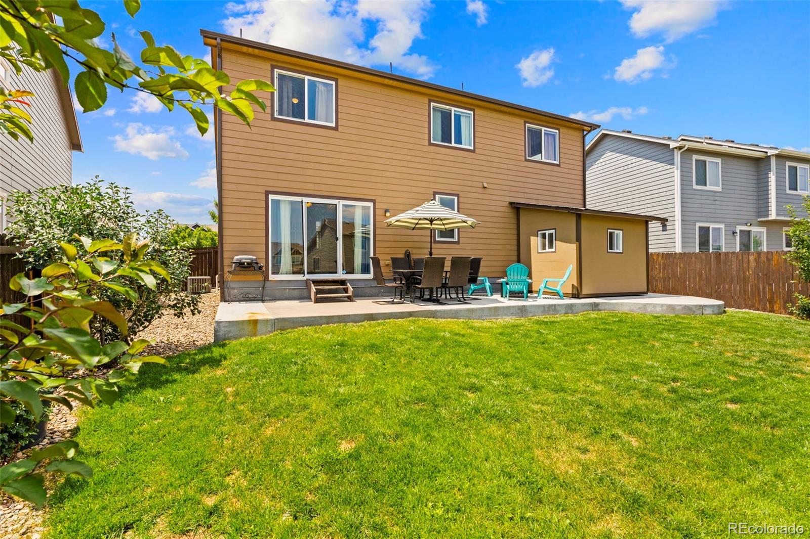 Painted Sky at Waterview | Paid-Off Solar | Spacious 4-Bed Beautiful 4-bedroom, 2.5-bath home with 3-car tandem garage in one of Colorado Springs’s most loved communities. Featuring granite countertops, oak cabinetry, and an open-concept layout filled with natural light. Upstairs offers 3 spacious bedrooms, including a primary suite with double vanities & a walk-in closet, while the 4th bedroom is tucked away in the finished basement—ideal for guests, teens, or a home office. The backyard is built for entertaining with a large custom concrete patio, built-in seating, a fully fenced yard, and a powered “she shed” or workshop. Paid-off solar panels deliver instant energy savings. Quiet, well-kept street close to Fort Carson, Peterson SFB, Widefield Rec Center & Bluestem Prairie Open Space. Zoned for Venetucci Elementary, Watson Junior High & Widefield High. A rare find combining eco-conscious living with everyday comfort.