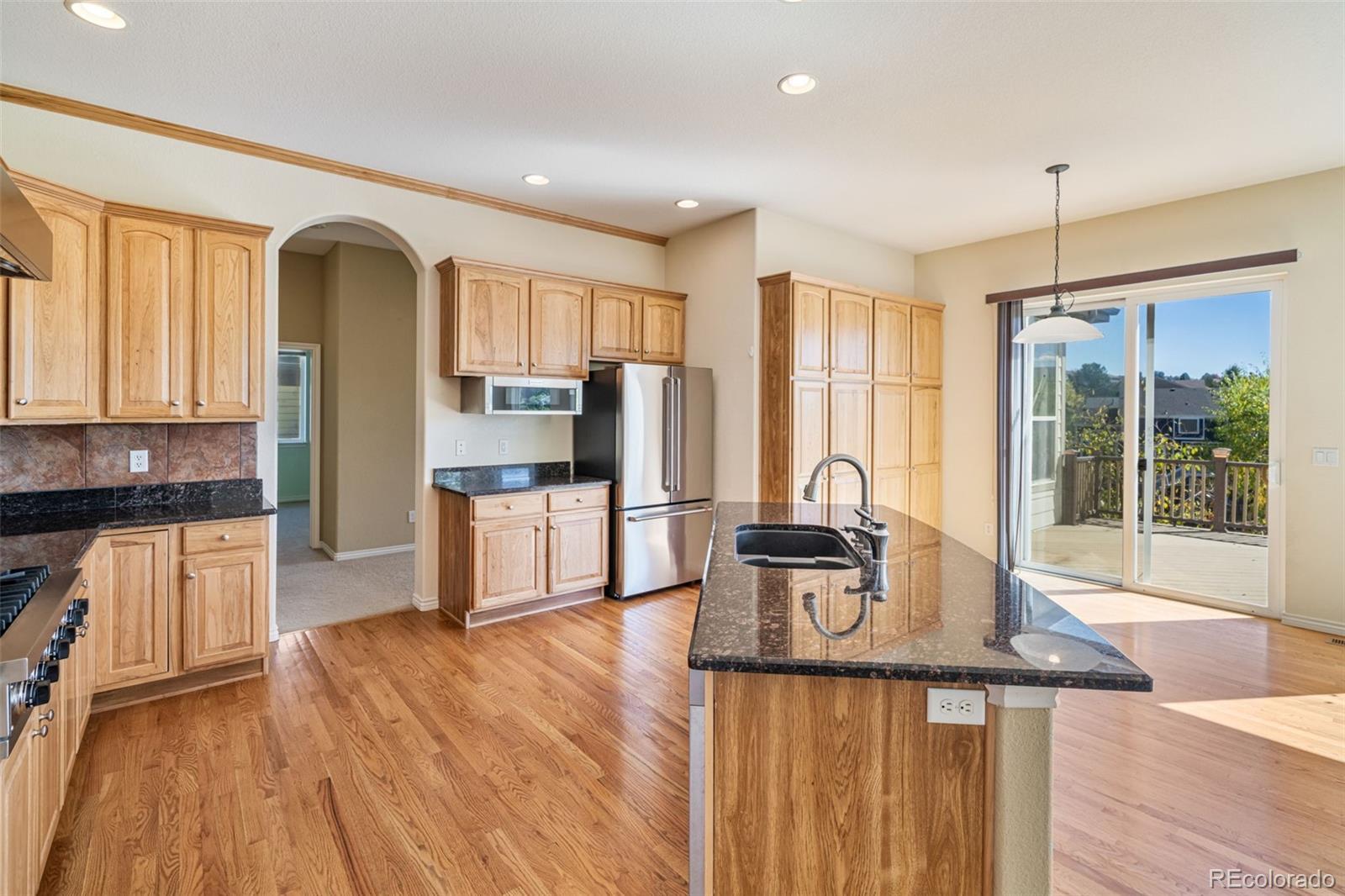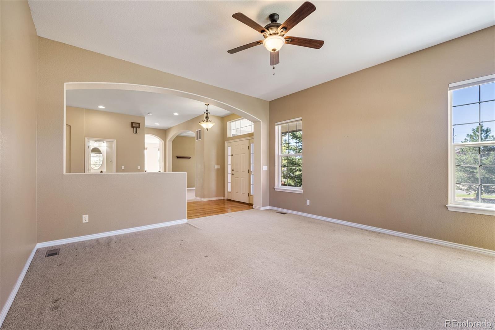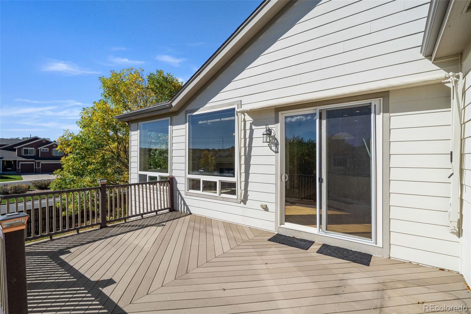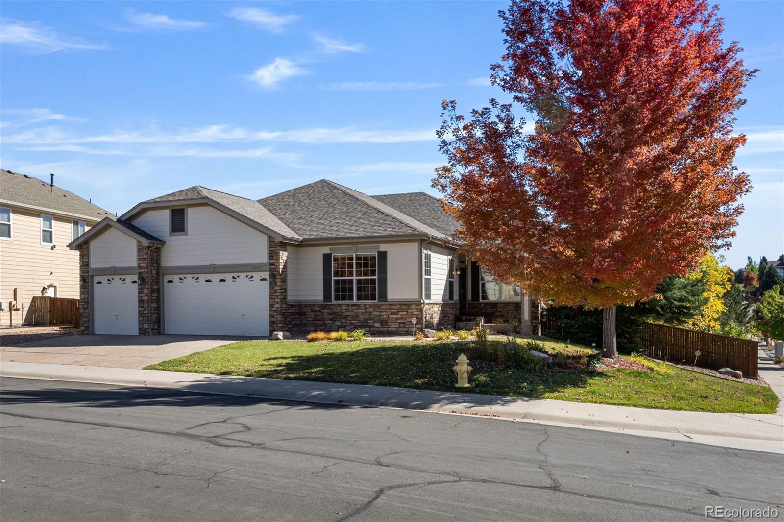 Welcome to this beautifully maintained ranch-style home in Sapphire Pointe, perfectly set on a third acre corner lot backing to open space. Designed for easy main-floor living and entertaining, this home captures Colorado’s best indoor-outdoor lifestyle with miles of trails right out your back door and sweeping meadow views from nearly every window. Inside, you’ll find over 5,200 finished square feet of thoughtfully designed space. The main level features three bedrooms plus a private office, formal living and dining rooms, and a bright, open family room centered around a gas fireplace. The kitchen is a true gathering spot with double ovens, a cooktop, large island, bar seating, and a sunny breakfast nook that opens to a spacious deck—perfect for summer barbecues or quiet morning coffee. The fully finished walk-out basement adds even more versatility with two additional bedrooms, a ¾ bath, a full wet bar, home theater, exercise room, and game area—all leading to a covered patio surrounded by mature landscaping. Recent upgrades include a brand-new roof, updated furnace, and water heater for peace of mind. A three-car attached garage provides plenty of storage for bikes, tools, and Colorado toys. Sapphire Pointe offers resort-style amenities including a pool, clubhouse, playgrounds, tennis courts, and miles of connecting trails. Conveniently located near Founders Parkway and I-25, this home offers quick access to downtown Castle Rock’s restaurants, shops, and award-winning schools, all while maintaining a peaceful, nature-backed setting.