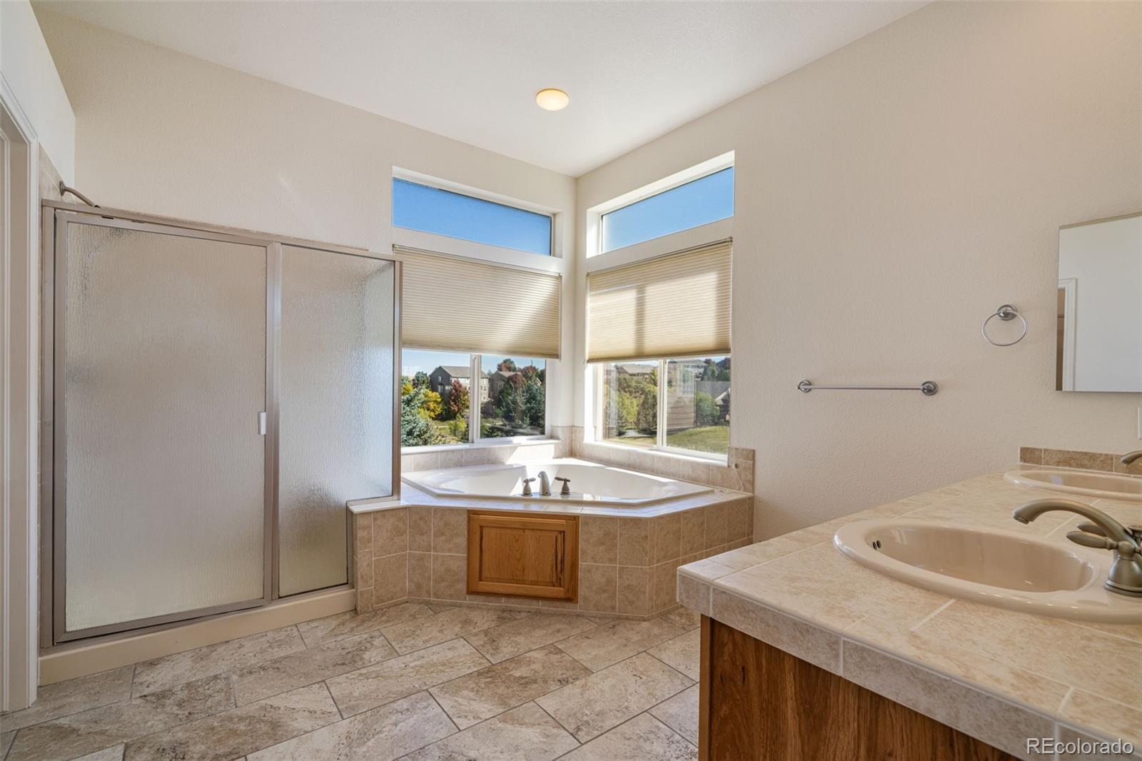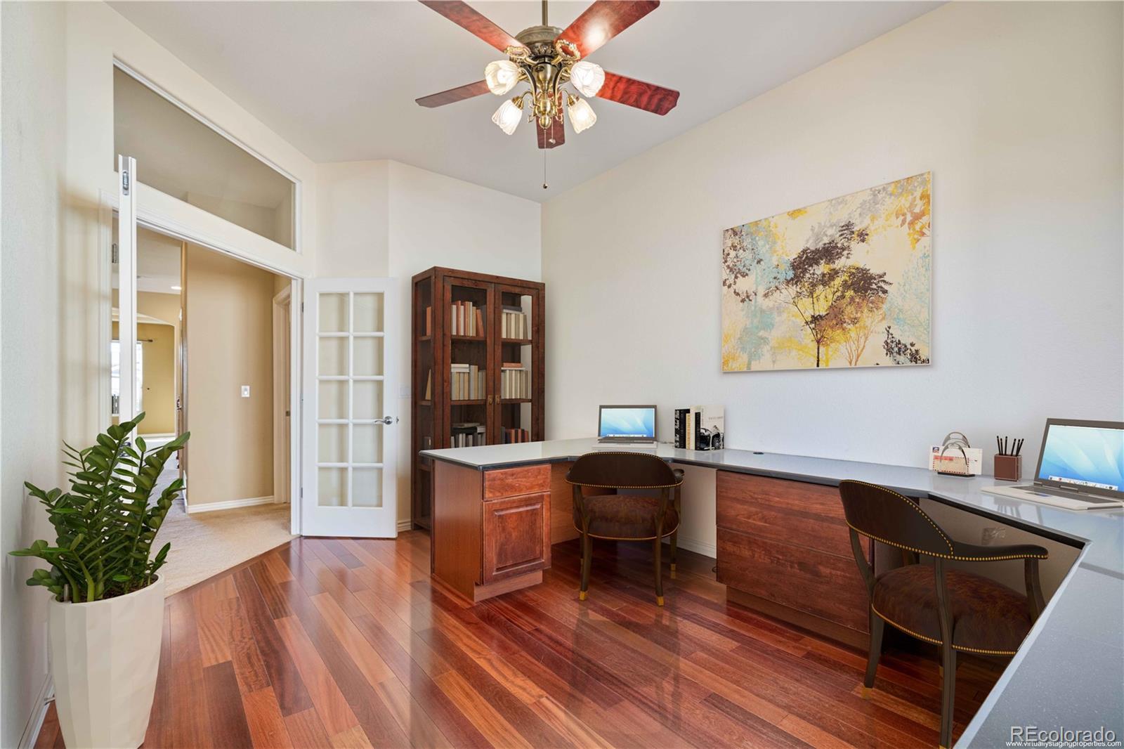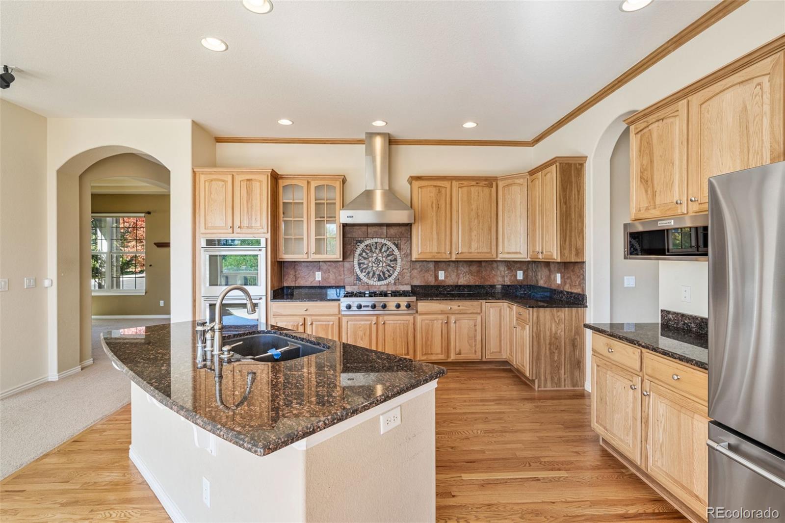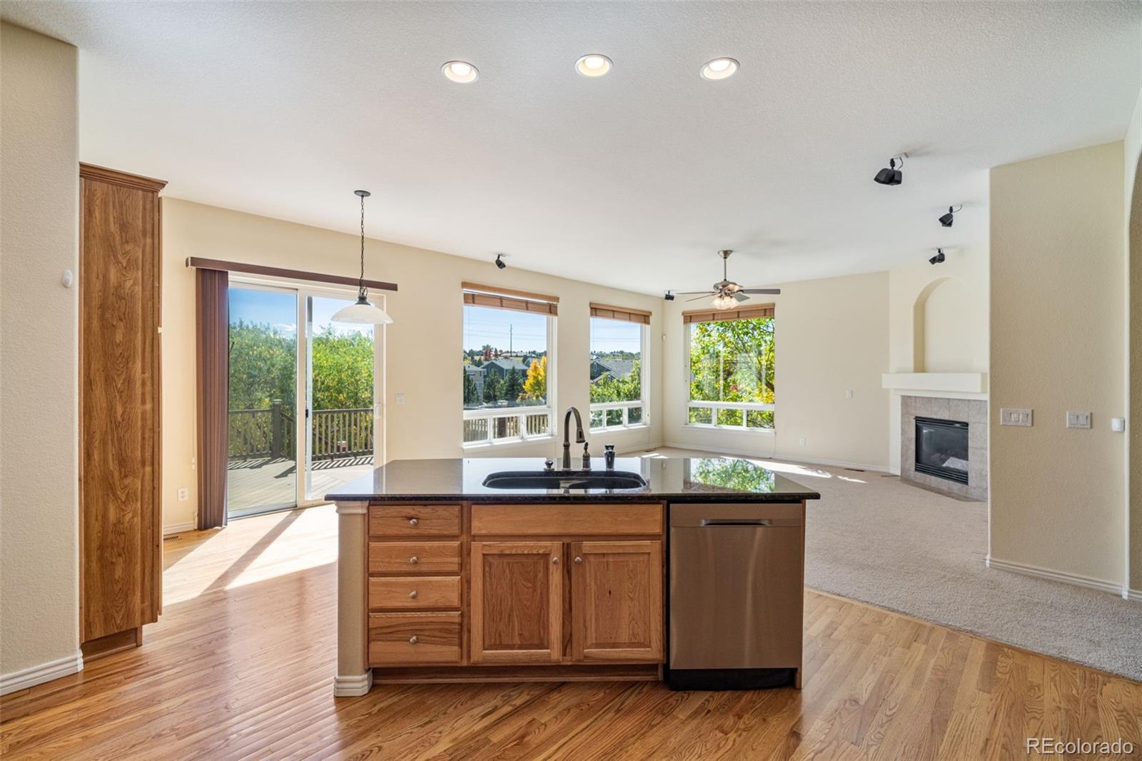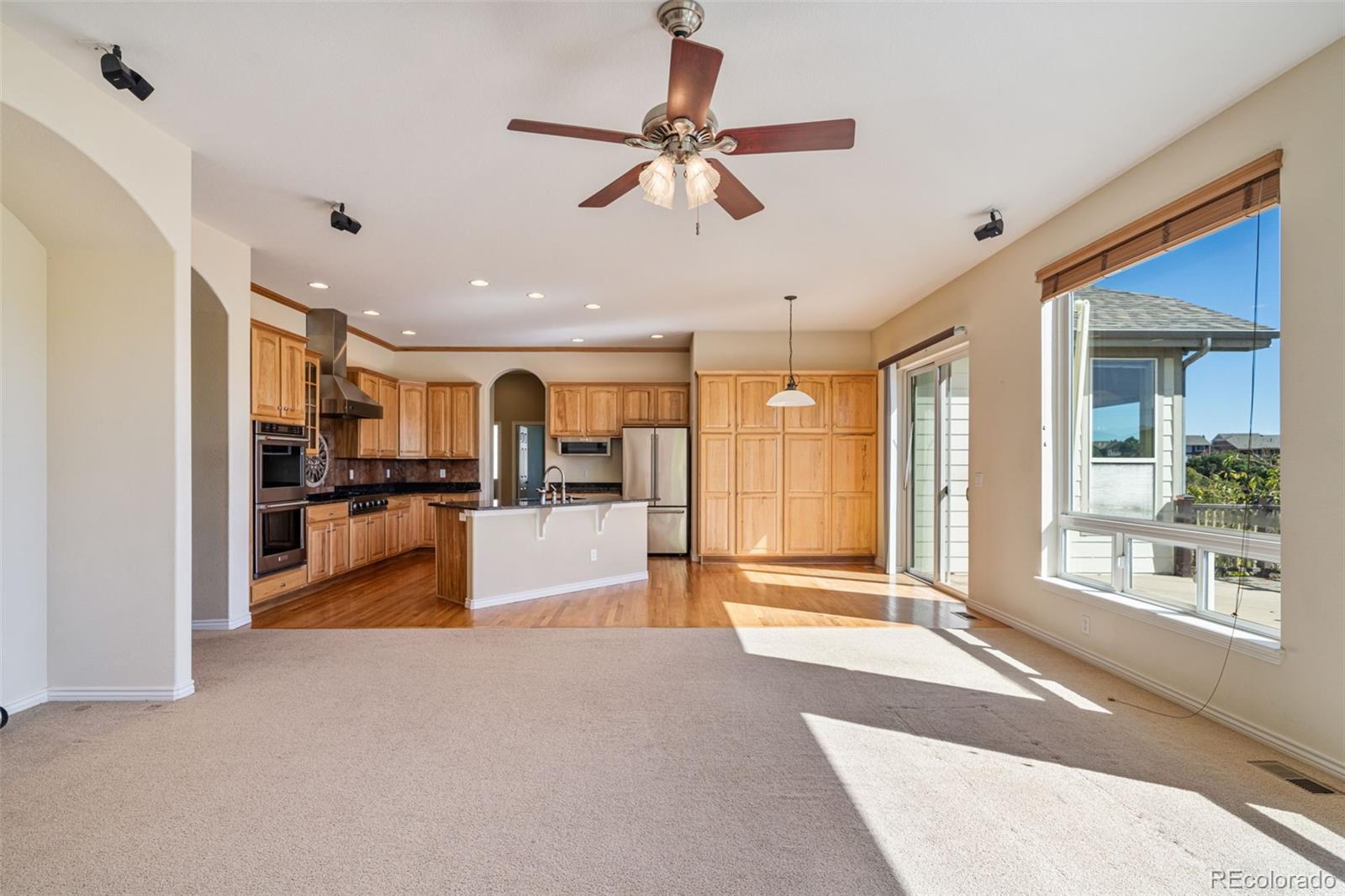 Welcome to this beautifully maintained ranch-style home in Sapphire Pointe, perfectly set on a third acre corner lot backing to open space. Designed for easy main-floor living and entertaining, this home captures Colorado’s best indoor-outdoor lifestyle with miles of trails right out your back door and sweeping meadow views from nearly every window. Inside, you’ll find over 5,200 finished square feet of thoughtfully designed space. The main level features three bedrooms plus a private office, formal living and dining rooms, and a bright, open family room centered around a gas fireplace. The kitchen is a true gathering spot with double ovens, a cooktop, large island, bar seating, and a sunny breakfast nook that opens to a spacious deck—perfect for summer barbecues or quiet morning coffee. The fully finished walk-out basement adds even more versatility with two additional bedrooms, a ¾ bath, a full wet bar, home theater, exercise room, and game area—all leading to a covered patio surrounded by mature landscaping. Recent upgrades include a brand-new roof, updated furnace, and water heater for peace of mind. A three-car attached garage provides plenty of storage for bikes, tools, and Colorado toys. Sapphire Pointe offers resort-style amenities including a pool, clubhouse, playgrounds, tennis courts, and miles of connecting trails. Conveniently located near Founders Parkway and I-25, this home offers quick access to downtown Castle Rock’s restaurants, shops, and award-winning schools, all while maintaining a peaceful, nature-backed setting.