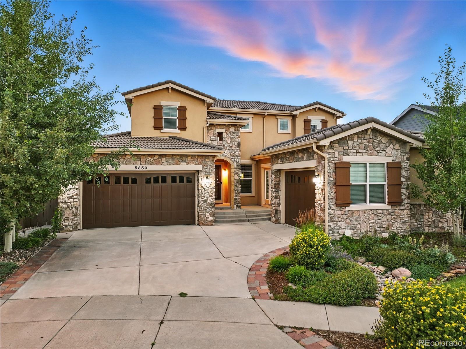 Immaculate and rare 6 bedroom home in a quiet cul-de-sac within walking distance to schools AND with Pikes Peak views from your covered and extended back deck. Before even entering the home, the mature landscape with large aspen trees and lush front lawn welcome you immediately. Once inside, you have line of site to the separated dining room, gourmet kitchen, and expansive great room, but also a feel of separation for each space that gives a sense of togetherness within the home. Custom stained hardwood floors flow throughout the main level where you have a customized dining room with stylish, yet understated wallpaper. The gourmet kitchen comes with a large island that can seat four, granite countertops, stainless steel appliances, and an upgraded custom backsplash. The kitchen flows into a breakfast nook that has sliders to the covered deck that overlooks the front range and large backyard with a customized patio that includes an outdoor stone fireplace. The great room has a wall of windows that bring in the natural light and a fireplace for those cozy nights. The large primary on the main level has a 5-piece spa bath with a 3-sided fireplace that could be enjoyed from bed or the tub. Also on the main level is a perfectly situated office that has its own private access from the front stoop -- perfect opportunity for an in-home business. Upstairs are 3 generously sized bedrooms with a loft that would be perfect for a separate hangout or homework section from the great room below. Downstairs, the basement is an entertainers dream with a custom alder wood bar, cozy movie room with built-ins, and two additional bedrooms and bathroom. In addition to this home being a gem, it's located in the highly desirable Cordera neighborhood that is also home an award winning school district. Neighborhood amenities include a play and lap pool, exercise room with childcare options, neighborhood summer events, as well as all within a five minute drive to restaurants and shopping.