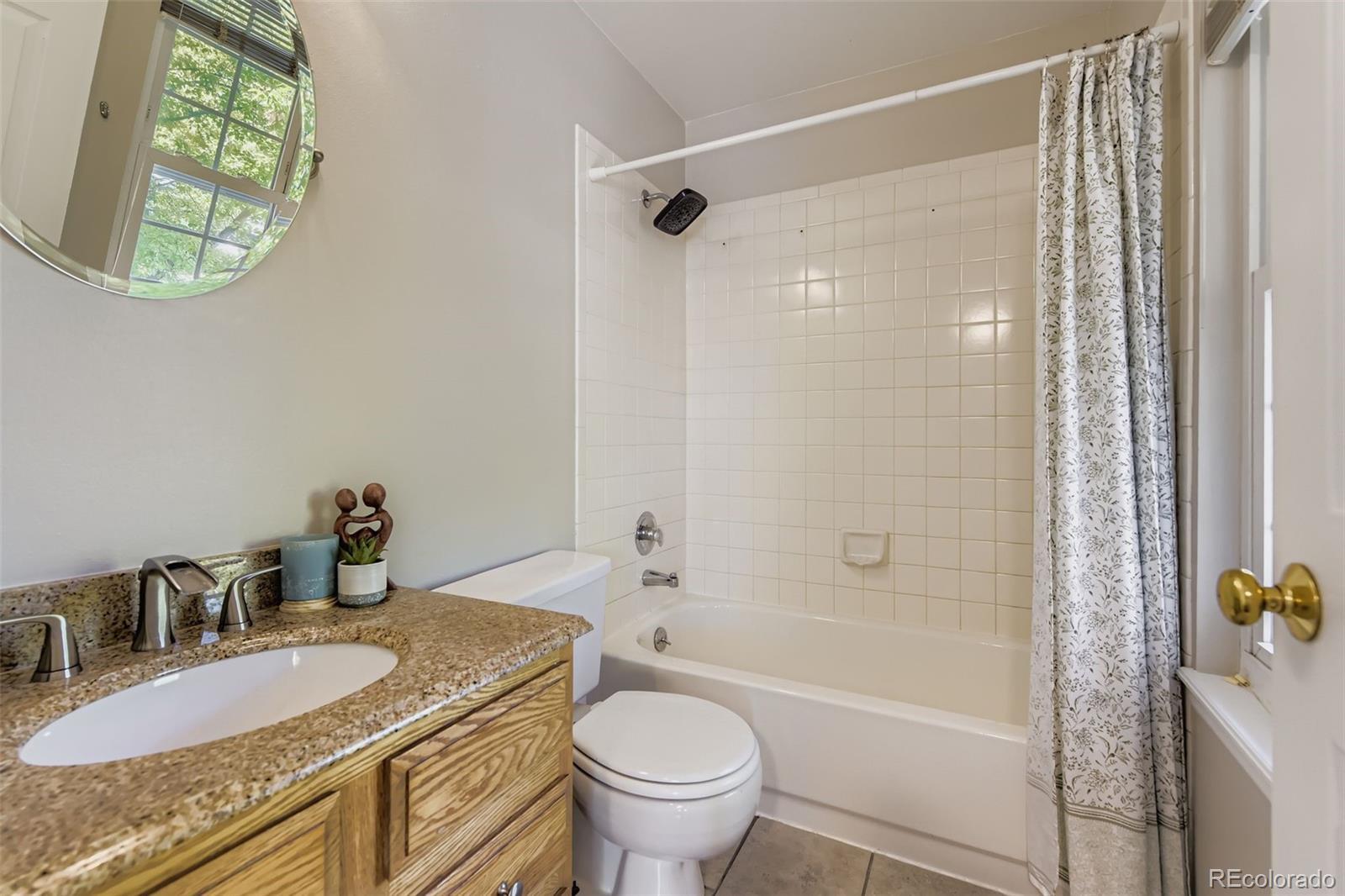 Step into a home designed for comfort, convenience, and practicality. Vaulted ceilings and an abundance of windows invite natural light into every room, while skylights enhance the bright and airy feel throughout the main living spaces. A cozy gas fireplace creates a warm focal point for relaxing evenings or entertaining guests. The interior has been thoughtfully updated with both newer carpet and fresh paint, and the kitchen features newly painted cabinets along with all appliances included, making moving in seamless and stress-free. The home also features a brand-new roof, ensuring peace of mind for years to come. One of the standout features is the huge, shaded and private back patio—an ideal space for outdoor dining, quiet mornings, or hosting friends—paired with minimal yard maintenance so you can spend more time enjoying and less time working. The large basement is versatile and can easily function as a third bedroom, gym, office, guest room, or media space depending on your needs. Located in a community with access to a swimming pool and tennis court, this property offers the benefits of amenities without the upkeep. Just moments away are bike trails, parks, and beautiful green spaces, making it a great fit for outdoor enthusiasts. Grocery stores, restaurants, shops and everyday conveniences are close by, and the neighborhood is known for its friendly, welcoming neighbors. Quick access to Hwy-470 for easy commuting or trip into the mountains. This is a home that combines style, updates, location, and low-maintenance living in one attractive package.