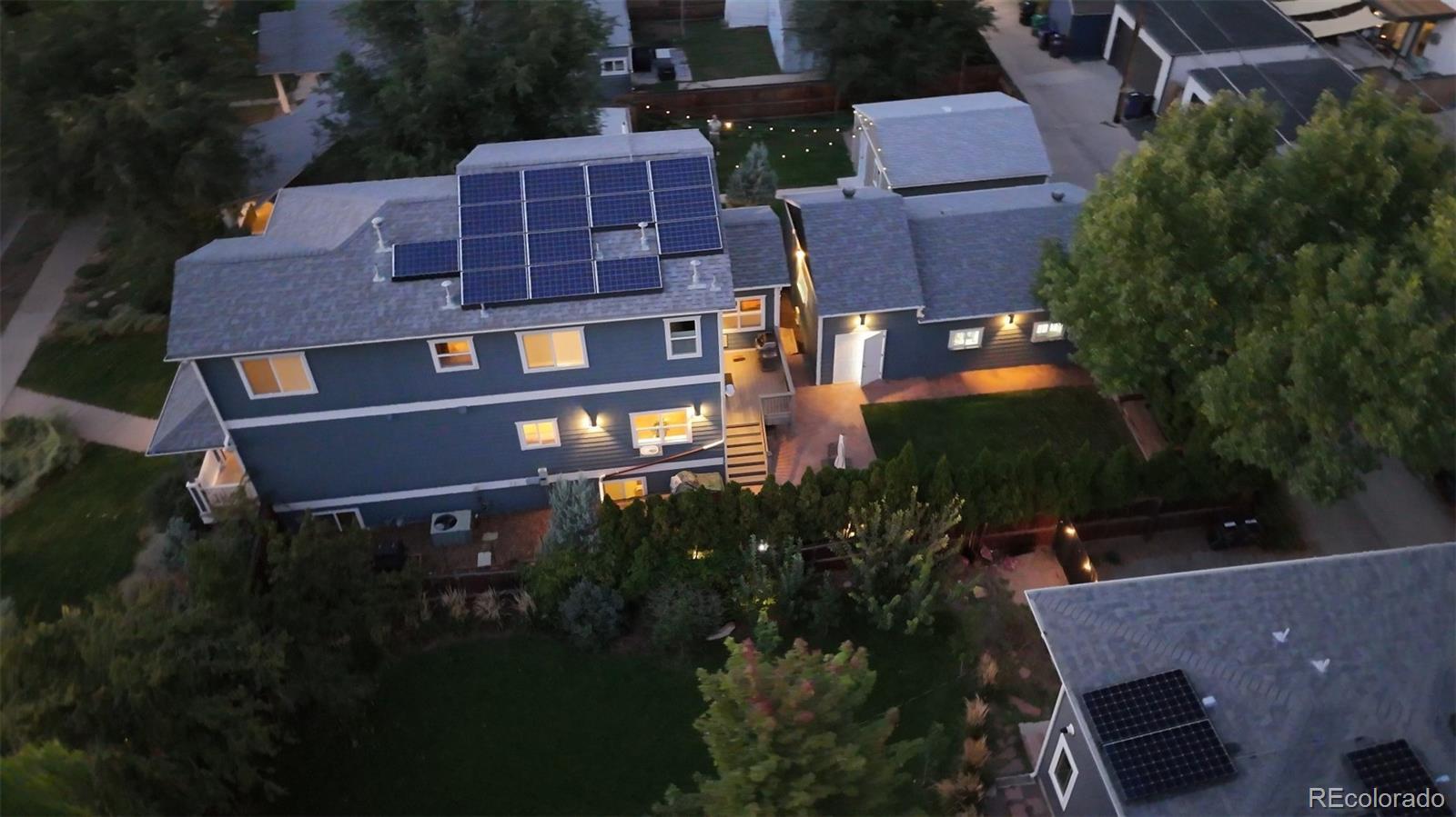 This beautiful, flowing, and spacious 3 bedroom, 2.5 bath Craftsman-style home in the Berkeley neighborhood in northwest Denver boasts a 4-car garage. Highlights include cherry wood floors on the main level, a large dining room, a private office with 180° windows, a private and fenced backyard, solar panels, whole-house water filtration, coffered ceilings in the dining and great rooms, a spacious kitchen nook, granite countertops throughout, and a kitchen peninsula perfect for entertaining or a quick meal. Also featured are a spacious stained concrete patio, mature landscaping, front and back Trex porches, dual water heaters, a Jacuzzi tub, and a steam shower in the primary suite. Kitchen and laundry appliances are included. The garden-level unfinished basement—plumbed for a future full bath—offers the opportunity to finish it. Central heat & AC, Dual water heaters In line air filtration system Automatic Sump Pump Solar Powered Aquasana Whole House Water Filtration System New asphalt shingles and exterior paint 2017 Hunter Douglas window coverings. Gas Fireplace with hand carved teak wood surround and matching mirror Radon Gas Abatement System. Custom teak wood bar & wine rack Jetted tub primary bedroom Walk in steam shower In-ceiling speakers in the main room, dining room, primary bedroom (and wired), and wall-mount outdoor speakers back yard Wired for security system on doors/windows in basement and main level as well as motion detection sensors Exterior lighting front, sides and back yard. Rolling garage door opening: 18’W x 7’7”H 21’W x 33’ 2”L concrete slab on grade French doors to back yard 1 220 outlet, multiple 110 outlets Iron-barred windows Pet door Storage loft, vented Yard: Landscape sprinkler & drip system Mature Landscaping 3 raised flower/vegetable gardens Colored & stamped concrete patio, slab on grade Landscape lighting Privacy-fenced with front & rear alley gates.