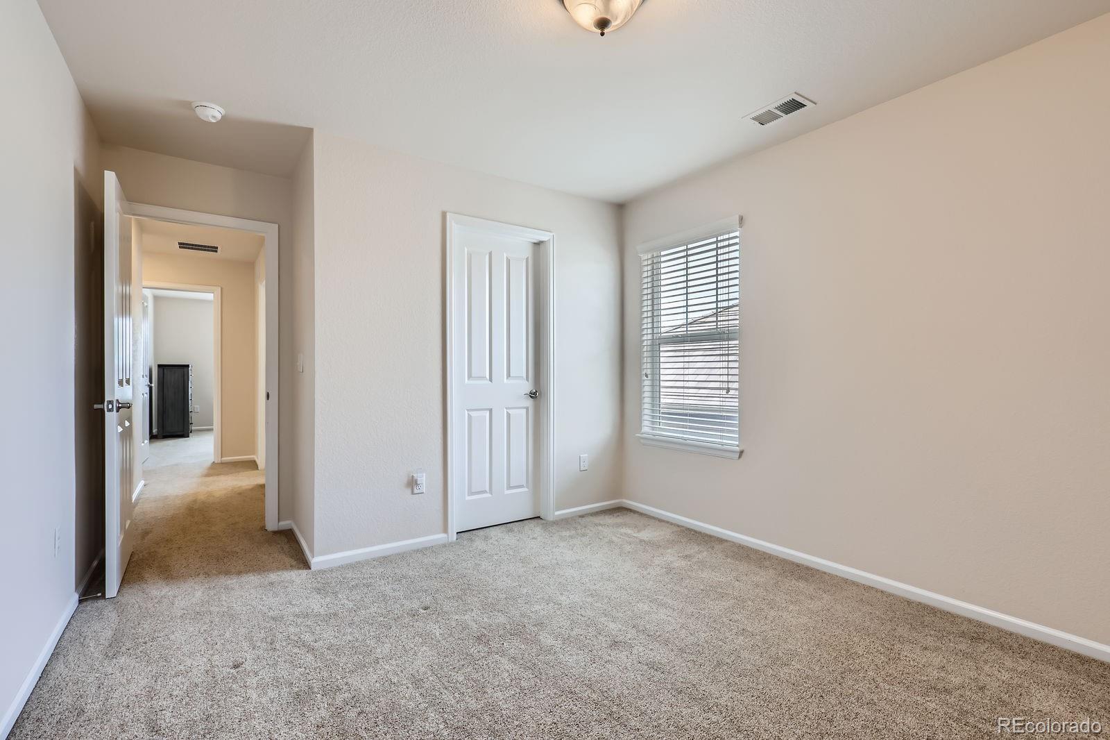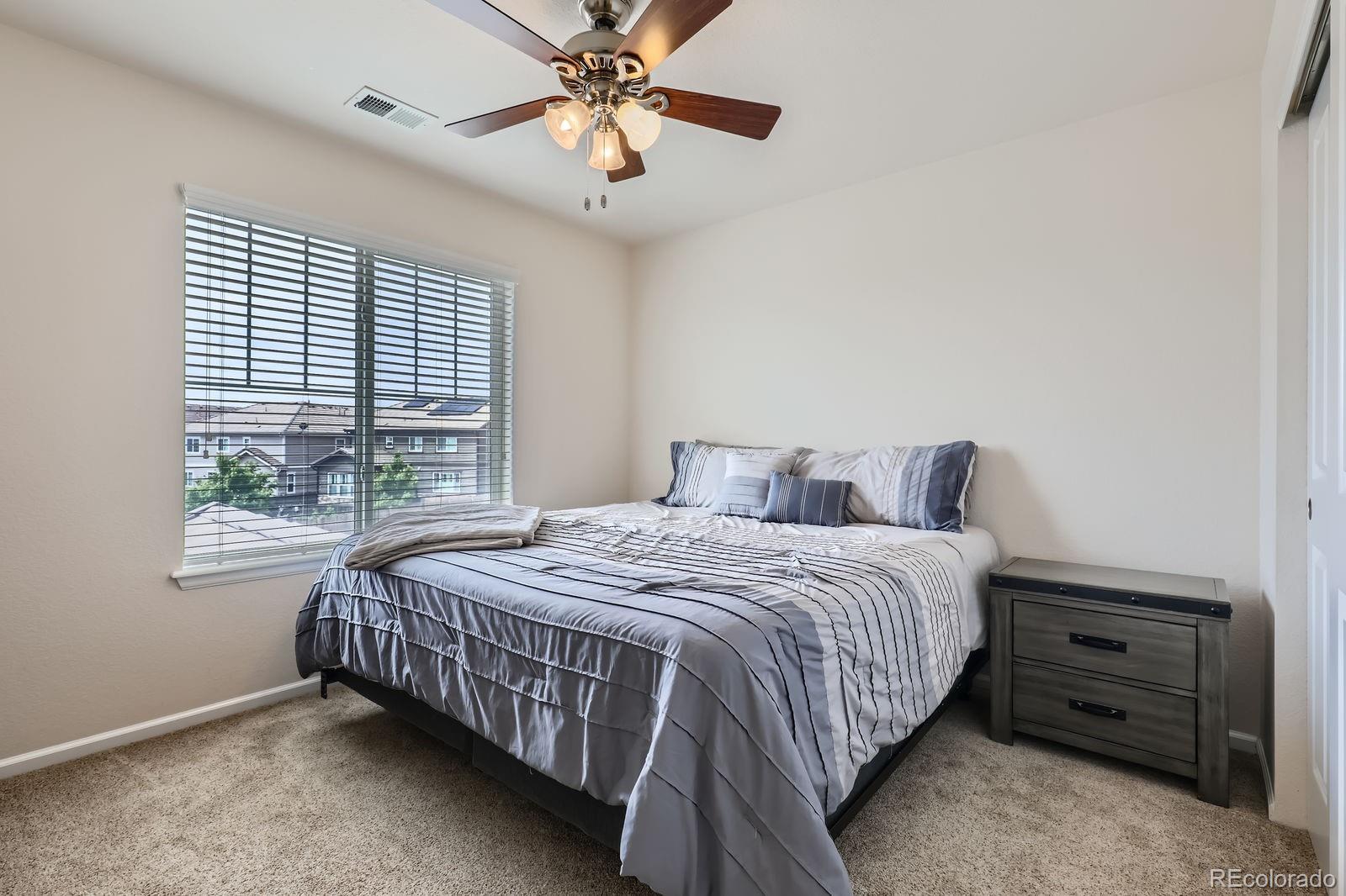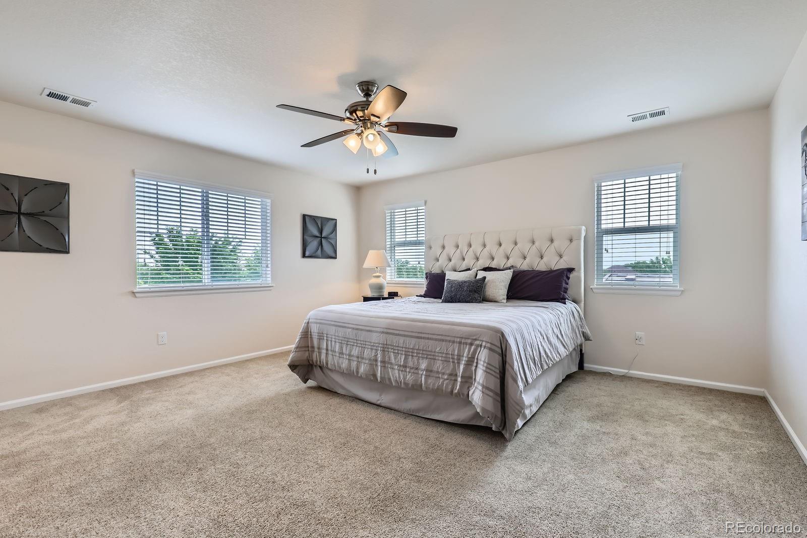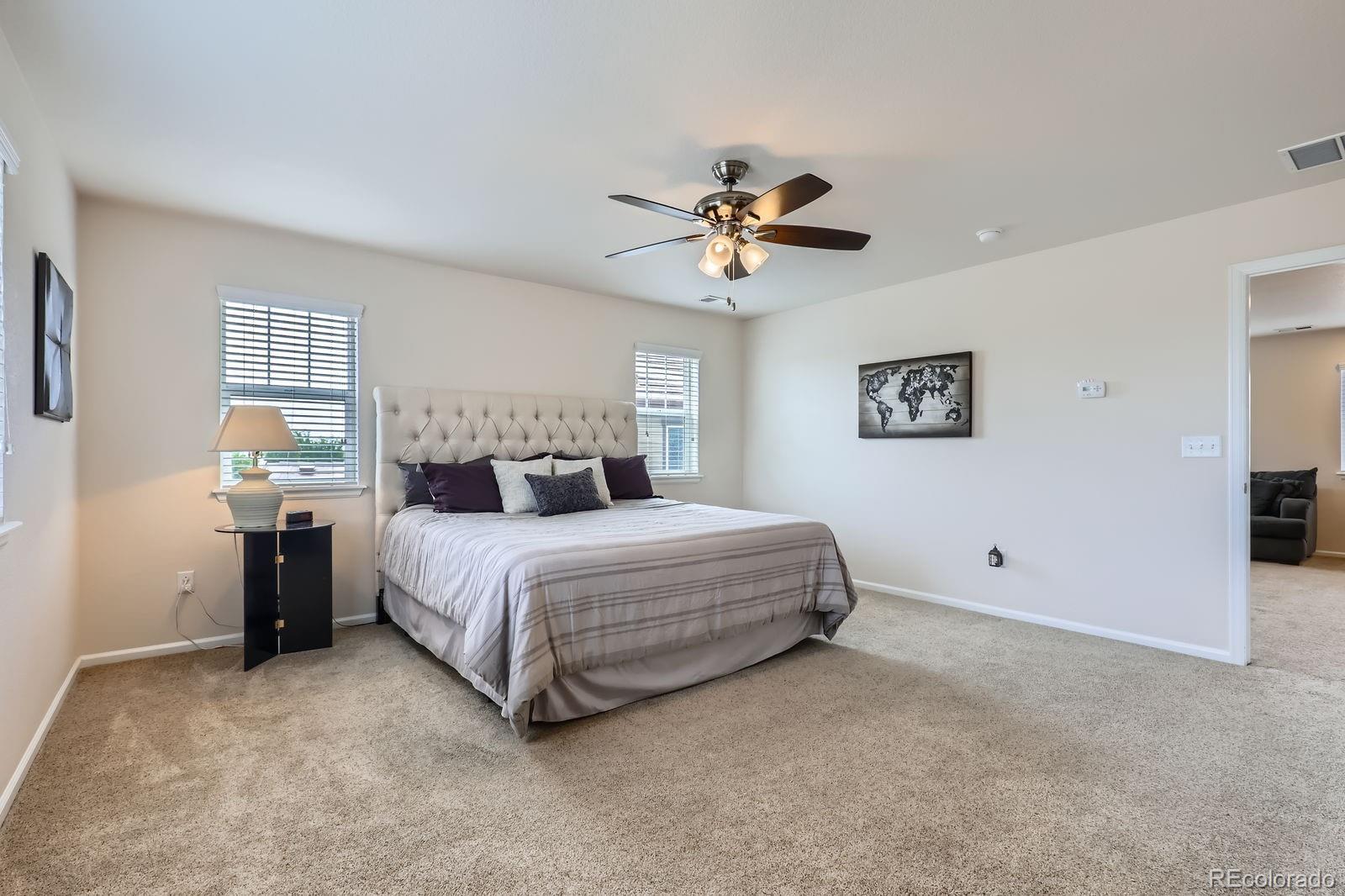 Spacious and beautifully maintained, this six-bedroom, four-bathroom home in Thornton’s Bramming Farm neighborhood offers 4,612 finished square feet of living space, including a finished basement and oversized three-car garage. Offering flexibility, comfort, and thoughtful design throughout. The main level welcomes you with a grand entryway that flows into a formal seating area. The heart of the home is an open-concept kitchen featuring a walk-in pantry, granite countertops, and stainless steel appliances, all centered around an extended island. The kitchen flows seamlessly into a sunlit living room with a cozy gas fireplace and continues to the dining area, which overlooks the generous backyard and patio, making it perfect for everyday living or entertaining. A private office and powder bath on the same floor add functionality and flexibility to the layout. Upstairs, a spacious loft provides a second living area, ideal for work or play. On one side, the primary suite features two walk-in closets and a luxurious five-piece bath. On the other, three secondary bedrooms share a full bathroom, conveniently located near the laundry room. The finished basement offers high ceilings, full egress windows, and a wide-open layout that easily accommodates a media room, game space, or home gym. A guest bedroom and three-quarter bath with dual access make this level ideal for visitors or extended stays. Tucked into a quiet neighborhood near the community park and playground with easy access to major highways and the N Line light rail, this home delivers space, style, and everyday comfort in one welcoming package.