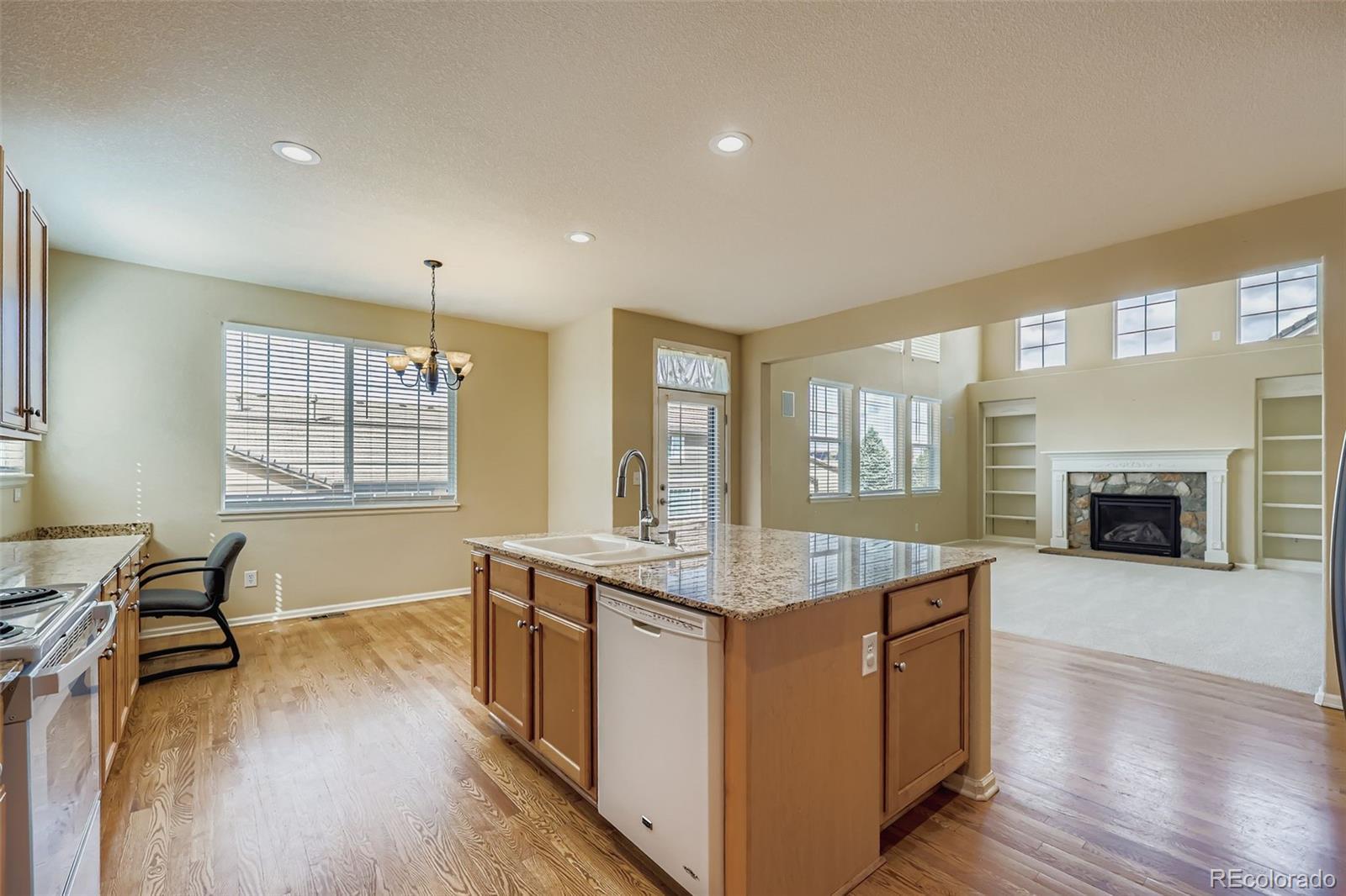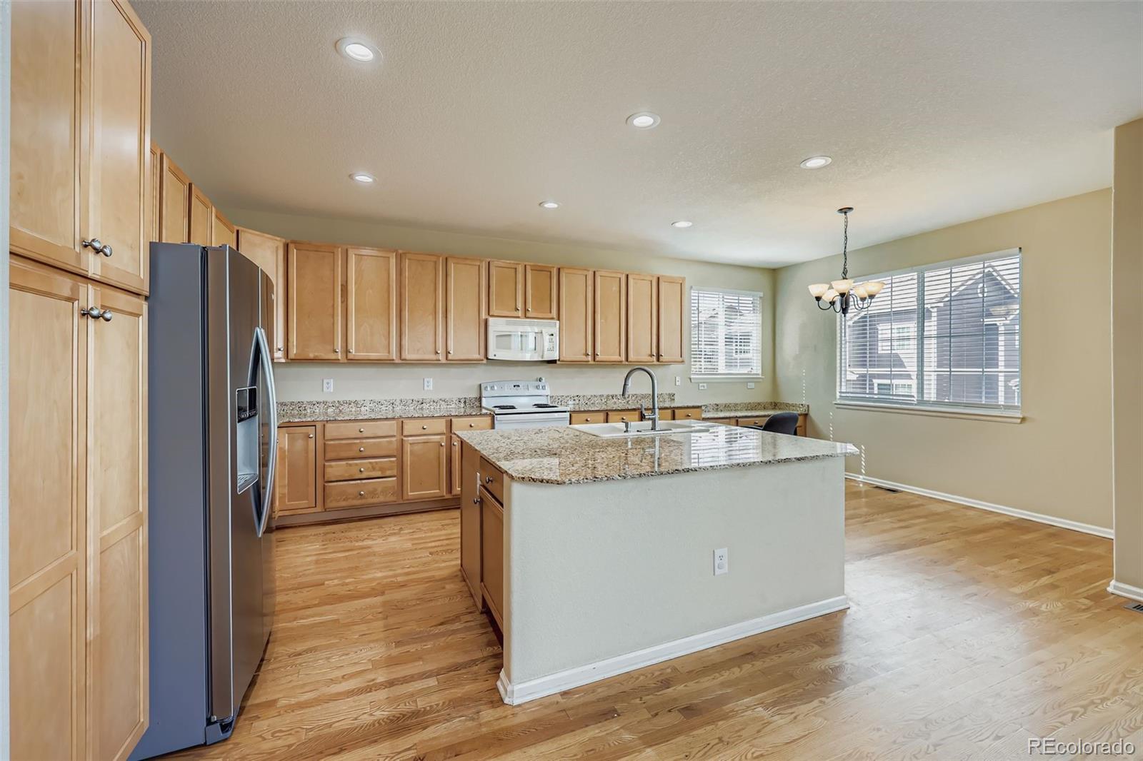 Great value on this spacious and clean home featuring over 3,700 finished square feet in the Cobblestone Ranch community. This beautiful property features 5 bedrooms, 3.5 bathrooms with a fully finished basement and new carpet throughout. This well-maintained home also sits in a quiet cul de sac and offers a 3 car tandem garage with 220V outlet. The main floor features extensive hardwood flooring, an office/study, formal dining, and laundry room. It also offers a large kitchen that opens to the breakfast nook and family/great room. The family room is highlighted with soaring vaulted ceilings, gas fireplace, surround sound wiring, and lots of windows for natural light. The kitchen offers tons of cabinets, solid surface granite counters with center island and a work/study desk. The top floor features the primary suite along with two spare bedrooms and shared full bathroom. The primary bedroom is spacious with an attached 5-piece bathroom and walk-in closet. The finished basement features a living/flex room, two spare conforming bedrooms and a full bathroom. This home also provides a fenced backyard with nicely sized rear patio in addition to a covered front porch. Concrete tile roof! This property is located in the fantastic Cobblestone community with trails, tennis courts, playground and pool. Seller willing to provide up to a $15K loan/rate buydown concession!