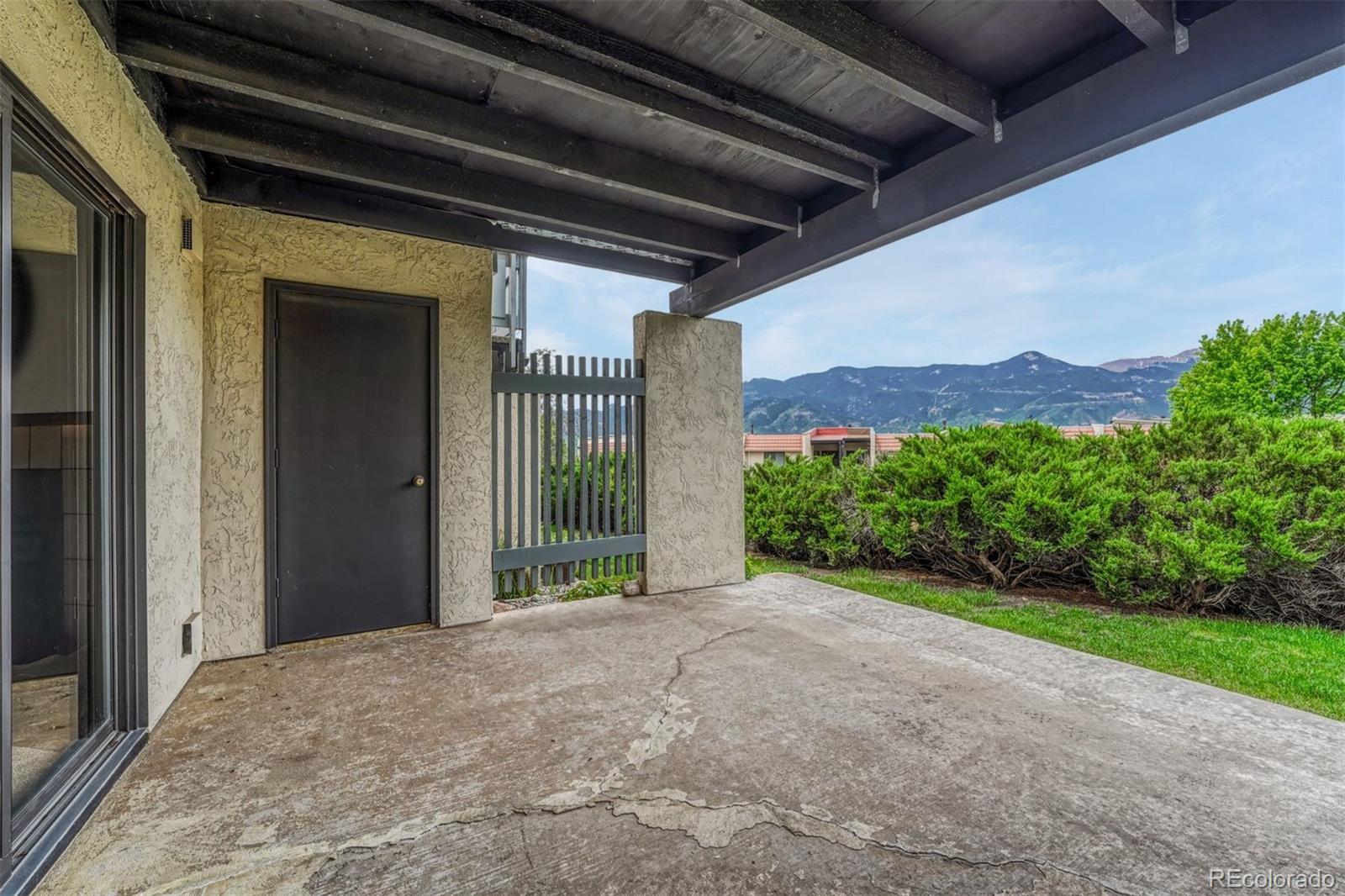 Offering the most affordable three-bedroom home in Villa Sierra since 2021, this spacious ground-level condo brings together comfort, versatility, and some of the community’s most captivating views. With 1,556 square feet, the layout is designed for both easy everyday living and flexible use. The open living and dining areas flow onto a private covered patio, where mountain silhouettes and a peek at Garden of the Gods frame morning coffee or evening unwinding. A gas fireplace adds warmth indoors, while a beverage bar and in-unit laundry elevate convenience. The generous primary suite includes three closets and an ensuite bath. Two additional bedrooms, one perfectly suited as a craft room, office, home gym, or guest space, provide valuable adaptability. Ample storage throughout, including an oversized detached one-car garage, ensures space for everything that matters. The community features security personnel/staffed entry, seasonal pool, tennis/pickleball courts, and well maintained grounds.The home’s well-kept vintage character is ready for your personal touches, whether that means embracing its charm or updating to your style. A rare ground-level offering with remarkable potential and exceptional value, this condo is poised to welcome its next chapter. Schedule your showing and experience what makes it stand out.