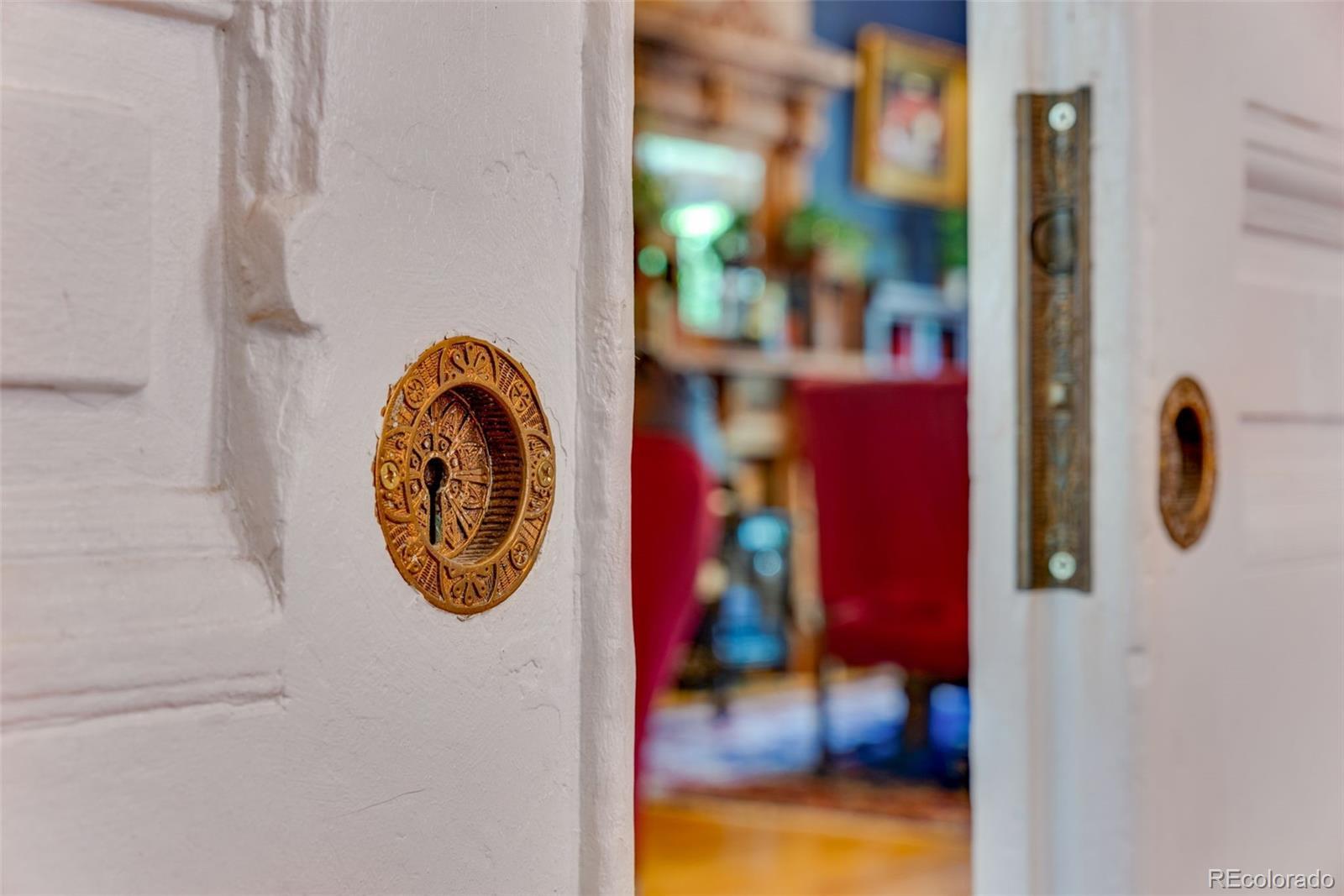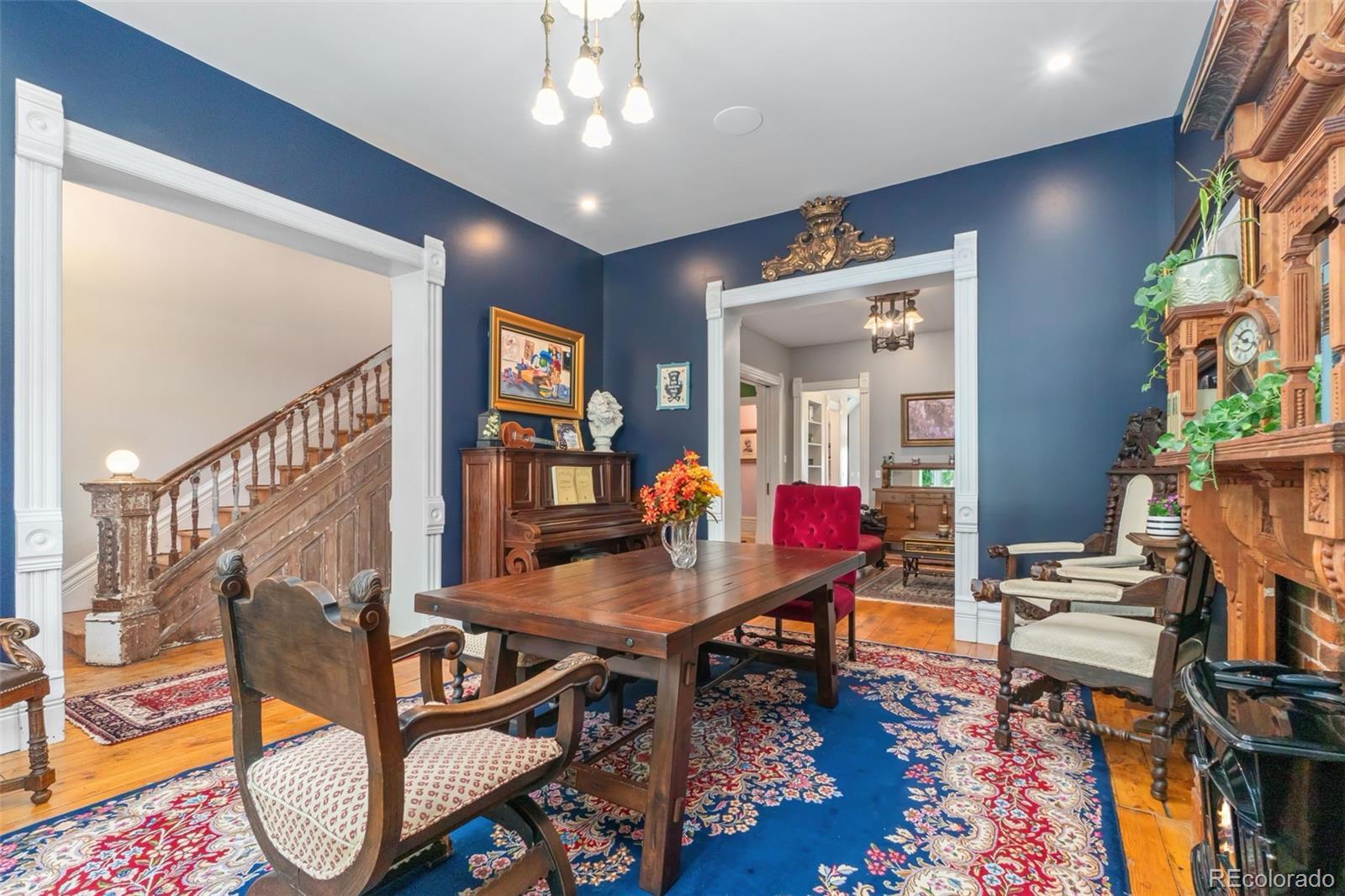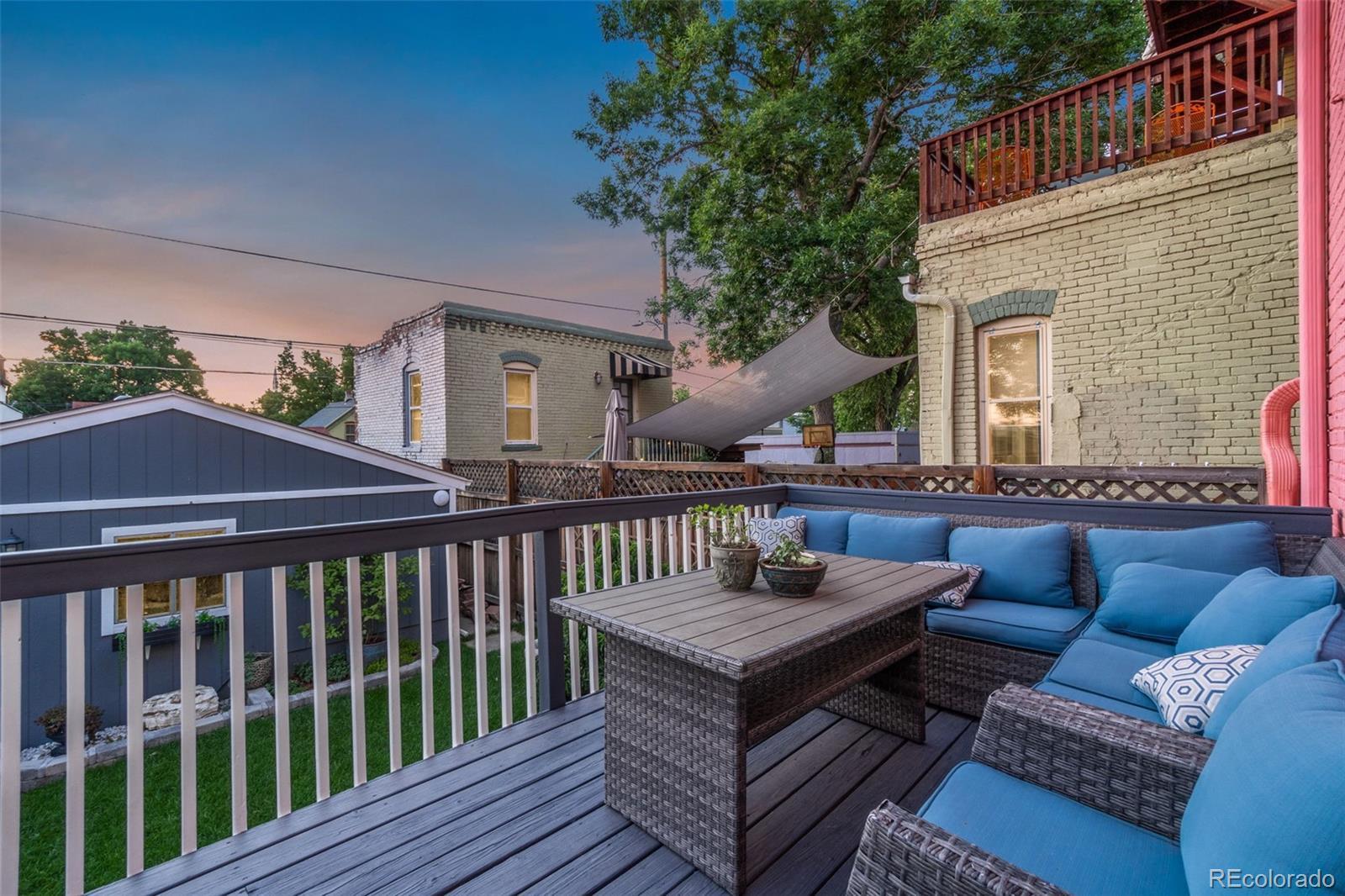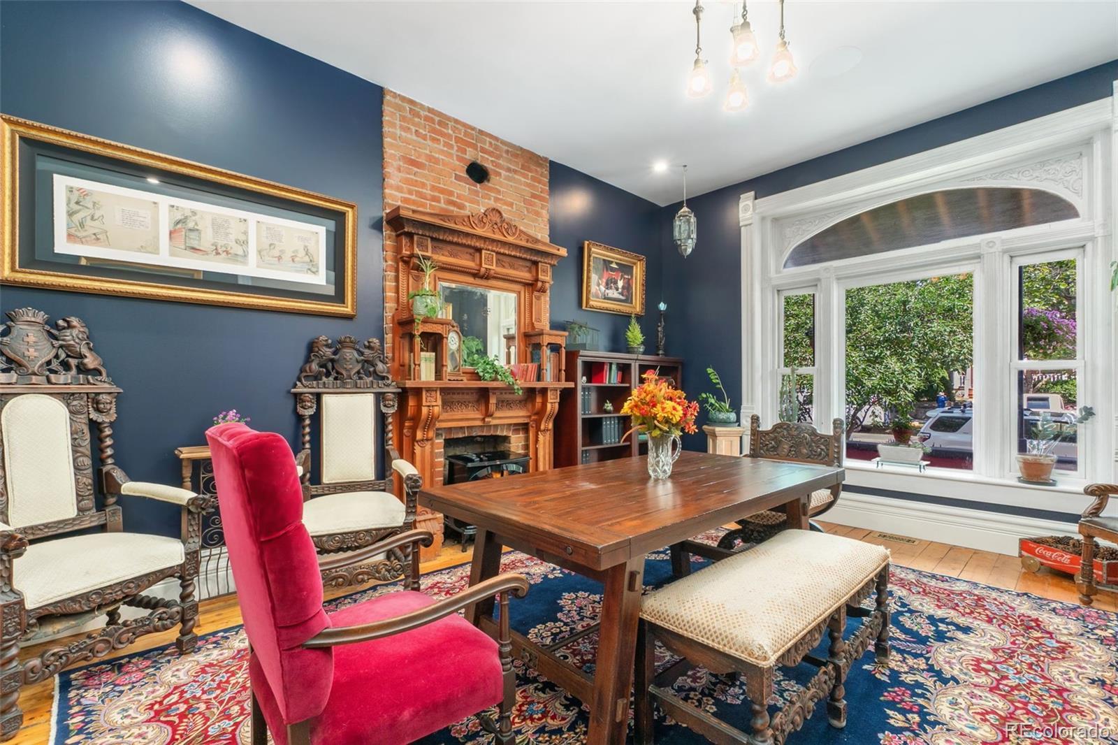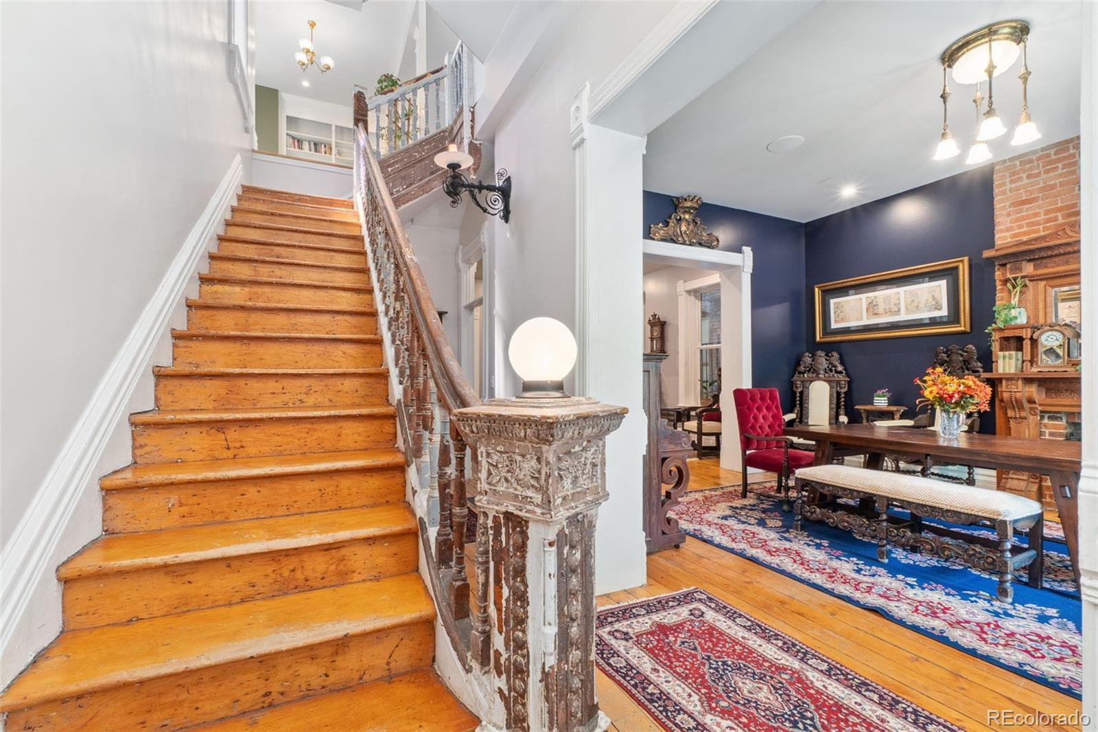 This one-of-a-kind home, situated on a quiet tree-lined street of stately Victorian homes in historic Curtis Park, lies just a few blocks from the center of RiNo. When you step into 2721 Curtis, you’ll be transported to a whimsical, Victorian era, ‘Alice in Wonderland’ atmosphere, where all its charm and character will be felt. From its original walnut staircase and wide plank pine floors to the cast-iron fireplaces, over 10-ft ceilings, and ornate woodwork, this home retains the beauty and integrity of its Victorian roots. Nearly every light fixture is a hand-selected 1800s antique, with its museum-quality railcar light fixtures as outstanding, rare pieces of history. A state-of-the-art whole house sound system, with 45 speakers throughout, offers sound control in every room. Gigabit internet. Its eight, 4k camera suite enables monitoring from a simple app. A new, state-of-the-art commercial heat pump HVAC system, with controls for each floor. Navien on-demand water heat system. With over 4300 finished sqft, the house has plenty of room to entertain, live and work. The large kitchen showcases a center island, marble countertops, farm style sinks, stainless appliances, and a huge custom pantry. The second floor features an additional library, three bedrooms and two baths. The primary suite on the second floor boasts a decorative fireplace, a relaxing balcony overlooking Curtiis Street, and a beautiiful ‘blue celeste’ Argentinian marble bath with a walk-in, rainfall shower and Rohl fixtures. The third floor features another primary suite with bath, custom top-of-the-line, mahogany Loewen windows and French doors opening to a balcony with stunning mountain and city skyline views. The basement features original stone walls, antique arched doors, reclaimed wood floors, and a granite bar top imported from Madagascar. Home theater with custom, app-controlled lighting and immersive 13-speaker surround sound movie theater with a 72-in TV and tech rack included in sale.