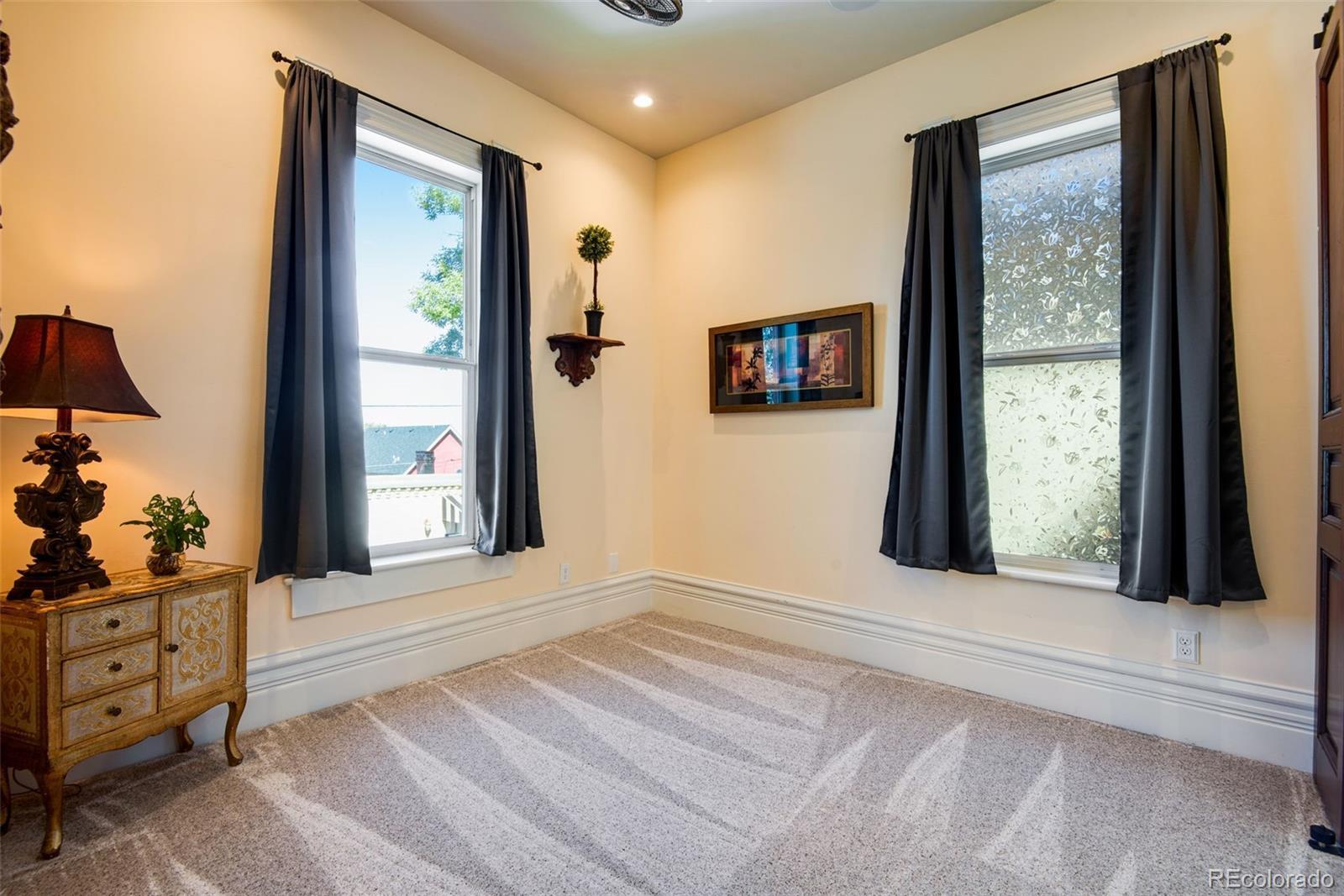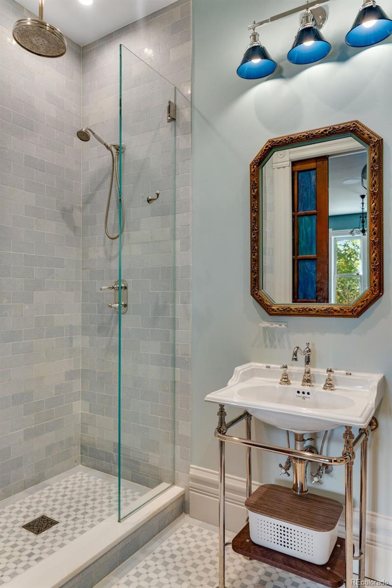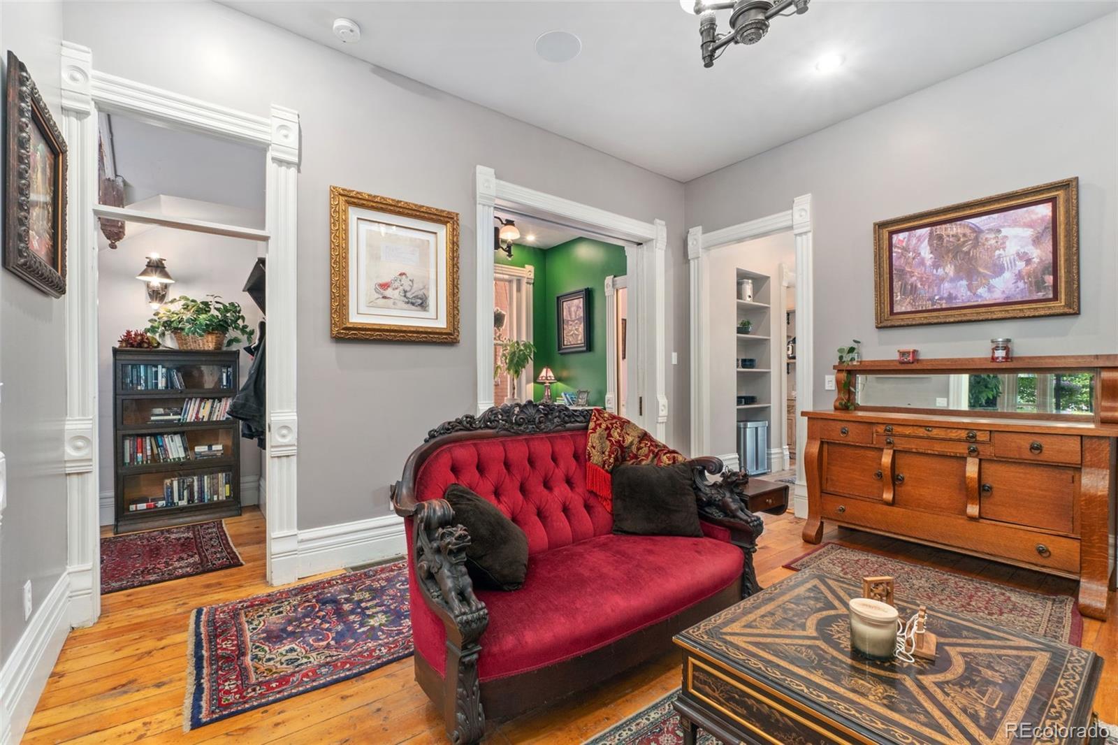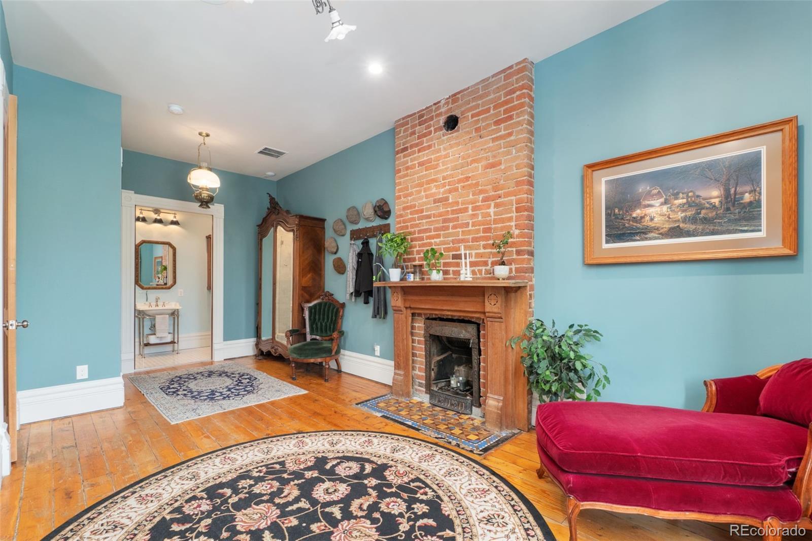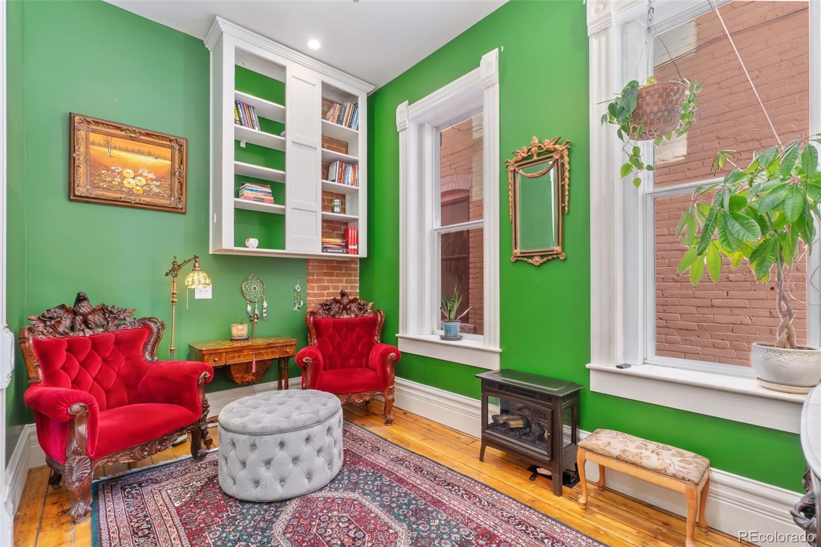 This one-of-a-kind home, situated on a quiet tree-lined street of stately Victorian homes in historic Curtis Park, lies just a few blocks from the center of RiNo. When you step into 2721 Curtis, you’ll be transported to a whimsical, Victorian era, ‘Alice in Wonderland’ atmosphere, where all its charm and character will be felt. From its original walnut staircase and wide plank pine floors to the cast-iron fireplaces, over 10-ft ceilings, and ornate woodwork, this home retains the beauty and integrity of its Victorian roots. Nearly every light fixture is a hand-selected 1800s antique, with its museum-quality railcar light fixtures as outstanding, rare pieces of history. A state-of-the-art whole house sound system, with 45 speakers throughout, offers sound control in every room. Gigabit internet. Its eight, 4k camera suite enables monitoring from a simple app. A new, state-of-the-art commercial heat pump HVAC system, with controls for each floor. Navien on-demand water heat system. With over 4300 finished sqft, the house has plenty of room to entertain, live and work. The large kitchen showcases a center island, marble countertops, farm style sinks, stainless appliances, and a huge custom pantry. The second floor features an additional library, three bedrooms and two baths. The primary suite on the second floor boasts a decorative fireplace, a relaxing balcony overlooking Curtiis Street, and a beautiiful ‘blue celeste’ Argentinian marble bath with a walk-in, rainfall shower and Rohl fixtures. The third floor features another primary suite with bath, custom top-of-the-line, mahogany Loewen windows and French doors opening to a balcony with stunning mountain and city skyline views. The basement features original stone walls, antique arched doors, reclaimed wood floors, and a granite bar top imported from Madagascar. Home theater with custom, app-controlled lighting and immersive 13-speaker surround sound movie theater with a 72-in TV and tech rack included in sale.