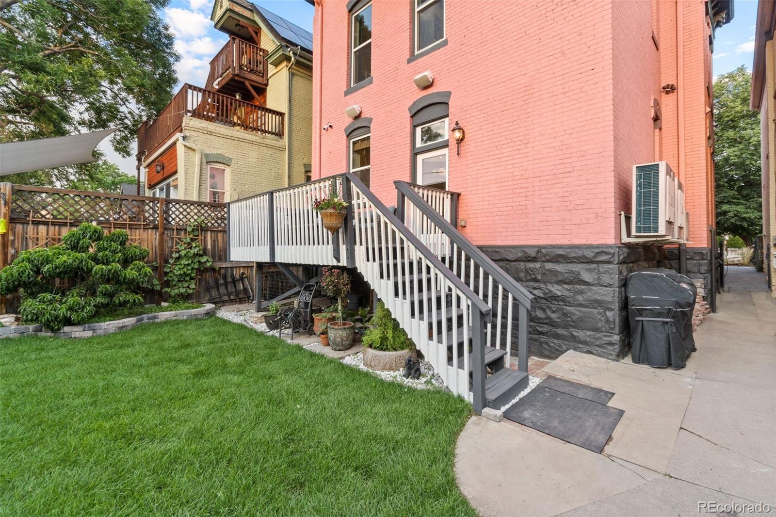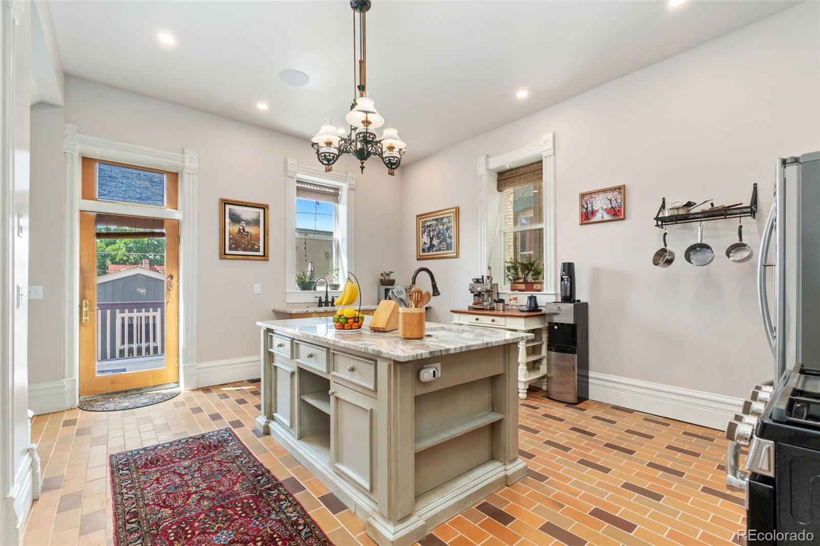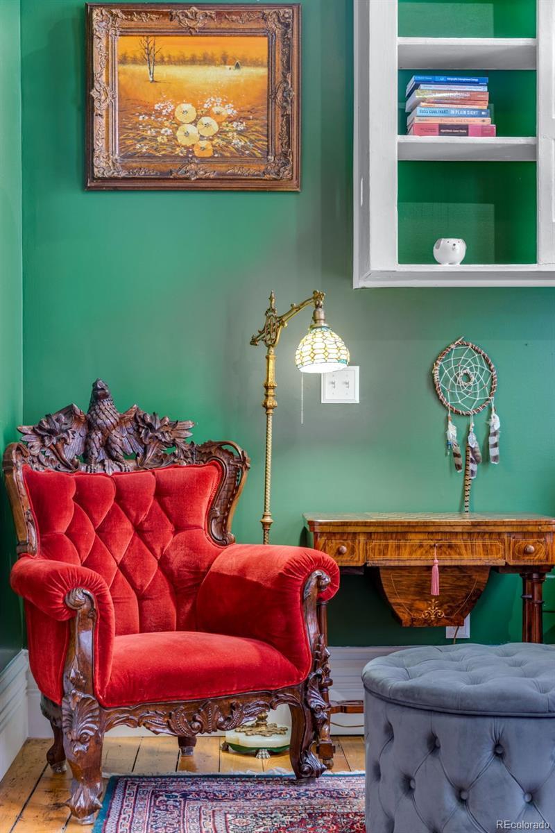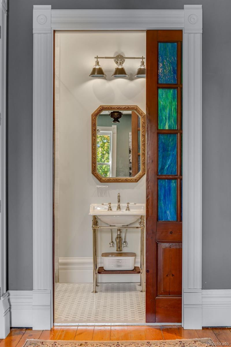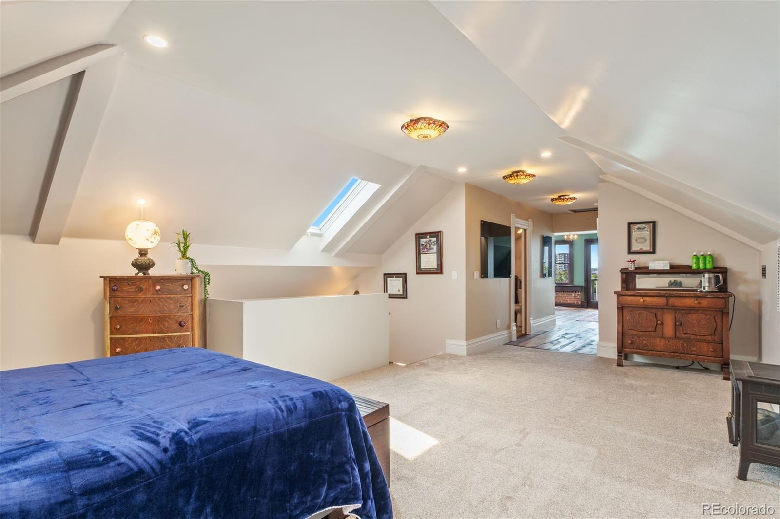 This one-of-a-kind home, situated on a quiet tree-lined street of stately Victorian homes in historic Curtis Park, lies just a few blocks from the center of RiNo. When you step into 2721 Curtis, you’ll be transported to a whimsical, Victorian era, ‘Alice in Wonderland’ atmosphere, where all its charm and character will be felt. From its original walnut staircase and wide plank pine floors to the cast-iron fireplaces, over 10-ft ceilings, and ornate woodwork, this home retains the beauty and integrity of its Victorian roots. Nearly every light fixture is a hand-selected 1800s antique, with its museum-quality railcar light fixtures as outstanding, rare pieces of history. A state-of-the-art whole house sound system, with 45 speakers throughout, offers sound control in every room. Gigabit internet. Its eight, 4k camera suite enables monitoring from a simple app. A new, state-of-the-art commercial heat pump HVAC system, with controls for each floor. Navien on-demand water heat system. With over 4300 finished sqft, the house has plenty of room to entertain, live and work. The large kitchen showcases a center island, marble countertops, farm style sinks, stainless appliances, and a huge custom pantry. The second floor features an additional library, three bedrooms and two baths. The primary suite on the second floor boasts a decorative fireplace, a relaxing balcony overlooking Curtiis Street, and a beautiiful ‘blue celeste’ Argentinian marble bath with a walk-in, rainfall shower and Rohl fixtures. The third floor features another primary suite with bath, custom top-of-the-line, mahogany Loewen windows and French doors opening to a balcony with stunning mountain and city skyline views. The basement features original stone walls, antique arched doors, reclaimed wood floors, and a granite bar top imported from Madagascar. Home theater with custom, app-controlled lighting and immersive 13-speaker surround sound movie theater with a 72-in TV and tech rack included in sale.