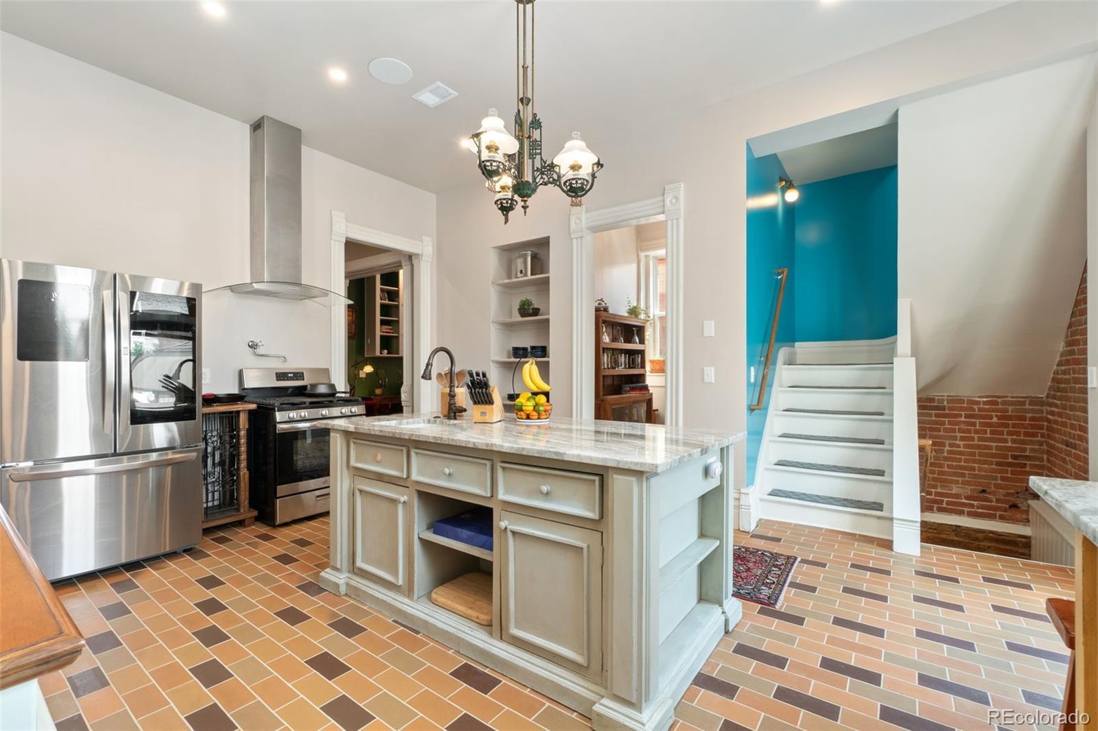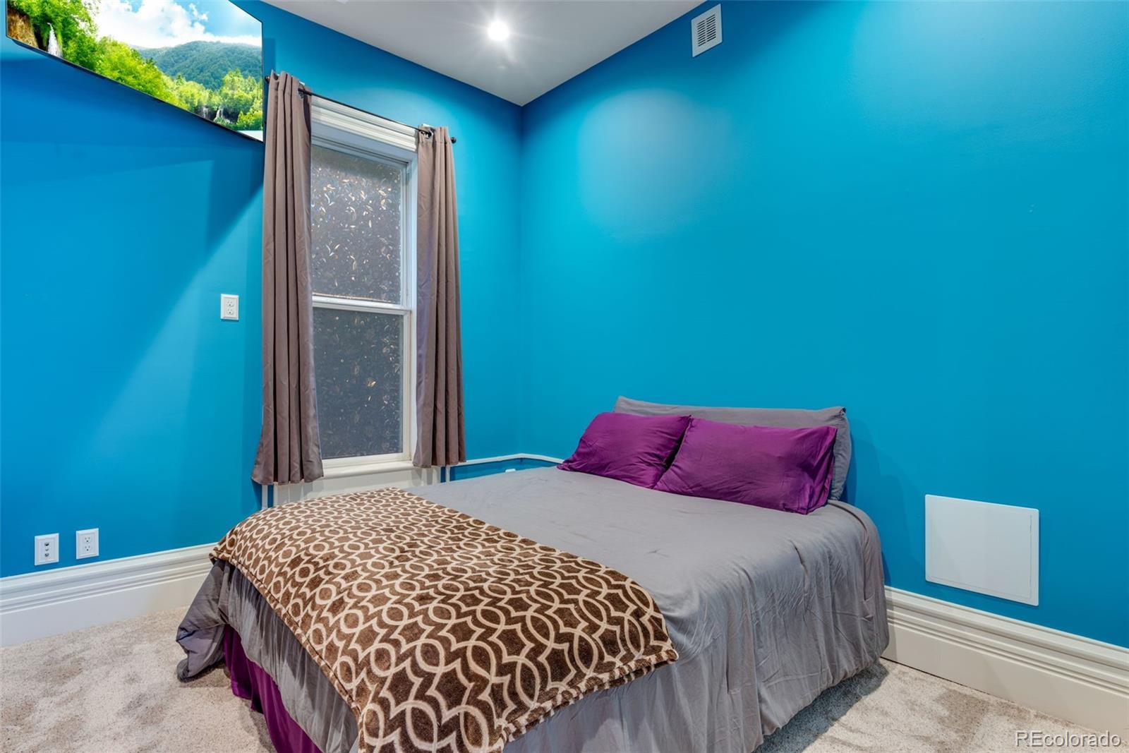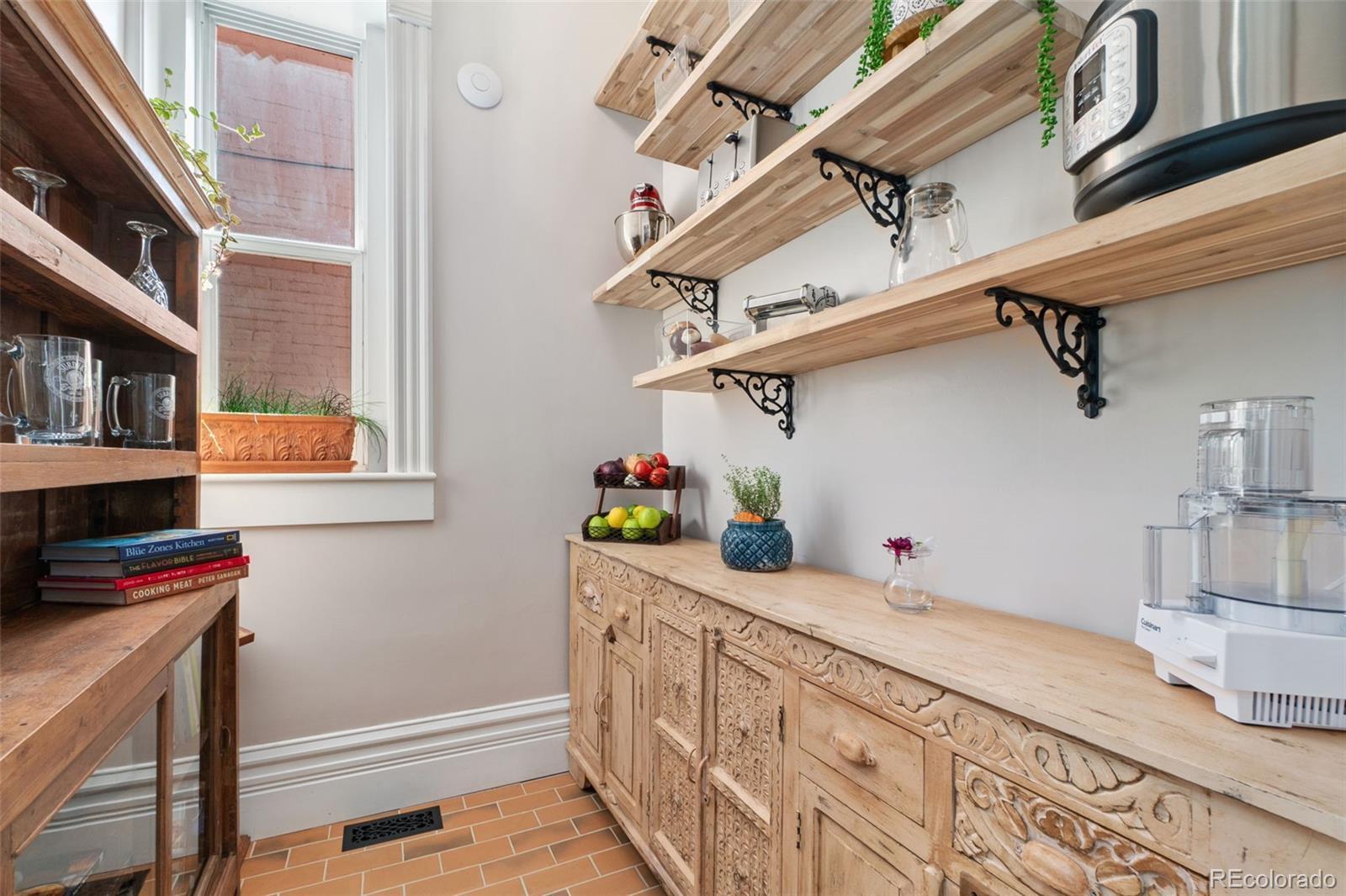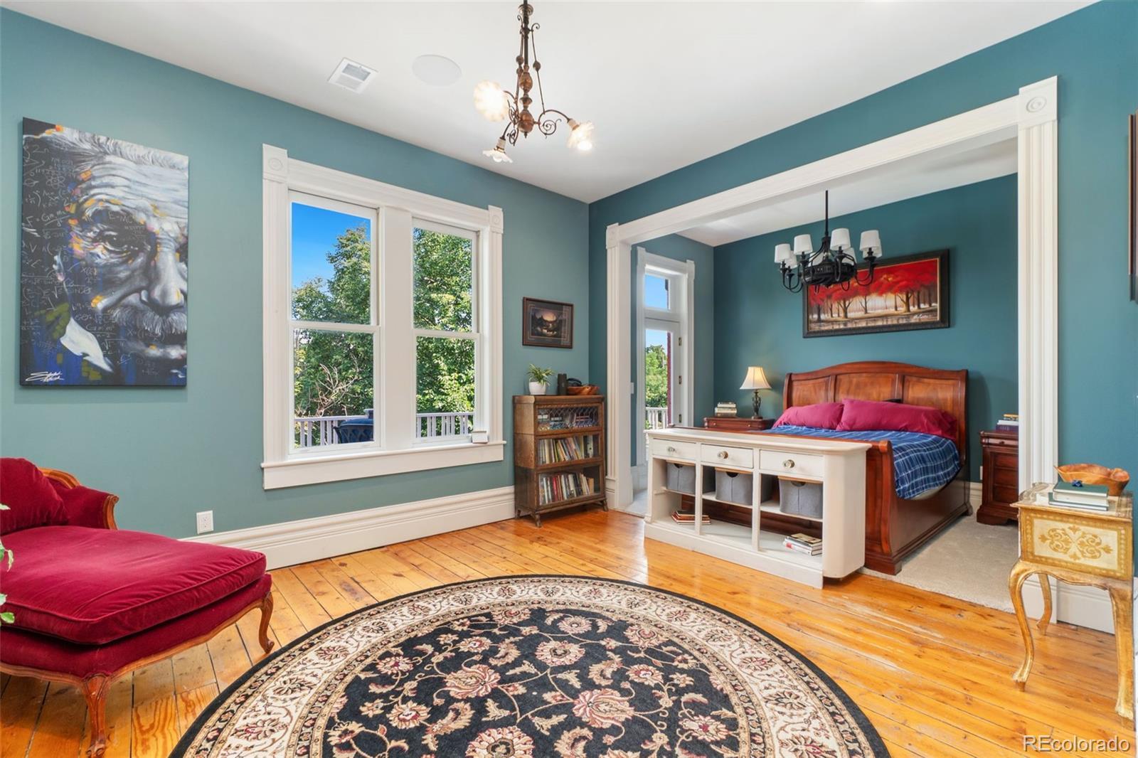 This one-of-a-kind home, situated on a quiet tree-lined street of stately Victorian homes in historic Curtis Park, lies just a few blocks from the center of RiNo. When you step into 2721 Curtis, you’ll be transported to a whimsical, Victorian era, ‘Alice in Wonderland’ atmosphere, where all its charm and character will be felt. From its original walnut staircase and wide plank pine floors to the cast-iron fireplaces, over 10-ft ceilings, and ornate woodwork, this home retains the beauty and integrity of its Victorian roots. Nearly every light fixture is a hand-selected 1800s antique, with its museum-quality railcar light fixtures as outstanding, rare pieces of history. A state-of-the-art whole house sound system, with 45 speakers throughout, offers sound control in every room. Gigabit internet. Its eight, 4k camera suite enables monitoring from a simple app. A new, state-of-the-art commercial heat pump HVAC system, with controls for each floor. Navien on-demand water heat system. With over 4300 finished sqft, the house has plenty of room to entertain, live and work. The large kitchen showcases a center island, marble countertops, farm style sinks, stainless appliances, and a huge custom pantry. The second floor features an additional library, three bedrooms and two baths. The primary suite on the second floor boasts a decorative fireplace, a relaxing balcony overlooking Curtiis Street, and a beautiiful ‘blue celeste’ Argentinian marble bath with a walk-in, rainfall shower and Rohl fixtures. The third floor features another primary suite with bath, custom top-of-the-line, mahogany Loewen windows and French doors opening to a balcony with stunning mountain and city skyline views. The basement features original stone walls, antique arched doors, reclaimed wood floors, and a granite bar top imported from Madagascar. Home theater with custom, app-controlled lighting and immersive 13-speaker surround sound movie theater with a 72-in TV and tech rack included in sale.