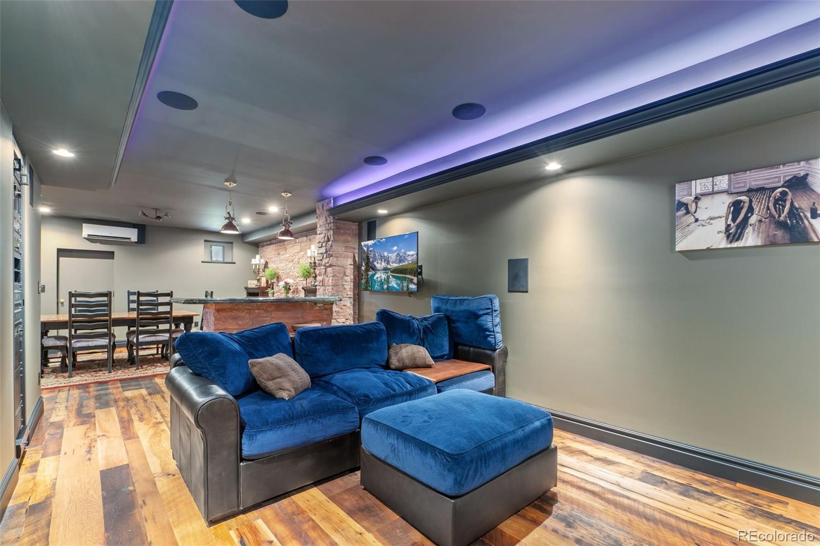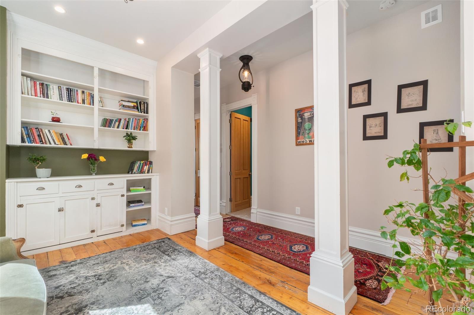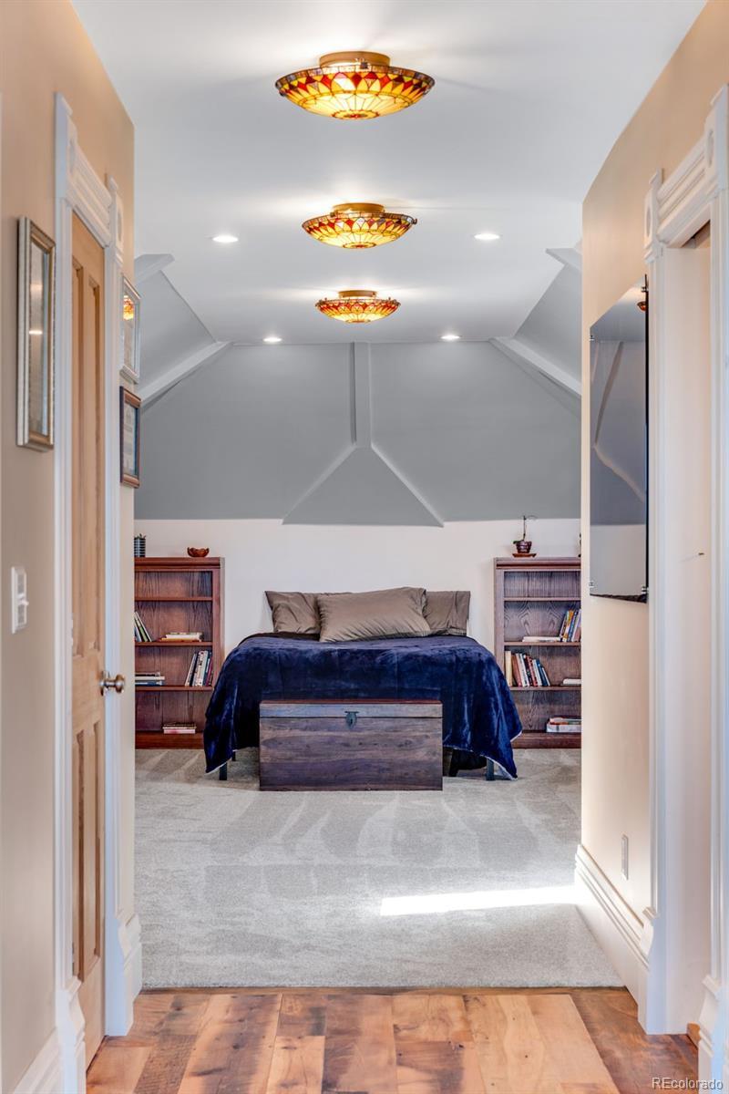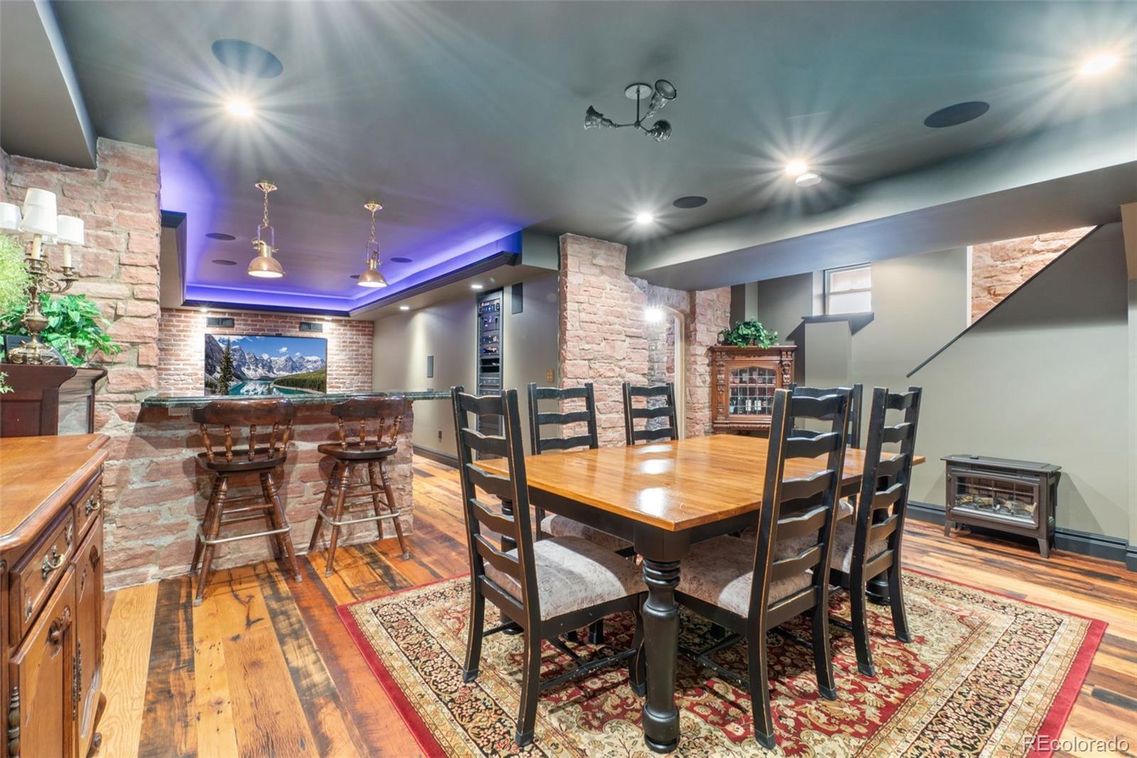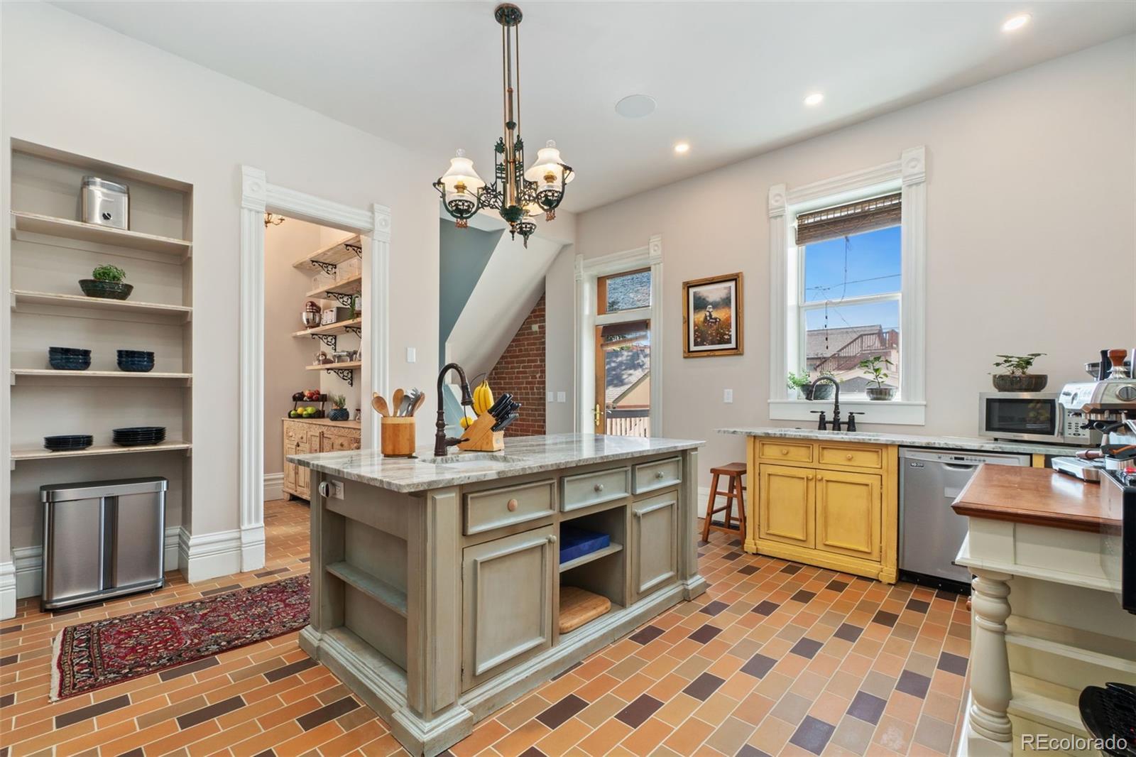 This one-of-a-kind home, situated on a quiet tree-lined street of stately Victorian homes in historic Curtis Park, lies just a few blocks from the center of RiNo. When you step into 2721 Curtis, you’ll be transported to a whimsical, Victorian era, ‘Alice in Wonderland’ atmosphere, where all its charm and character will be felt. From its original walnut staircase and wide plank pine floors to the cast-iron fireplaces, over 10-ft ceilings, and ornate woodwork, this home retains the beauty and integrity of its Victorian roots. Nearly every light fixture is a hand-selected 1800s antique, with its museum-quality railcar light fixtures as outstanding, rare pieces of history. A state-of-the-art whole house sound system, with 45 speakers throughout, offers sound control in every room. Gigabit internet. Its eight, 4k camera suite enables monitoring from a simple app. A new, state-of-the-art commercial heat pump HVAC system, with controls for each floor. Navien on-demand water heat system. With over 4300 finished sqft, the house has plenty of room to entertain, live and work. The large kitchen showcases a center island, marble countertops, farm style sinks, stainless appliances, and a huge custom pantry. The second floor features an additional library, three bedrooms and two baths. The primary suite on the second floor boasts a decorative fireplace, a relaxing balcony overlooking Curtiis Street, and a beautiiful ‘blue celeste’ Argentinian marble bath with a walk-in, rainfall shower and Rohl fixtures. The third floor features another primary suite with bath, custom top-of-the-line, mahogany Loewen windows and French doors opening to a balcony with stunning mountain and city skyline views. The basement features original stone walls, antique arched doors, reclaimed wood floors, and a granite bar top imported from Madagascar. Home theater with custom, app-controlled lighting and immersive 13-speaker surround sound movie theater with a 72-in TV and tech rack included in sale.