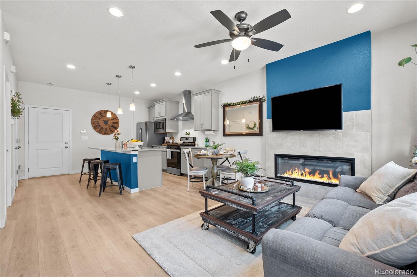 Audio/Video Controls, Ceiling Fan(s), Eat-in Kitchen, Kitchen Island, Open Floorplan, Quartz Counters, Smoke Free, Walk-In Closet(s)