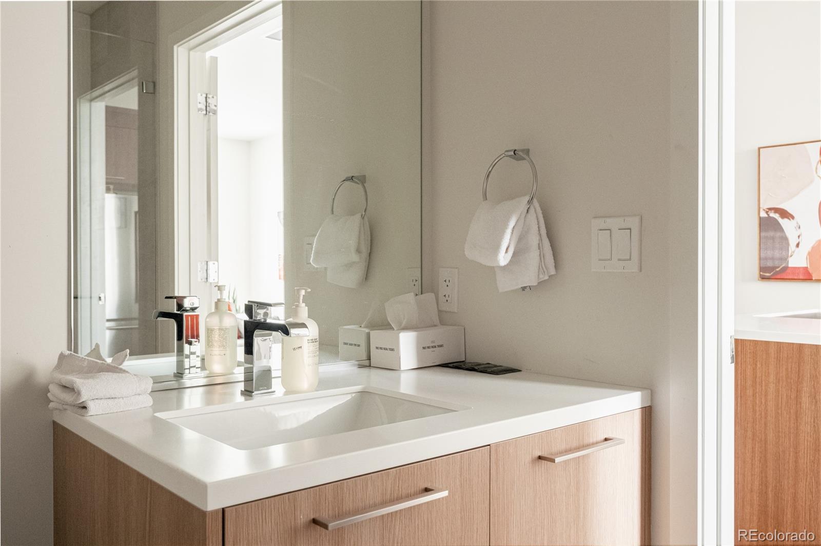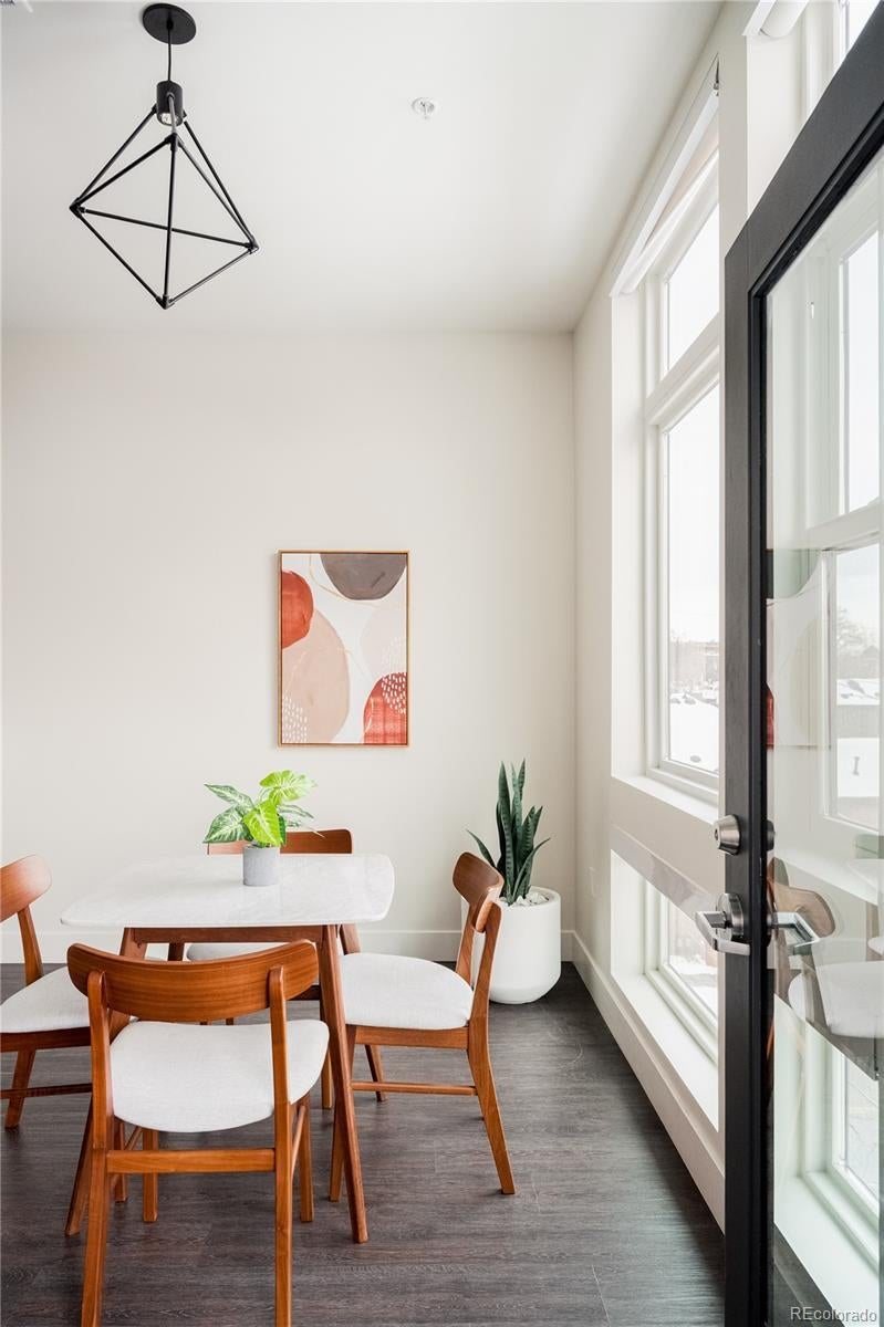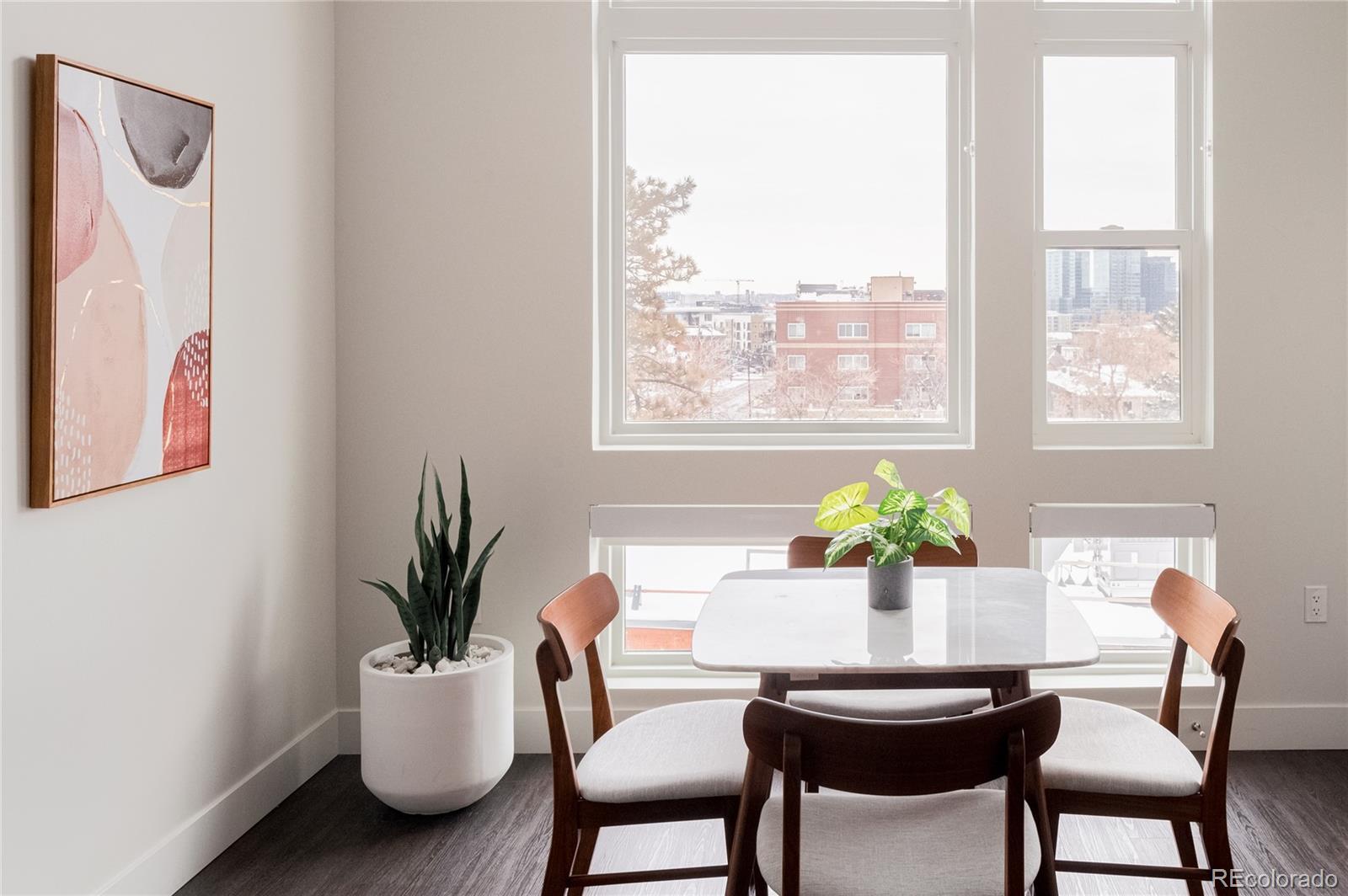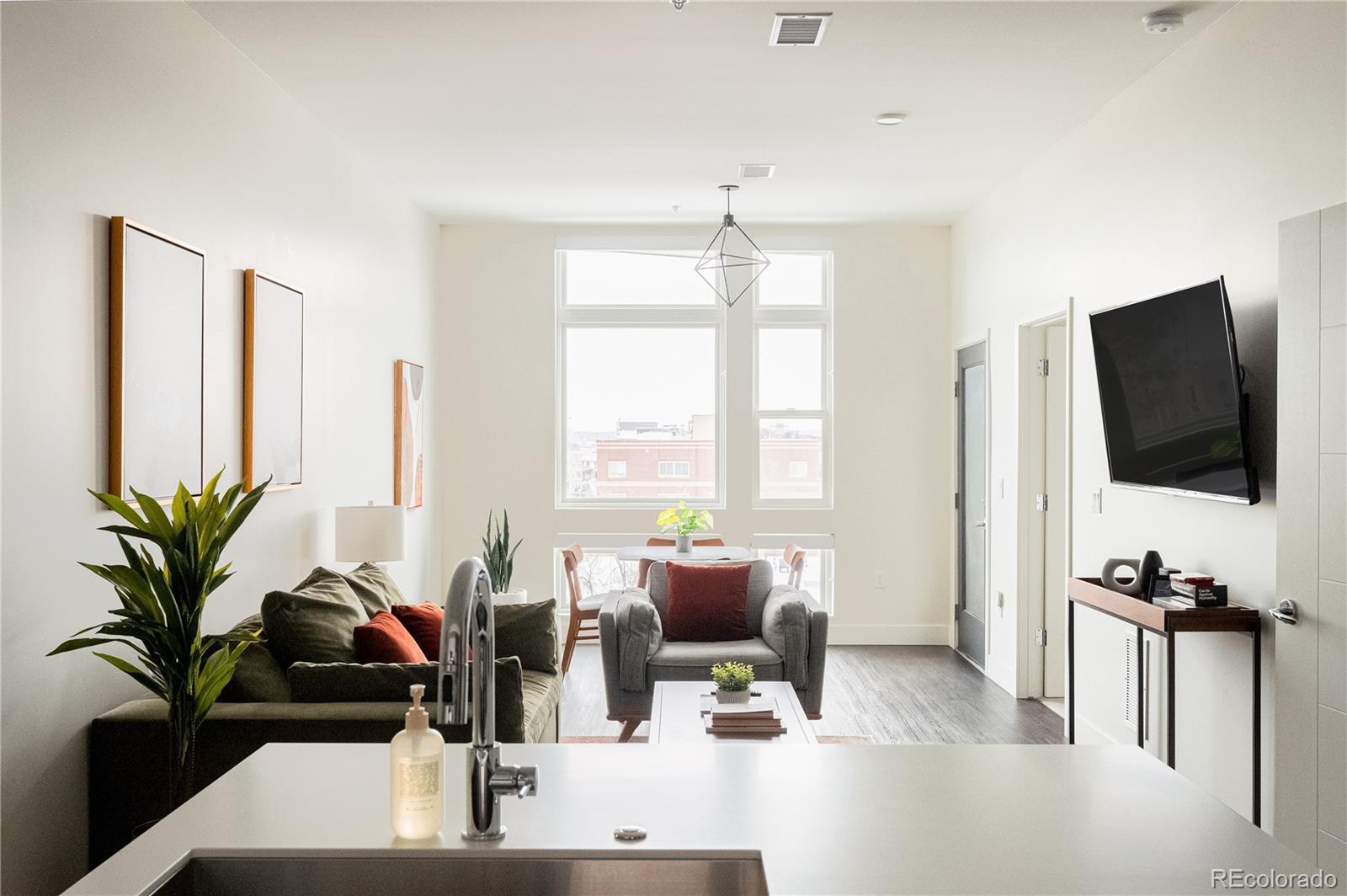 AIRBNB LICENSE INCLUDED – Take advantage of this short-term rental license without needing to make it your primary residence! This stylish, fully furnished LoHi home blends modern design with sustainable living. Step inside to an open floor plan filled with natural light, where a sleek kitchen with stainless steel appliances and a central island takes center stage. The spacious living area seamlessly transitions into a dining space framed by expansive windows, offering abundant sunlight. Open the glass doors to a private balcony with city views, perfect for unwinding. The generously sized bedroom offers a peaceful retreat, complete with a tranquil bathroom featuring a walk-in shower. A washer and dryer are also included for convenience. Premium finishes by Porcelanosa elevate the design throughout. Enjoy stunning views of the mountains and cityscape from the community rooftop, designed for relaxation. Part of a Denver Urban Green development, this mixed-use building is on track to earn a LEED Platinum designation, featuring sustainable materials, energy efficiency, and solar power. A parking spot is available for lease in a community garage.This can be either a Primary or Investment Property. Residents also have easy access to a main-level restaurant, Zuni Brewery, and popular LoHi eateries.