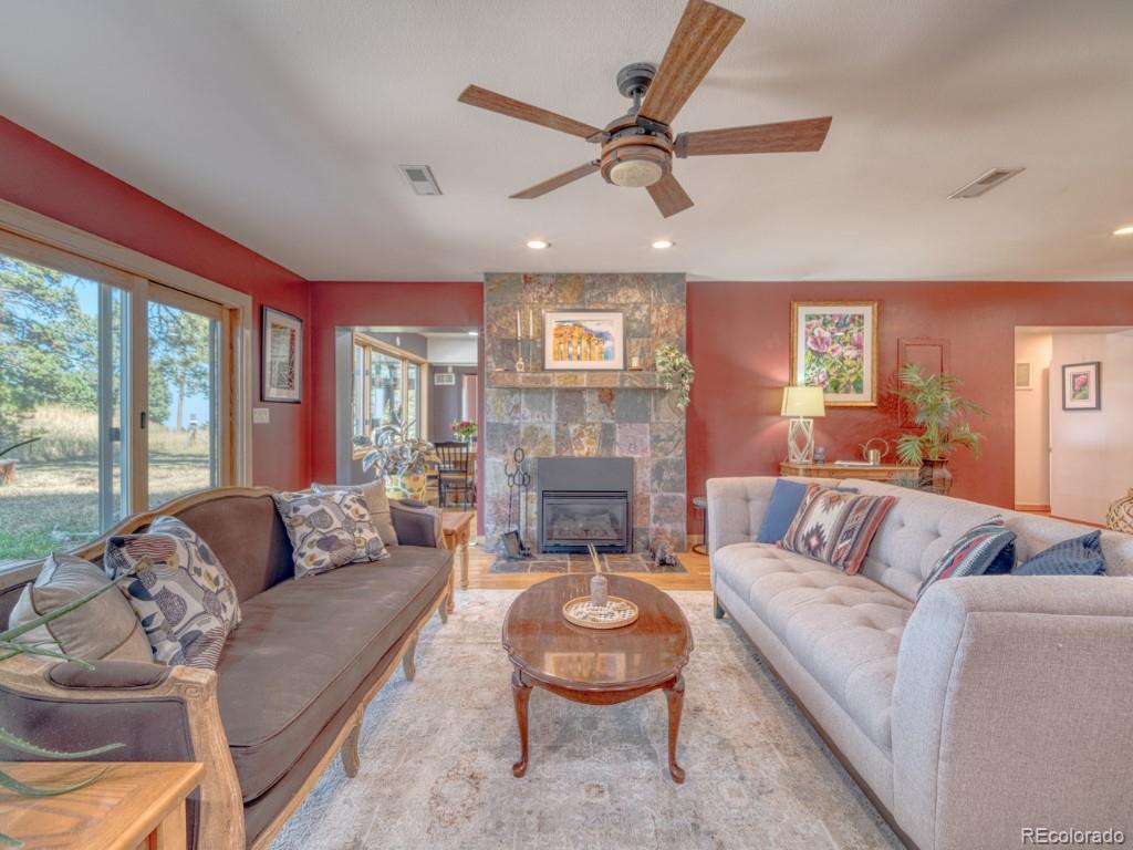Motivated Sellers. Be in by the holidays! This location can truly not be beat. Blending both urban access and the peace and quiet of mountain living, this one-of-a-kind Lookout Mountain home provides you with breathtaking mountain and city views from nearly every window! Reconstructed in 1940 around the original 1920's moss rock fireplace, this home features Craftsman styled wainscot and beadboard designs along with the natural beauty of real hardwood floors. While still maintaining its unique architectural flavor, a huge addition was constructed in 2003 accentuating design elements such as natural stone and exposed beams. Recently the sellers took it a step further by remodeling the kitchen and bathrooms and converting the home's four fireplaces to gas. Each room depicts its own unique narrative, while offering flexible spaces for people needing to work from home, wanting a private studio, workshop or a home-school setting. Spend hours relaxing and enjoying the picturesque views of the front range, the Federal Center and Downtown Denver, knowing that this unrivaled setting is protected, due to the only recorded view easement on the mountain! A heated 3-car garage with EV charger, plenty of cedar-lined storage, two storage sheds, a gracious covered front porch, two outdoor patios, including a gas BBQ, are added bonuses. Get lost in your private outdoor sanctuary featuring a spacious greenhouse, and a large raised-bed vegetable garden with an abundance of flowers and fruit trees. Situated on nearly 2 acres, this lot is one of the most level plats in the area, is zoned for horses and features a flat circular driveway for additional guest parking. Minutes from I-70, this ideal location balances an easy commute to ski resorts, Genesee or downtown Denver, while still being embraced by the tranquility found in nature surrounded by deer, elk, many hiking&bike trails and the serenity that defines Colorado mountain living. On city water. New septic in 2023. It's a lifestyle!